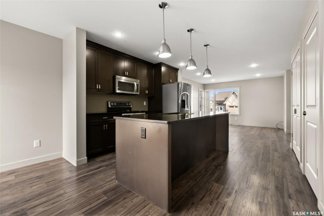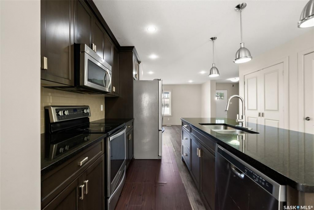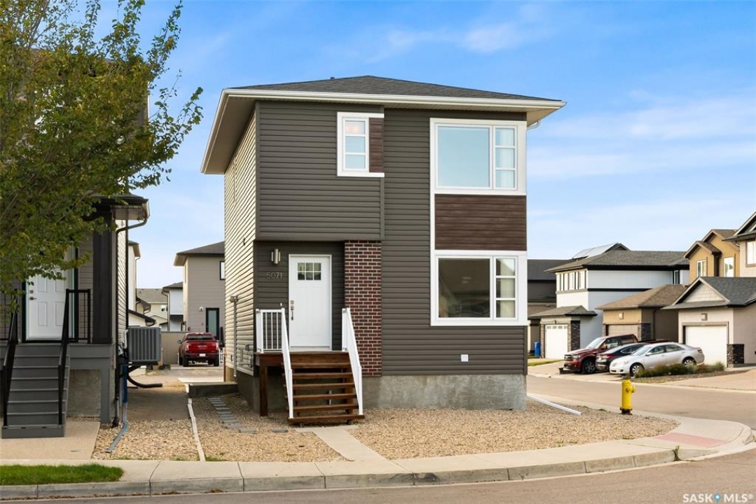 Welcome to 5071 Crane Crescent in Regina's highly desirable Harbour Landing community. Built in 2015, this detached two-storey home combines modern finishes, functional design, and an added investment opportunity with its fully developed regulation basement suite. Offering over 1,400 sq. ft. of thoughtfully planned living space above grade plus the lower level, this property is perfect for families or those looking to generate additional income. The main floor features a bright and inviting open-concept design. The spacious living room flows seamlessly into the dining area and kitchen, creating the ideal space for entertaining and everyday living. The kitchen boasts stylish cabinetry, ample counter space, stainless steel appliances, and a functional layout that makes meal preparation easy. A convenient two-piece powder room completes the main level. Upstairs you'll find three well-appointed bedrooms, each finished with durable vinyl plank flooring. The primary suite includes a private 3-piece ensuite, while two additional bedrooms share a modern 4-piece bathroom. A laundry area is also located on this level, adding everyday convenience for busy households. The fully finished basement is a standout feature, offering a non-regulation suite with a separate entrance. This space includes a full kitchen, comfortable living room, bedroom, 4-piece bathroom, and its own laundry facilities. Whether used for extended family, guests, or as a rental to offset your mortgage, this suite adds tremendous versatility and value. Located on a 3,086 sq. ft. lot, this home is close to parks, schools, shopping, and all Harbour Landing amenities. With 4 bedrooms, 4 bathrooms, and a regulation basement suite, this is a turn-key opportunity for homeowners or investors alike.