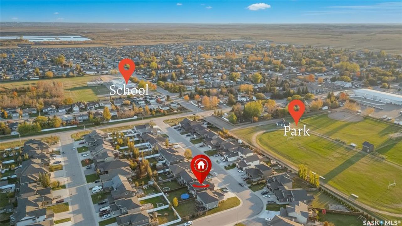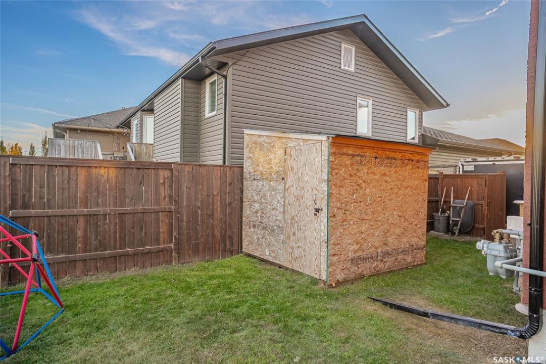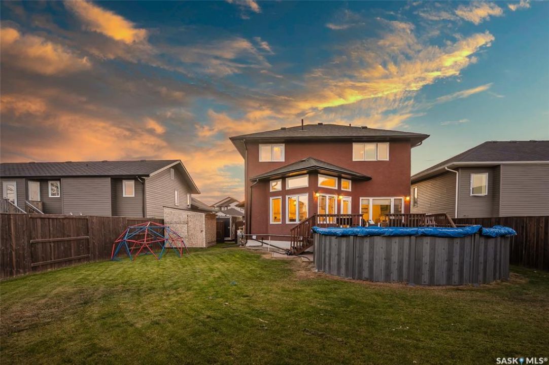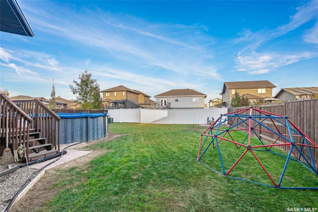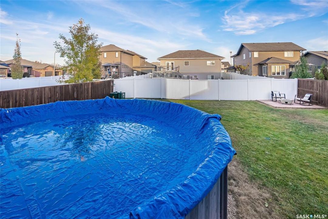 Imagine pulling into a quiet crescent in Martensville where kids ride bikes, neighbors wave, and everything you need like schools, parks, and walking paths, is just around the corner. This two story charmer is as move-in ready as it gets, blending modern updates with warm, family friendly spaces. Step inside and you'll find an open, sun-filled main floor with brand-new vinyl plank flooring and a cozy gas fireplace that practically begs you to curl up with a book. The kitchen is designed for both everyday meals and big family gatherings, with sparkling granite counters, plenty of storage, and shiny new stainless steel appliances. Right off the garage, a smartly placed boot room and laundry keep the chaos of daily life in check. Upstairs, three comfortable bedrooms and a stylish four-piece bath branch off a fabulous bonus room which is perfect for movie nights, playtime, or an office nook. The primary suite is a true retreat with its walk-in closet and spa like ensuite featuring a tiled shower and separate tub for those much-needed bubble baths. The lower level has been newly finished with a den, bedroom, and three piece bath, giving you room to grow, work from home, or host guests with ease. But the real magic is outside. A fully fenced backyard with a deck leading to your professionally installed heated pool- Just cue the summer memories here. The yard is landscaped, private, and ready for BBQs, laughter, and cannonballs. Other perks you'll love: central air conditioning, HRV system, fresh paint and some updated lighting, and an oversized double attached garage. The expansive Kinsmen Park, with its playgrounds, ball diamonds, sports fields, and trails, is right nearby, making it easy to enjoy the outdoors or catch community events. Families will appreciate being close to schools and the Martensville Athletic Pavilion, while shopping, dining, and everyday amenities are very close. All that's left is to move in, relax, and start making memories.
