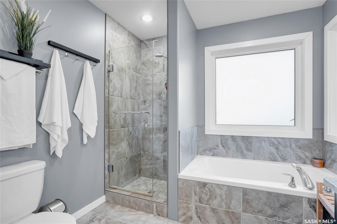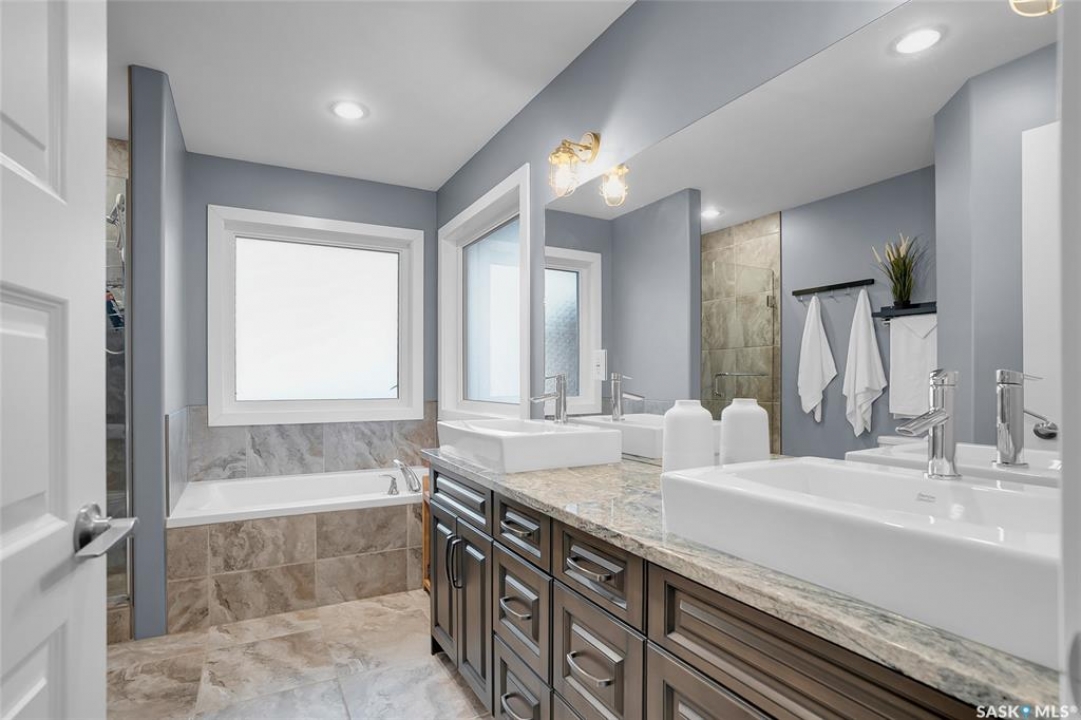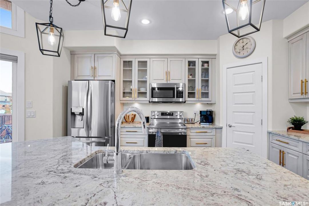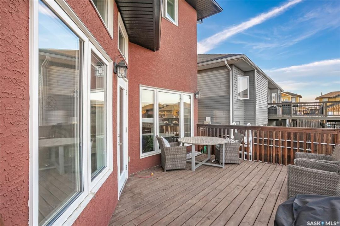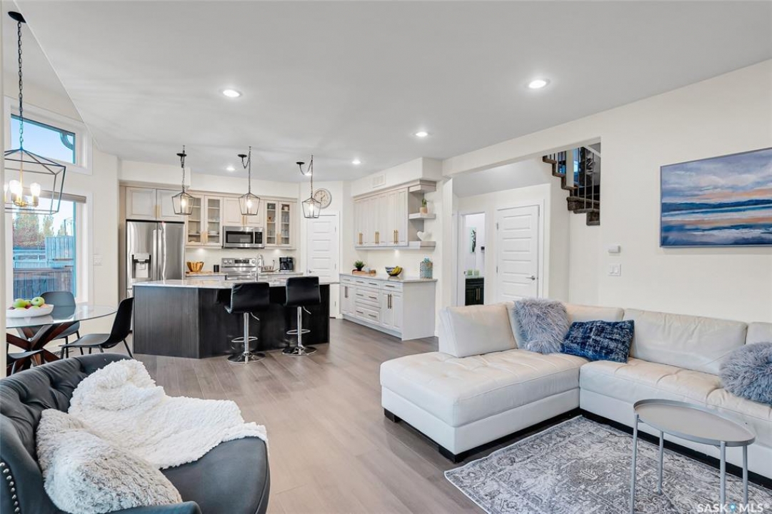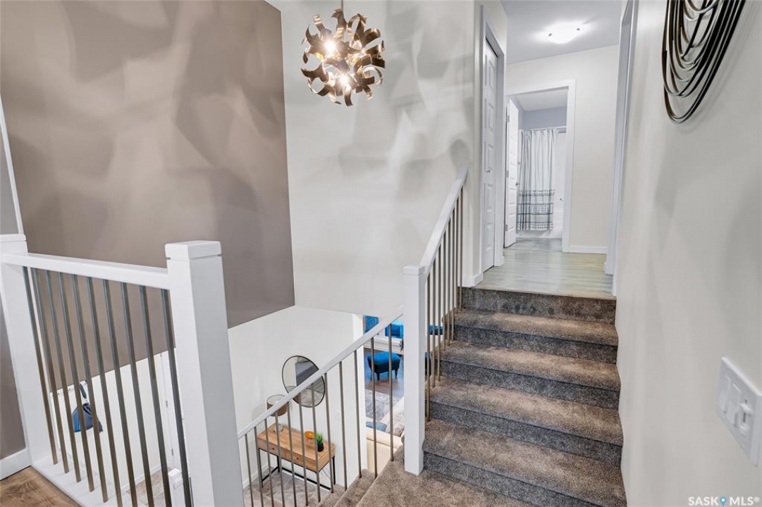 Imagine pulling into a quiet crescent in Martensville where kids ride bikes, neighbors wave, and everything you need like schools, parks, and walking paths, is just around the corner. This two story charmer is as move-in ready as it gets, blending modern updates with warm, family friendly spaces. Step inside and you'll find an open, sun-filled main floor with brand-new vinyl plank flooring and a cozy gas fireplace that practically begs you to curl up with a book. The kitchen is designed for both everyday meals and big family gatherings, with sparkling granite counters, plenty of storage, and shiny new stainless steel appliances. Right off the garage, a smartly placed boot room and laundry keep the chaos of daily life in check. Upstairs, three comfortable bedrooms and a stylish four-piece bath branch off a fabulous bonus room which is perfect for movie nights, playtime, or an office nook. The primary suite is a true retreat with its walk-in closet and spa like ensuite featuring a tiled shower and separate tub for those much-needed bubble baths. The lower level has been newly finished with a den, bedroom, and three piece bath, giving you room to grow, work from home, or host guests with ease. But the real magic is outside. A fully fenced backyard with a deck leading to your professionally installed heated pool- Just cue the summer memories here. The yard is landscaped, private, and ready for BBQs, laughter, and cannonballs. Other perks you'll love: central air conditioning, HRV system, fresh paint and some updated lighting, and an oversized double attached garage. The expansive Kinsmen Park, with its playgrounds, ball diamonds, sports fields, and trails, is right nearby, making it easy to enjoy the outdoors or catch community events. Families will appreciate being close to schools and the Martensville Athletic Pavilion, while shopping, dining, and everyday amenities are very close. All that's left is to move in, relax, and start making memories.