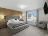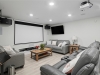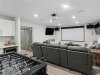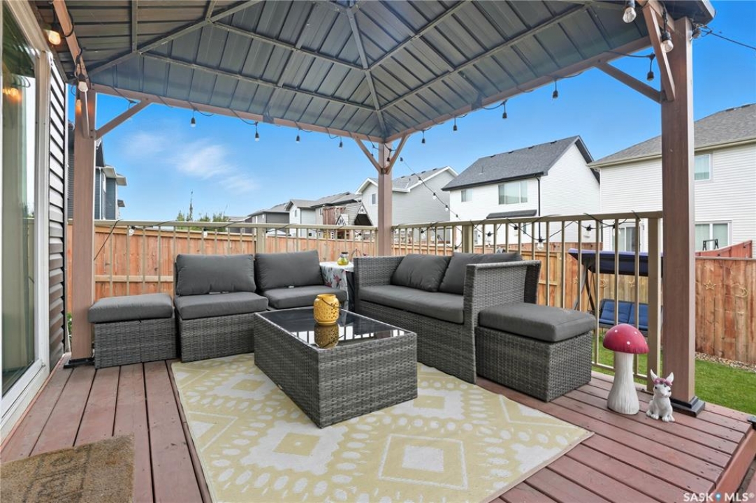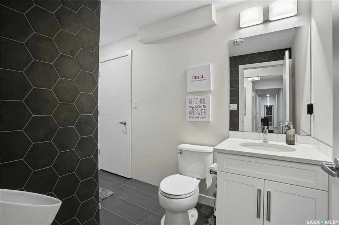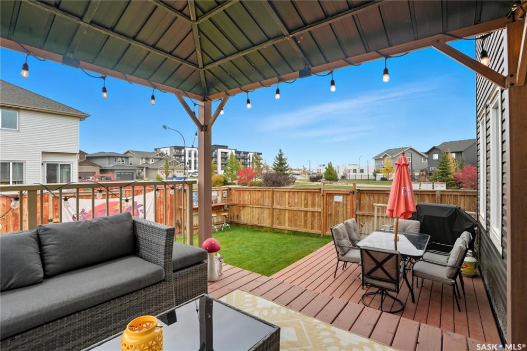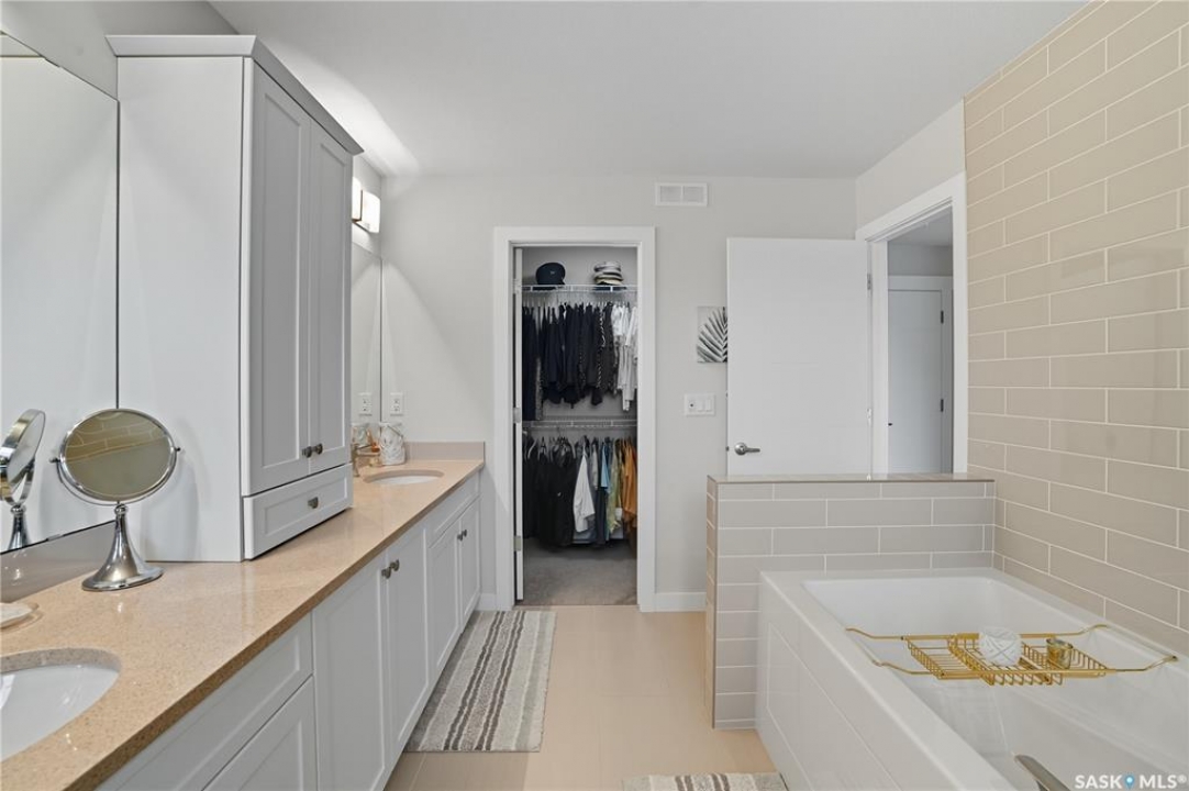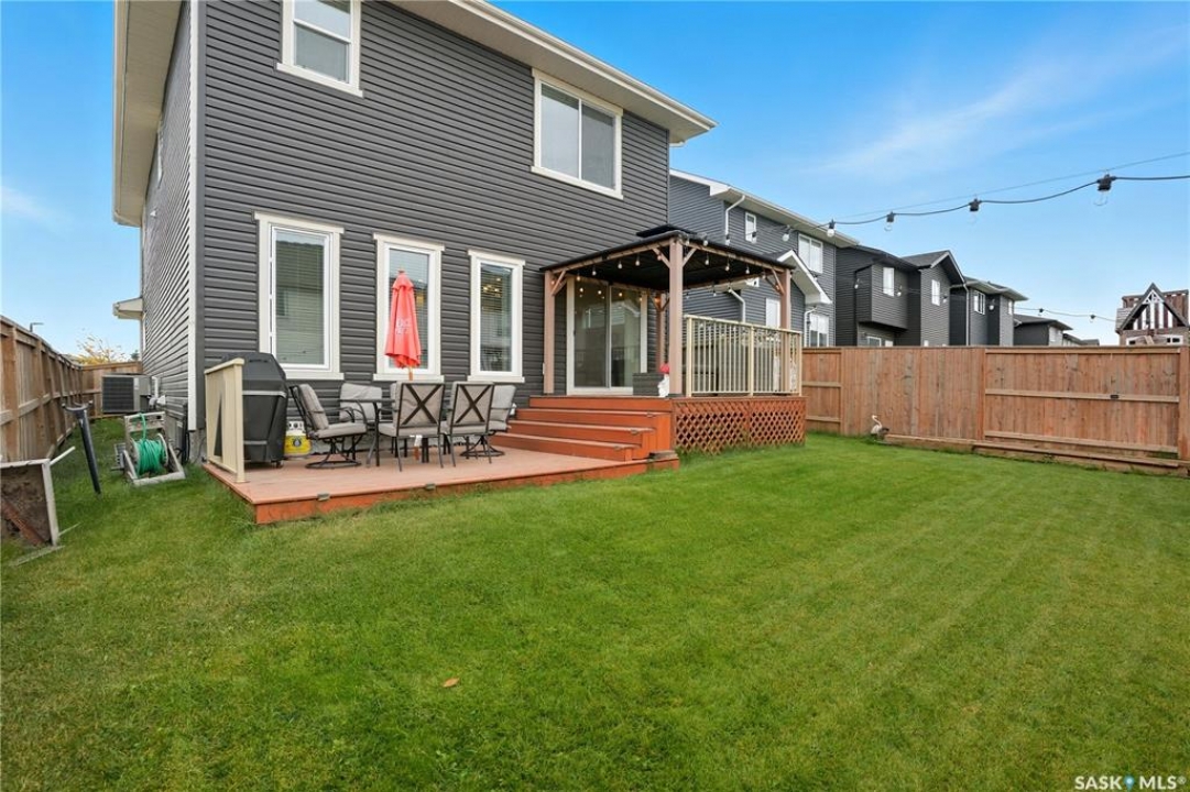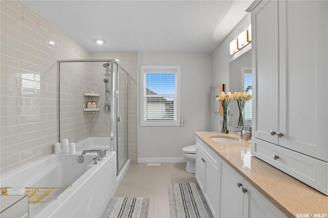 Welcome to 303 Dagnone Crescent—an exceptional former Daytona show home in the highly sought-after Brighton community. This stunning 2-storey residence offers 2,287 sq. ft. of thoughtfully designed living space on a desirable corner lot, facing a beautiful walking trail and steps from parks, the Brighton Child Care Centre, and the vibrant community shopping hub. Its modern exterior features vinyl siding with stone accents and a fully finished triple-staggered garage, complete with in-floor heat, built-in speakers, a home gym with mirror, and included TVs—perfect for both hobbyists and fitness enthusiasts. Inside, the 9-ft main floor impresses with a spacious foyer, open-concept living and dining areas, and a chef's kitchen boasting quartz countertops, soft-close cabinetry, stainless steel Samsung appliances, a walk-through pantry, and a wet bar with wine cooler. Upstairs, enjoy a bright bonus room with trail views, a luxurious primary suite featuring an electric fireplace, a spa-like 5-pc ensuite with double vanity, soaker tub, and tiled shower, plus two generous bedrooms and a convenient laundry room with cabinetry. The professionally finished basement continues the show-home standard with a versatile glass-walled office/bedroom and an entertainment-ready theatre room complete with three TVs, speakers, projector, and screen. A second wet bar, full bathroom, and ample utility upgrades ensure comfort and convenience year-round. With nearly every detail considered—from high-end finishes to abundant natural light and scenic surroundings—this home perfectly combines style, functionality, and location. All furniture is negotiable, and all wall decorative artworks are included. Most items are available for purchase. Don't miss the opportunity to own one of Brighton's finest properties, where every feature reflects quality craftsmanship and modern living at its best.