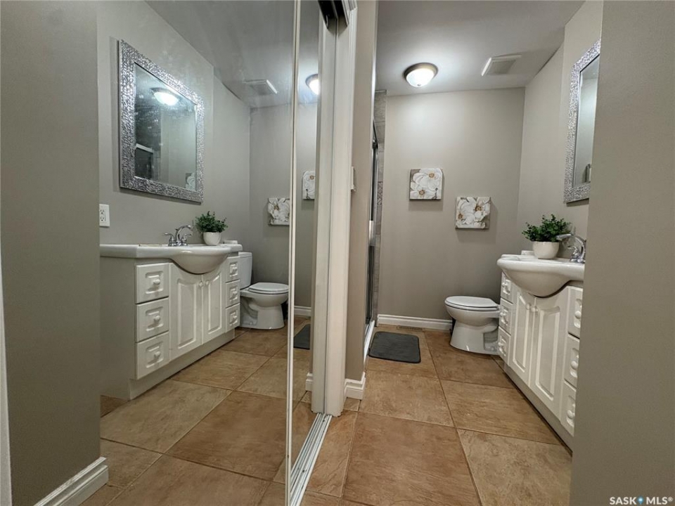 Beautifully Updated 5-Bedroom Family Home in Walsh Acres, Regina! Welcome to this stunning 2-storey split in the heart of Walsh Acres — offering a perfect blend of space, comfort, and style. This move-in-ready home features 5 bedrooms and 4 bathrooms, including a gorgeous primary suite with a tiled shower, fireplace, and private balcony. The main floor showcases hardwood flooring, a cozy wood-burning fireplace, and garden doors leading to a lovely brick patio and landscaped yard — perfect for family gatherings! You'll also find main floor laundry, a home office/den, and a convenient 2-piece bath. The basement offers a spacious recreation area, 2 additional bedrooms, and a 3-piece bath — ready for your finishing touch. Other great features include RV parking, double heated garage with direct entry, central A/C, and natural gas BBQ hookup. A perfect home for growing families — stylish, functional, and full of warmth