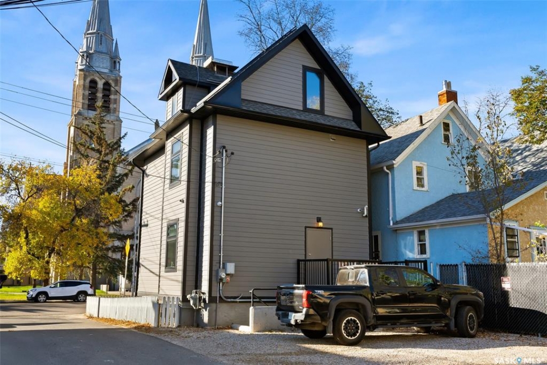 Exceptional opportunity to own a renovated mixed-use building in the heart of Regina's vibrant Cathedral neighbourhood. Originally constructed prior to modern codes and completely rebuilt in 2017, this property blends timeless character with modern efficiency. Every major system—including electrical, plumbing, HVAC, insulation, roofing, windows, and finishes—was replaced during the comprehensive renovation, leaving only the original structural frame. The main and second floors provide bright, open spaces ideally suited for professional offices, retail, or service-based businesses, while the lower level is a self-contained unit with its own rear entrance, new concrete floor, and pony wall, offering excellent flexibility for additional rental income or private workspace. The building is finished with durable Hardie Board siding and architectural shingles, and features solar panels on the roof to offset energy costs. A seven-camera security system provides full interior and exterior monitoring, and the air conditioning units and lines were recently serviced within the past three months. Parking is available at the rear with three designated stalls, though four vehicles can comfortably fit. All supporting documents including the surveyor's report, building plans, building code analysis, and water service letter are available. This turnkey property offers exceptional versatility and value in one of Regina's most desirable commercial corridors.