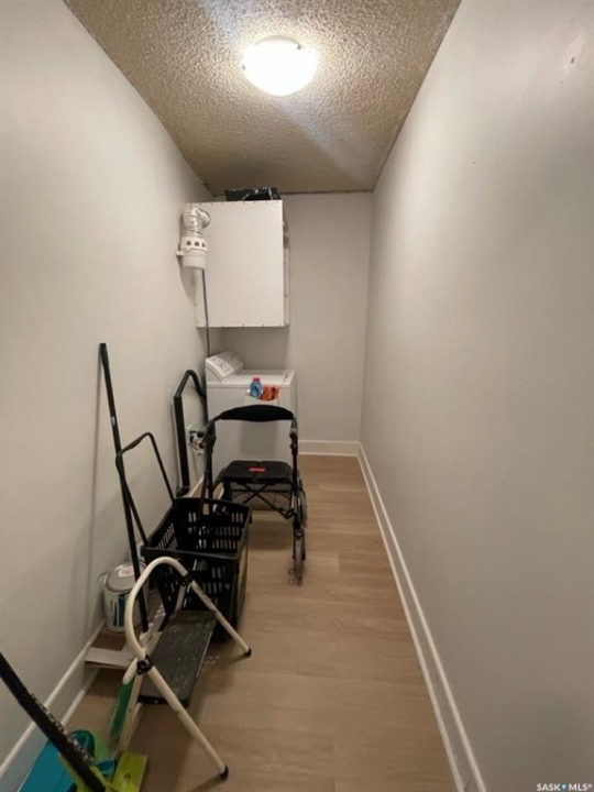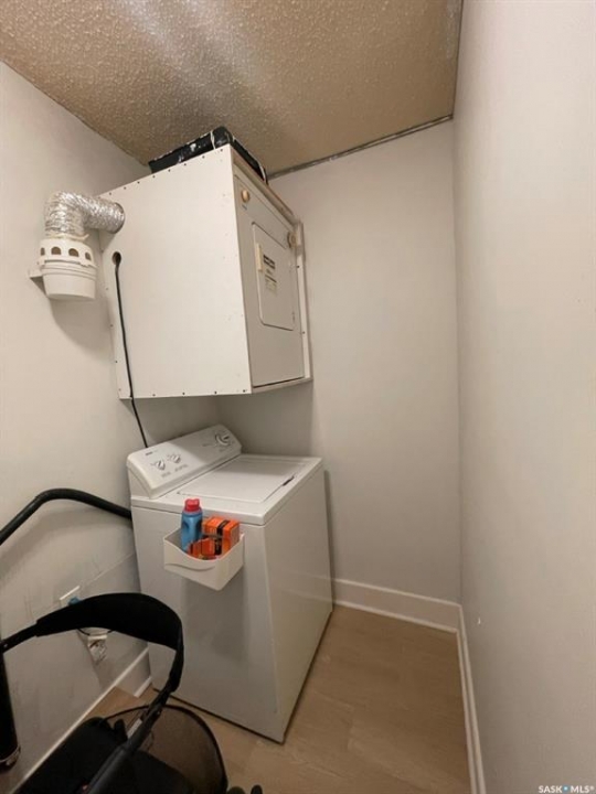 Stylish Condo in Massey Place – With In-Suite Laundry & Park Views! Welcome to this refreshed and stylish 2 bedroom, 1 bathroom condo in the heart of Massey Place. Offering 837 sq. ft. of bright and functional living space, this home is move-in ready and full of thoughtful updates. The open layout features a spacious living room that flows onto your private balcony, where you'll enjoy a peaceful view of Archibald McDonald Park; a perfect spot for morning coffee or evening relaxation. Unlike most units in the building, this condo boasts the rare convenience of in-suite laundry, making daily living that much easier. The modern kitchen has been tastefully refreshed, complementing the updated flooring and finishes throughout. With two generously sized bedrooms and a well-appointed bathroom, the space is ideal for first-time buyers, students, or anyone seeking low-maintenance living. Other highlights include: 1 surface parking stall included, Recently refreshed interior with stylish touches, Steps from Vincent Massey School and close to Bishop Klein School, Easy access to shopping, transit, and all the amenities of Saskatoon's west side. This is an excellent opportunity to own a move-in ready condo in a well-established neighborhood, with the bonus of in-suite laundry and park views.