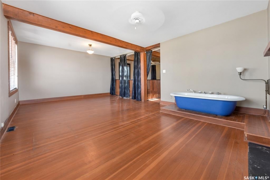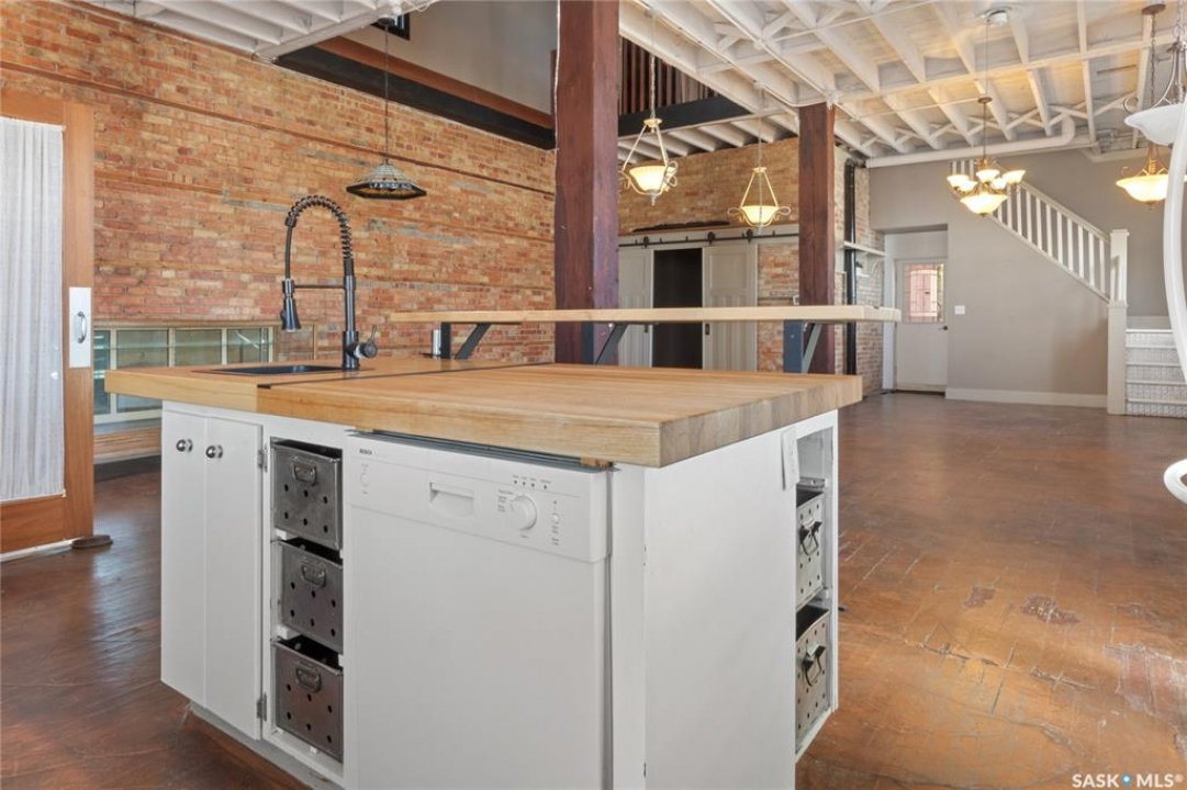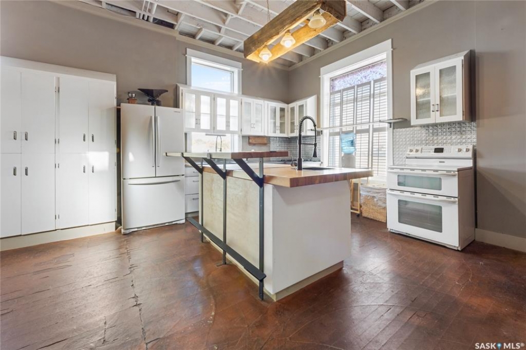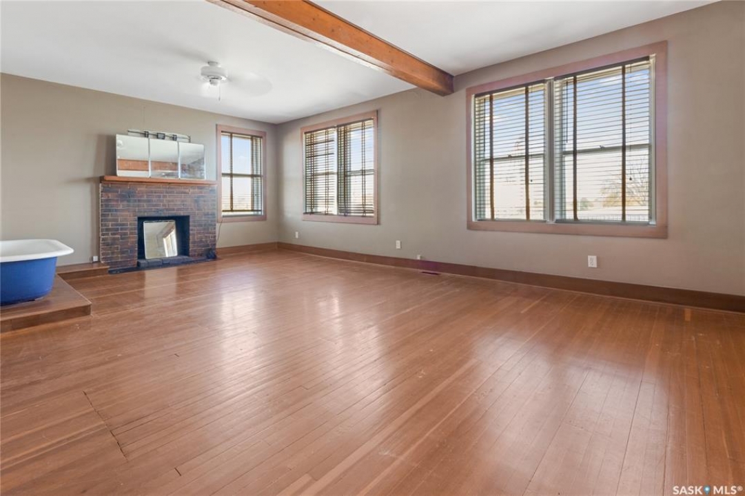 Fore! You'll score big with this one. Welcome to 1002 9th Street in Perdue—a former bank turned one-of-a-kind home, just a short stroll from one of the best small-town golf courses around. Once the Union Bank of Canada, this place used to hold stacks of cash… now it's holding stacks of character. Inside, you'll find an open-concept main floor with exposed brick, wood pillars, and a bright kitchen with a central island—perfect for tallying up birdies or post-round snacks. Gorgeous windows flood the home with light, while the double glass doors in the foyer and antique details throughout add a touch of old-world charm. Upstairs, the massive primary bedroom features a fireplace, plenty of windows, and an open second-floor area that looks down onto the main—ideal for practicing your victory speech after a great round. Original vault doors nod to the home's banking past, and the west-facing backyard is the perfect spot to unwind with a sunset and a cold drink after 18 holes. And while there's no Ezee-Wrap 1000 dispenser (yet), there's more than enough room to add one—because who doesn't want a house that's a hole-in-one for history, character, and comfort?