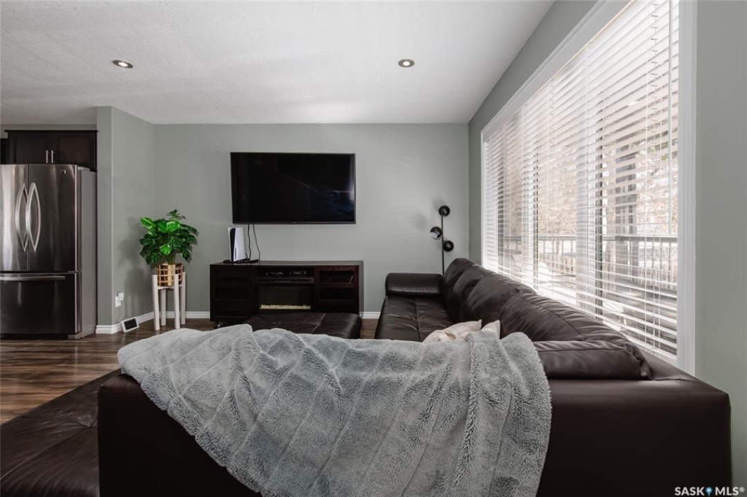 This isn't just a house, it's the total package: Open-concept main floor, stunning kitchen with granite countertops, and dark cabinets, with an oversized island, and stainless steel appliances. Bright living room up front, dining area at the back, plus a convenient 2-piece bathroom on the main level, perfect for family dinners or hanging out with friends. Upstairs: three bedrooms and a full bath, including a spacious primary with walk-in closet. Downstairs: cozy family/theatre room, guest bedroom, and another full bathroom. Plus a cozy spot for family movie nights. Outside, enjoy a fully fenced yard, extra parking, and even a spot to pull in a camper. Location is prime. Just steps from Cornerstone Christian School, minutes from downtown, and quick highway access makes commuting or trips to 5 Wing Moose Jaw a breeze. Over 2,000 sq. ft. of finished space, thoughtfully laid out, move-in ready, and ready to make your own. Don't just buy a house--buy a lifestyle!