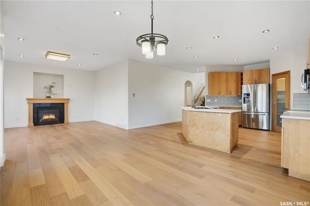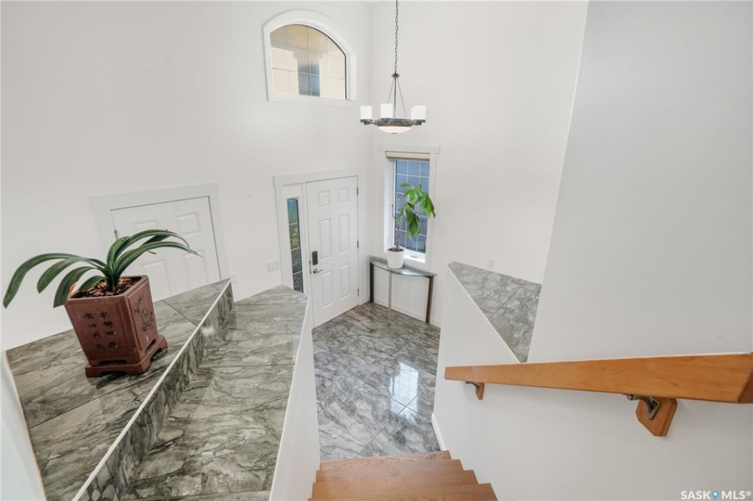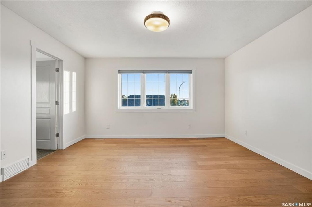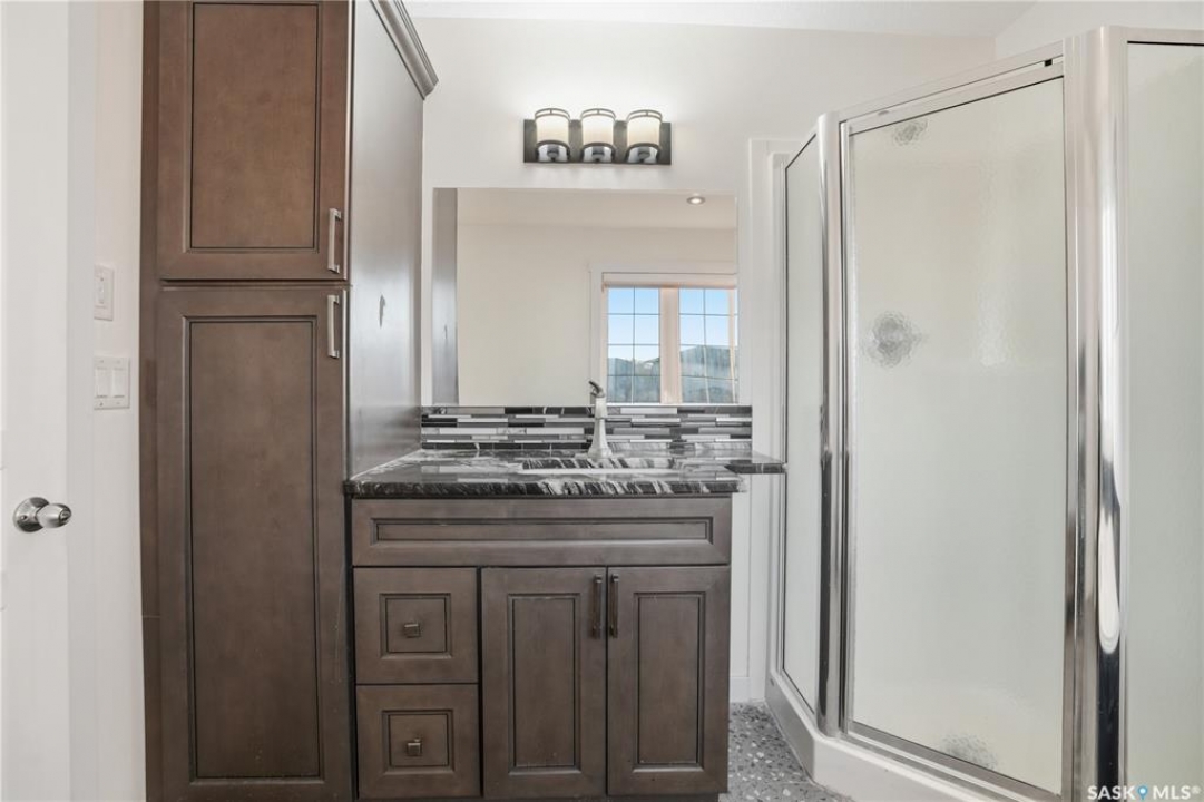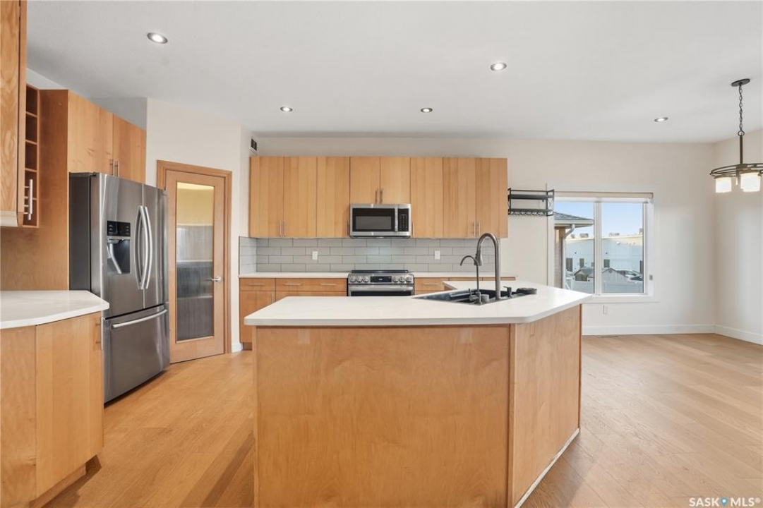 Welcome to this beautiful family home in Gardiner Park. Close to shopping, elementary school and all the east end amenities. As you enter into the large high ceiling foyer, you will immediately see the new engineering hardwoods, which are located throughout the main floor and second floor of the house. This house has an open concept layout and is filled with tons of natural light which pours through the abundance of windows. The kitchen comes complete with an eat-in nook and has extended maple cabinets with new quartz counter tops, stainless steel appliances. The kitchen opens up to the living room with a wall niche above the gas fireplace. A nice sized bedroom, a 4 piece bathroom and a big laundry room finished the main floor. The second level features a spacious master bedroom, with a large walk-in closet and ensuite that features a corner jetted tub surrounding in marble. The lower level is totally finished and includes a huge rec room , the 3rd bedroom, a big den which can be used us the 4th bedroom if needed, and a convenient 3 pc bathroom. The 4 feet windows give the lower level that nice open feeling. The utility room has tons of room for storage or a hobby room. Double 24' x 22' attached garage is insulated & boarded. Nice sized deck overlooks the backyard with lawn and garden area, low maintenance front yard. Upgrade recent years includes but not limited to: new shingles in 2025, new engineering hardwood flooring on main floor, second floor and stairs to the basement in 2025, new quartz kitchen counter tops in 2025, new vinyl plank flooring in the basement in 2025, new microwave hood fan and kitchen sink in 2025, etc.