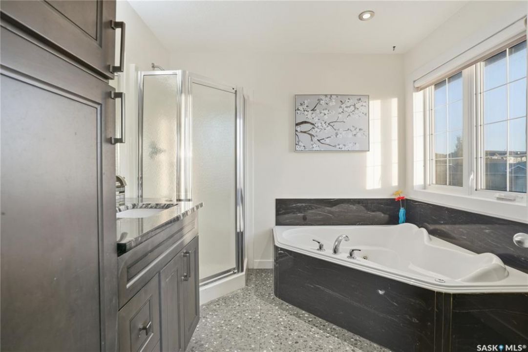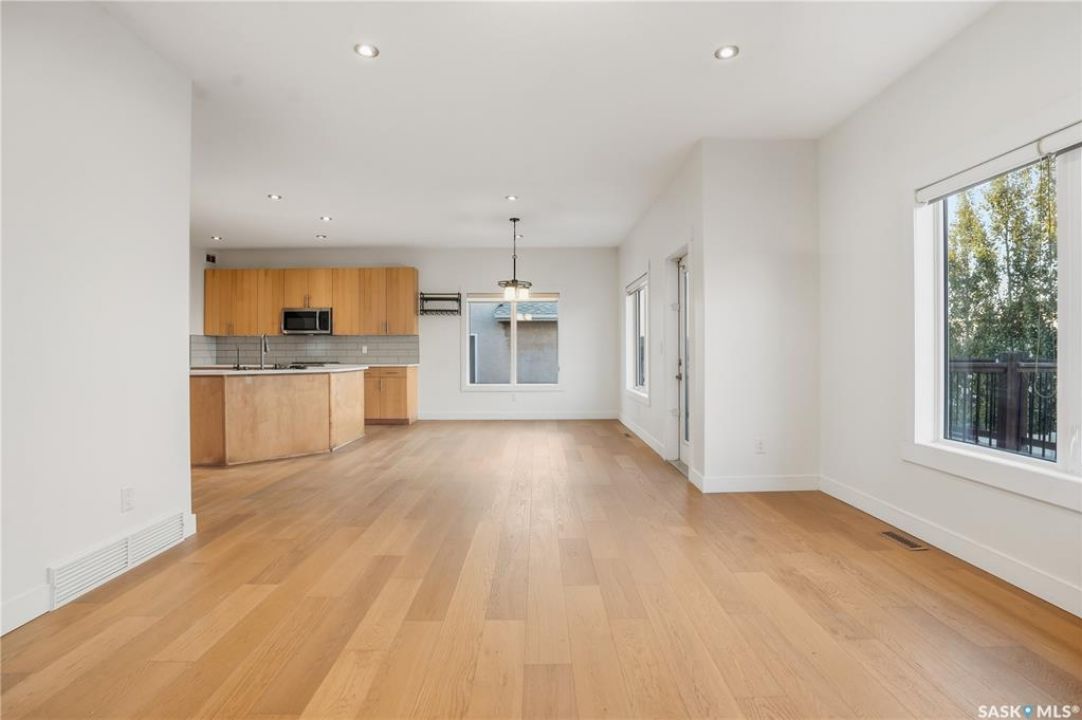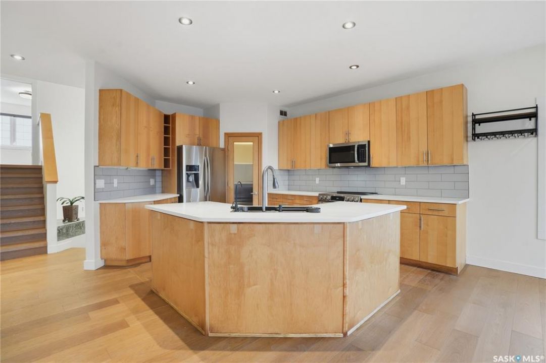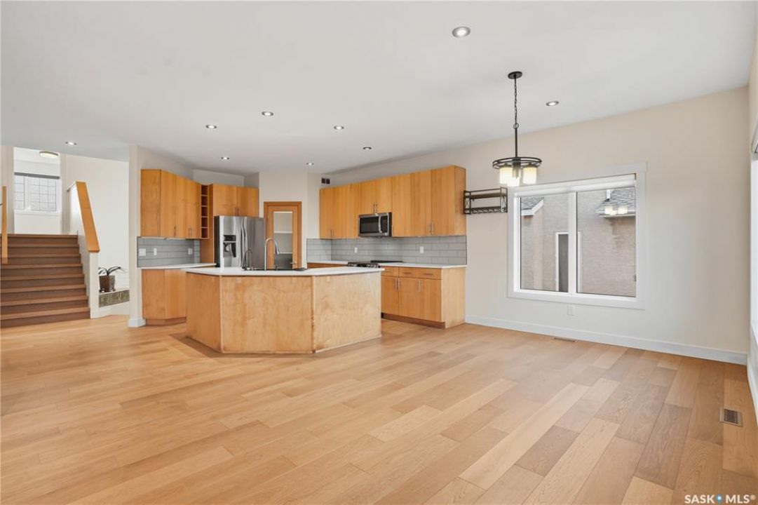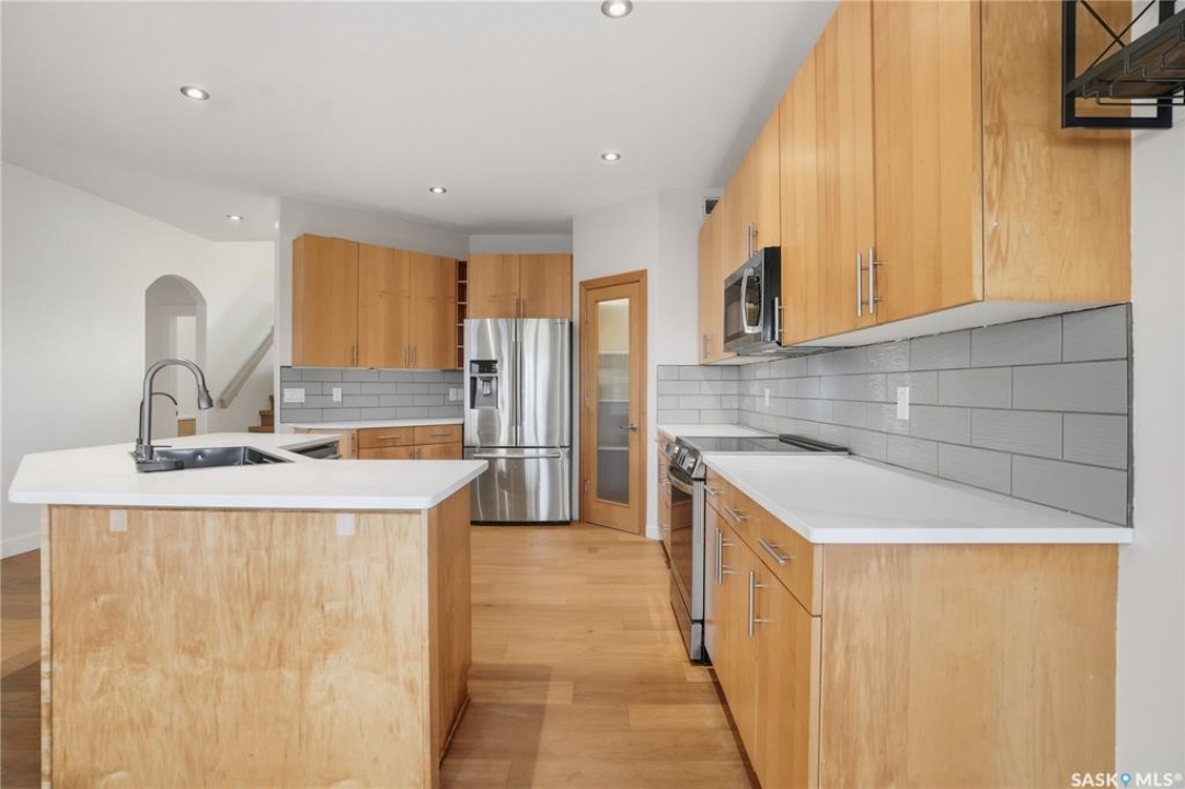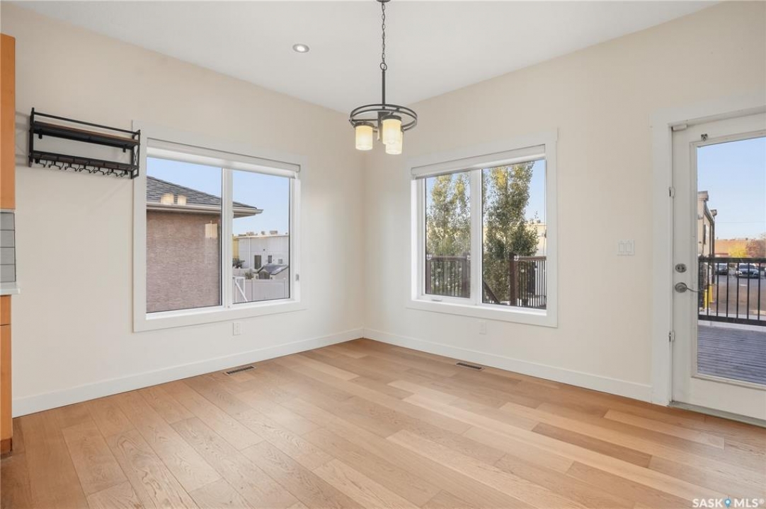 Welcome to this beautiful family home in Gardiner Park. Close to shopping, elementary school and all the east end amenities. As you enter into the large high ceiling foyer, you will immediately see the new engineering hardwoods, which are located throughout the main floor and second floor of the house. This house has an open concept layout and is filled with tons of natural light which pours through the abundance of windows. The kitchen comes complete with an eat-in nook and has extended maple cabinets with new quartz counter tops, stainless steel appliances. The kitchen opens up to the living room with a wall niche above the gas fireplace. A nice sized bedroom, a 4 piece bathroom and a big laundry room finished the main floor. The second level features a spacious master bedroom, with a large walk-in closet and ensuite that features a corner jetted tub surrounding in marble. The lower level is totally finished and includes a huge rec room , the 3rd bedroom, a big den which can be used us the 4th bedroom if needed, and a convenient 3 pc bathroom. The 4 feet windows give the lower level that nice open feeling. The utility room has tons of room for storage or a hobby room. Double 24' x 22' attached garage is insulated & boarded. Nice sized deck overlooks the backyard with lawn and garden area, low maintenance front yard. Upgrade recent years includes but not limited to: new shingles in 2025, new engineering hardwood flooring on main floor, second floor and stairs to the basement in 2025, new quartz kitchen counter tops in 2025, new vinyl plank flooring in the basement in 2025, new microwave hood fan and kitchen sink in 2025, etc.