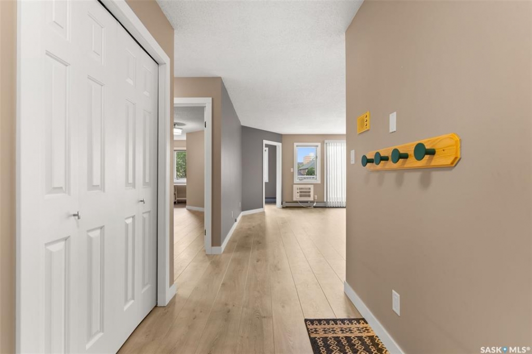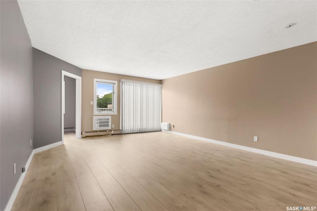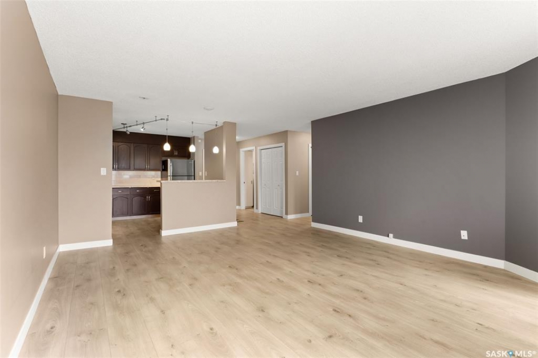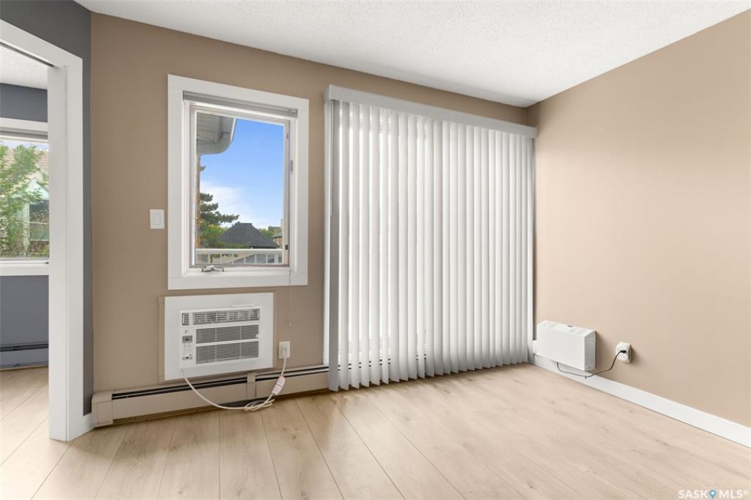 Welcome to this beautifully maintained, top-floor condo offering 893 sq ft of stylish, open-concept living in a prime downtown location. Perfectly positioned within walking distance to shops, pubs, parks, and essential amenities, this home combines convenience with contemporary comfort. Step inside to find a renovated interior featuring painted kitchen cabinets, updated countertops and backsplash, and modern laminate flooring that flows seamlessly throughout. The open-concept layout is bright and airy, enhanced by stainless steel appliances, in-suite laundry, and plenty of natural light. This unit features a spacious primary bedroom with a cozy nook — ideal for a reading area or home office — and a versatile den with a window, perfectly suited as a guest room or second bedroom (note: no closet). Enjoy morning coffee or evening wine on your private balcony, and take advantage of the heated underground parking, dedicated storage unit, and secure building amenities. Whether you're a first-time buyer, downsizer, or investor, this condo delivers unbeatable value, style, and location. Don't miss your chance to own a top-floor unit in the heart of it all!