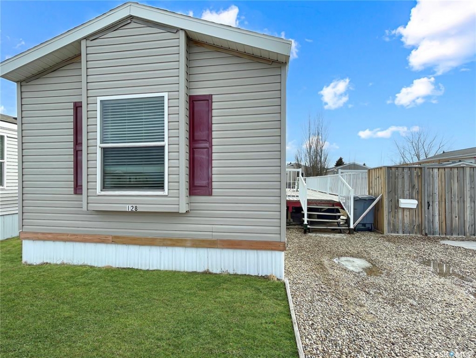 Introducing 128 Prairie Sun Court, a home that offers exceptional value without compromising on updates or quality. Prepare to be impressed by the thoughtful design and modern features of this stunning property. Step inside and be greeted by an open concept floor plan, flooded with natural light from the abundance of windows. The vaulted ceilings create a sense of spaciousness, while the large kitchen is a chef's dream. You'll find plenty of tasteful cabinetry, including a pantry with full outs, double sinks, an island, and a cozy eat-in kitchen space. On one end of the home, you'll discover the oversized master bedroom, complete with a generous 5'2x6'2 walk-in closet. Adjacent to the bedroom is a convenient laundry area and a built-in office space, ensuring functionality and convenience. The master wing is completed by a sizeable ensuite bath, featuring a jacuzzi tub, shower, and ample storage. The other side of the home houses two additional bedrooms and a well-appointed 4-piece guest washroom, providing comfortable living spaces for family and guests. This 1200 square foot home has been tastefully updated with new flooring throughout, adding a touch of modern elegance. The PVC windows not only enhance the aesthetic appeal but also contribute to energy efficiency. Step outside and enjoy the spacious deck, perfect for entertaining or simply relaxing. With no maintenance handrails and a fully fenced yard, you can enjoy outdoor living without the hassle. Additionally, the park fees include water, and the property taxes are incredibly affordable at just $35 per month. Don't miss the opportunity to own a modern home without the modern price. Experience the exceptional value and quality offered at 128 Prairie Sun Court.
