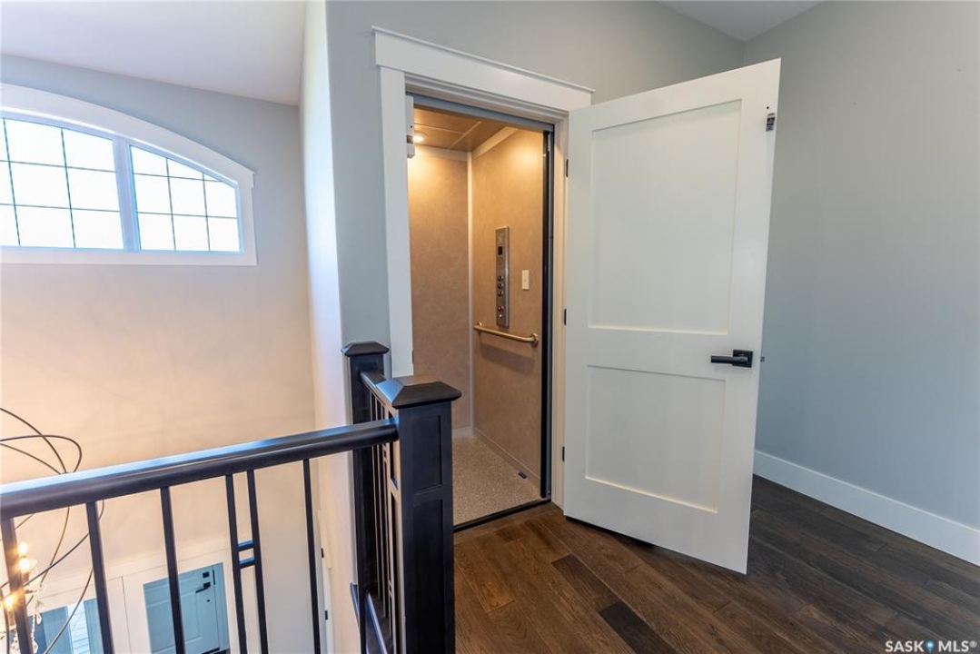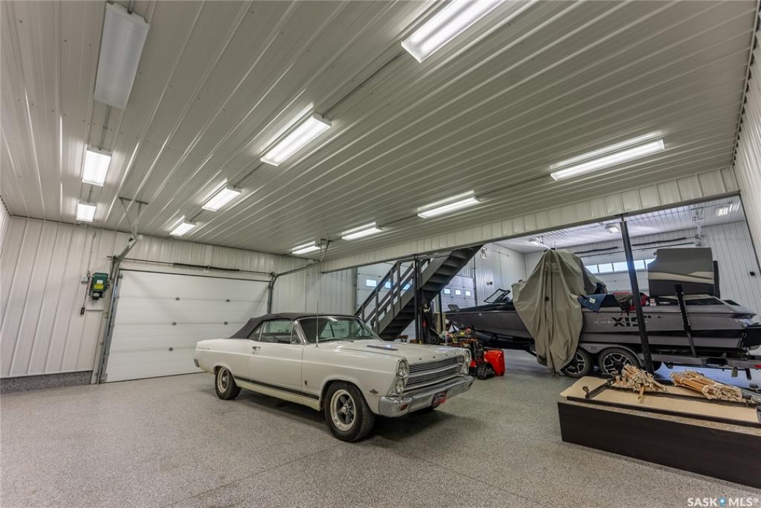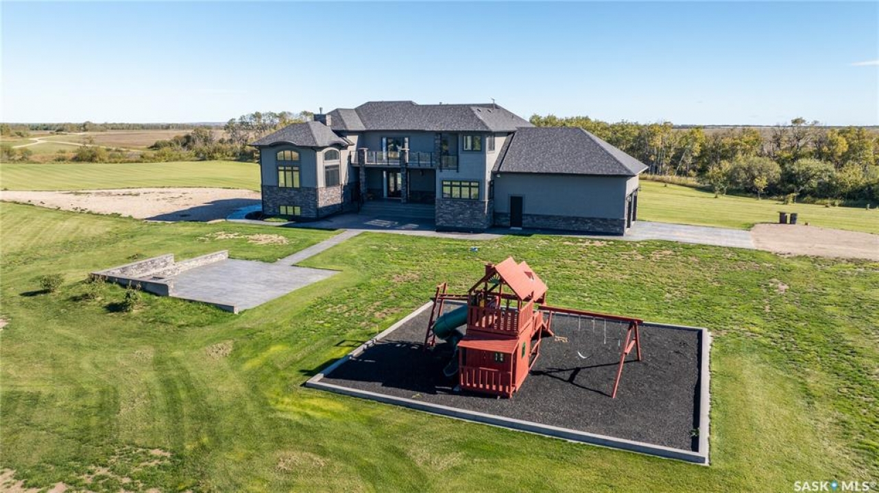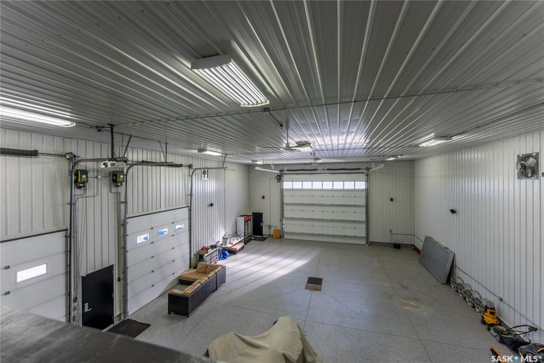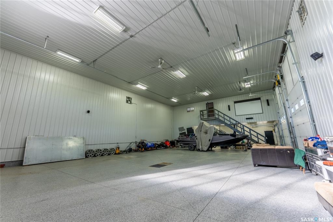 Welcome to the absolutely stunning property located 40 minutes east of North Battleford, between Speers and Hafford on Highway 40. This parcel sits on 18.71 acres with a two-story house, over 4,000 sq. ft., and a detached shop, over 3,800 sq. ft., with living quarters above. This custom-built home has spared no expense, featuring Gemstone lighting, an elevator reaching all three floors, and a luxurious primary ensuite that will surely impress. The main floor consists of a 21-foot-high foyer, an 11-ft-high office, two fireplaces, a spacious living room with speakers throughout, a kitchen with a Sub-Zero fridge, a six-burner Wolf stove, a Jenn-Air microwave, and a laundry room with a beautiful view. The main floor also has access to the garage, back deck, which include natural gas BBQ hookups. Upstairs, you will notice the grand entrance with an amazing chandelier, two bedrooms with a Jack-and-Jill bathroom, two separate entrances to the second-floor deck, and an exquisite primary bedroom. This primary bedroom has a fireplace, two walk-in closets with a convenient washer and dryer, his-and-her sinks, an additional private deck, and a shower/jetted bathtub straight out of a magazine. The basement is perfect for a children's play space as it has a massive playroom and an unfinished section for games and storage. This home features, a water softener, reverse osmosis system, two furnaces, two AC units, on-demand hot water, and a separate entrance to the garage. The house also has an attached double garage with 13-ft-high ceilings (31 x 26). Outside is the massive 88 x 44 detached shop with an 18-ft-high door, perfect for RV storage, and additional doors at 12 ft high. The main ceiling height is 21 ft, and the living quarters are 24 x 43. This shop includes a projector, a washroom, laundry facilities, a furnace system, in-floor heating, on-demand hot water, an alarm system. Call today to book your next luxury country living tour!