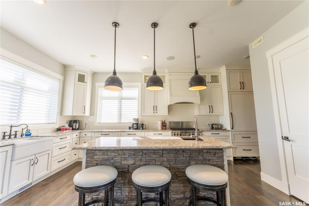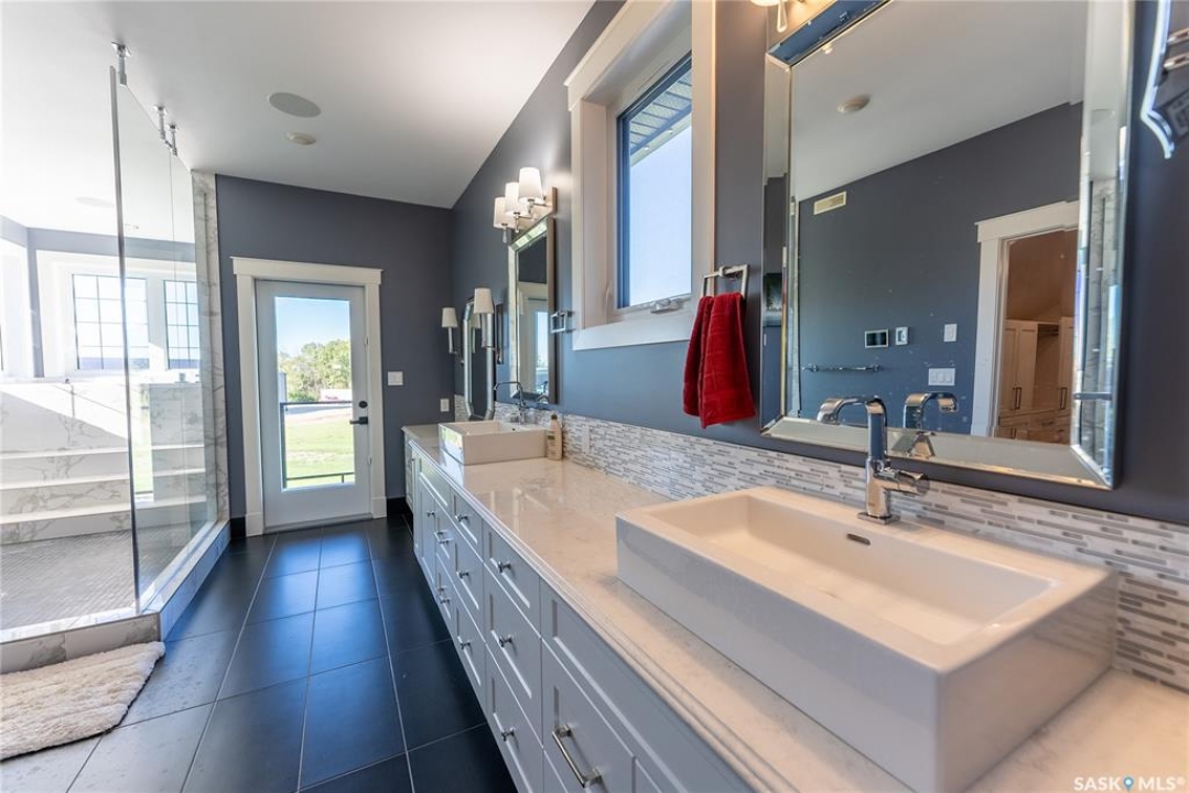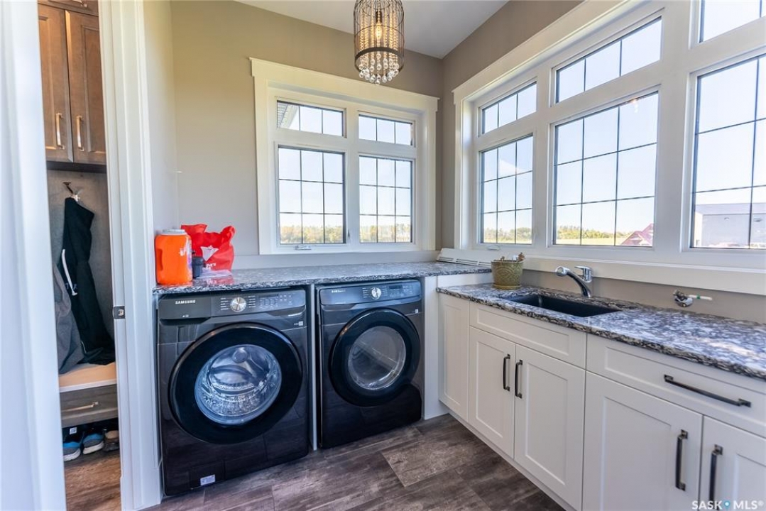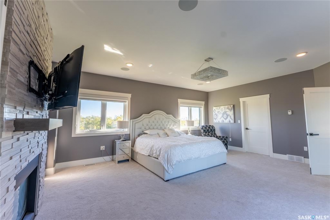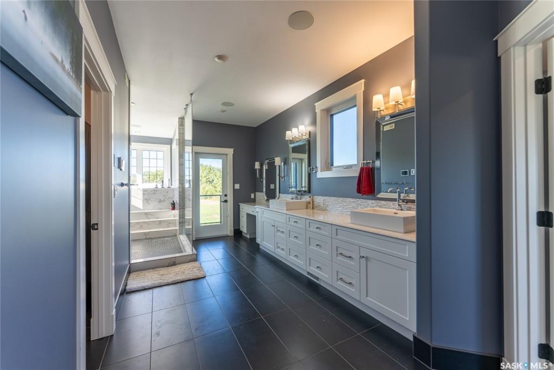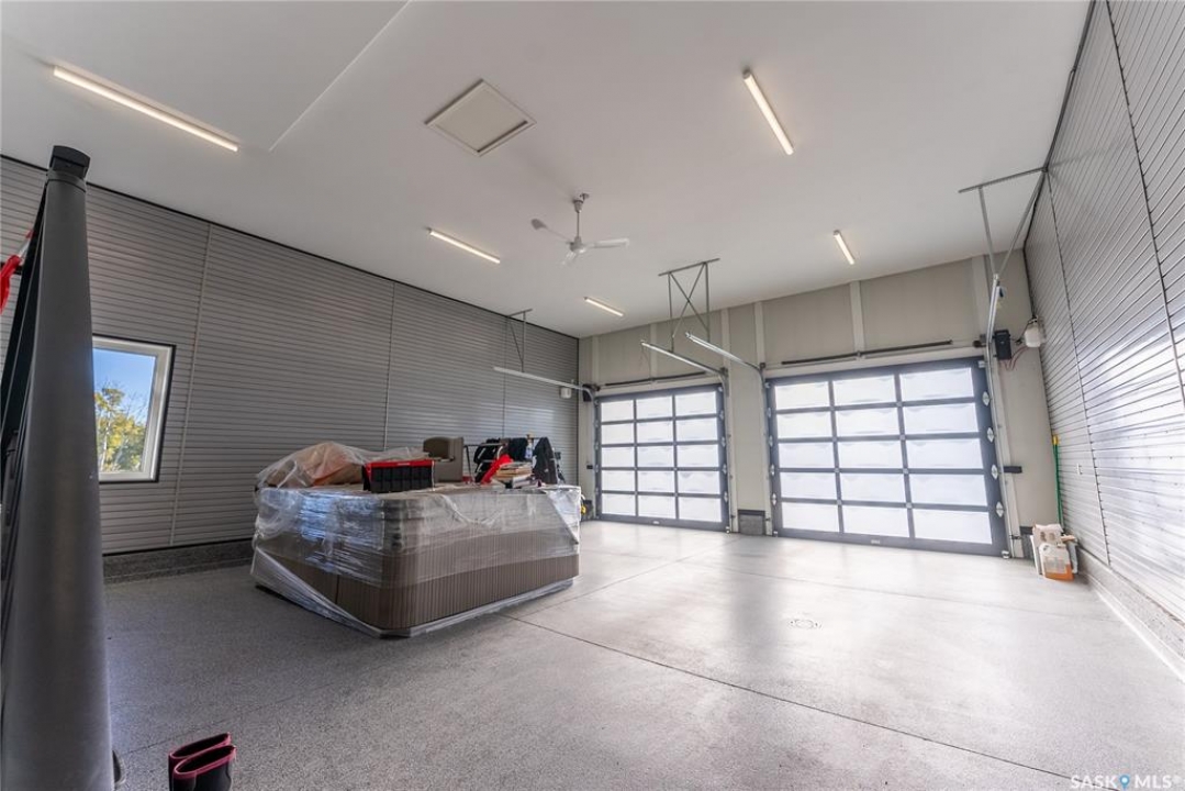 Welcome to the absolutely stunning property located 40 minutes east of North Battleford, between Speers and Hafford on Highway 40. This parcel sits on 18.71 acres with a two-story house, over 4,000 sq. ft., and a detached shop, over 3,800 sq. ft., with living quarters above. This custom-built home has spared no expense, featuring Gemstone lighting, an elevator reaching all three floors, and a luxurious primary ensuite that will surely impress. The main floor consists of a 21-foot-high foyer, an 11-ft-high office, two fireplaces, a spacious living room with speakers throughout, a kitchen with a Sub-Zero fridge, a six-burner Wolf stove, a Jenn-Air microwave, and a laundry room with a beautiful view. The main floor also has access to the garage, back deck, which include natural gas BBQ hookups. Upstairs, you will notice the grand entrance with an amazing chandelier, two bedrooms with a Jack-and-Jill bathroom, two separate entrances to the second-floor deck, and an exquisite primary bedroom. This primary bedroom has a fireplace, two walk-in closets with a convenient washer and dryer, his-and-her sinks, an additional private deck, and a shower/jetted bathtub straight out of a magazine. The basement is perfect for a children's play space as it has a massive playroom and an unfinished section for games and storage. This home features, a water softener, reverse osmosis system, two furnaces, two AC units, on-demand hot water, and a separate entrance to the garage. The house also has an attached double garage with 13-ft-high ceilings (31 x 26). Outside is the massive 88 x 44 detached shop with an 18-ft-high door, perfect for RV storage, and additional doors at 12 ft high. The main ceiling height is 21 ft, and the living quarters are 24 x 43. This shop includes a projector, a washroom, laundry facilities, a furnace system, in-floor heating, on-demand hot water, an alarm system. Call today to book your next luxury country living tour!