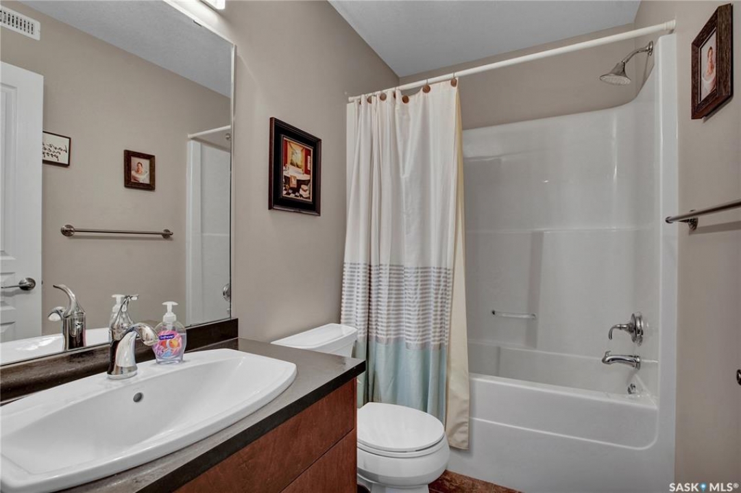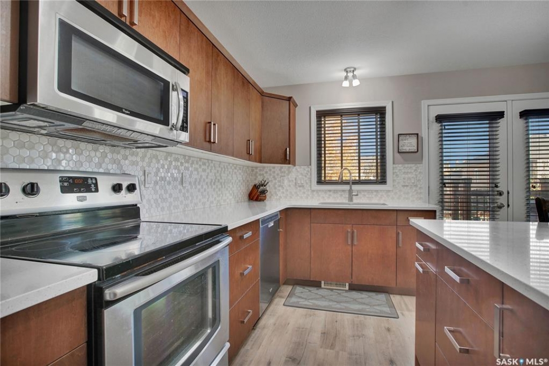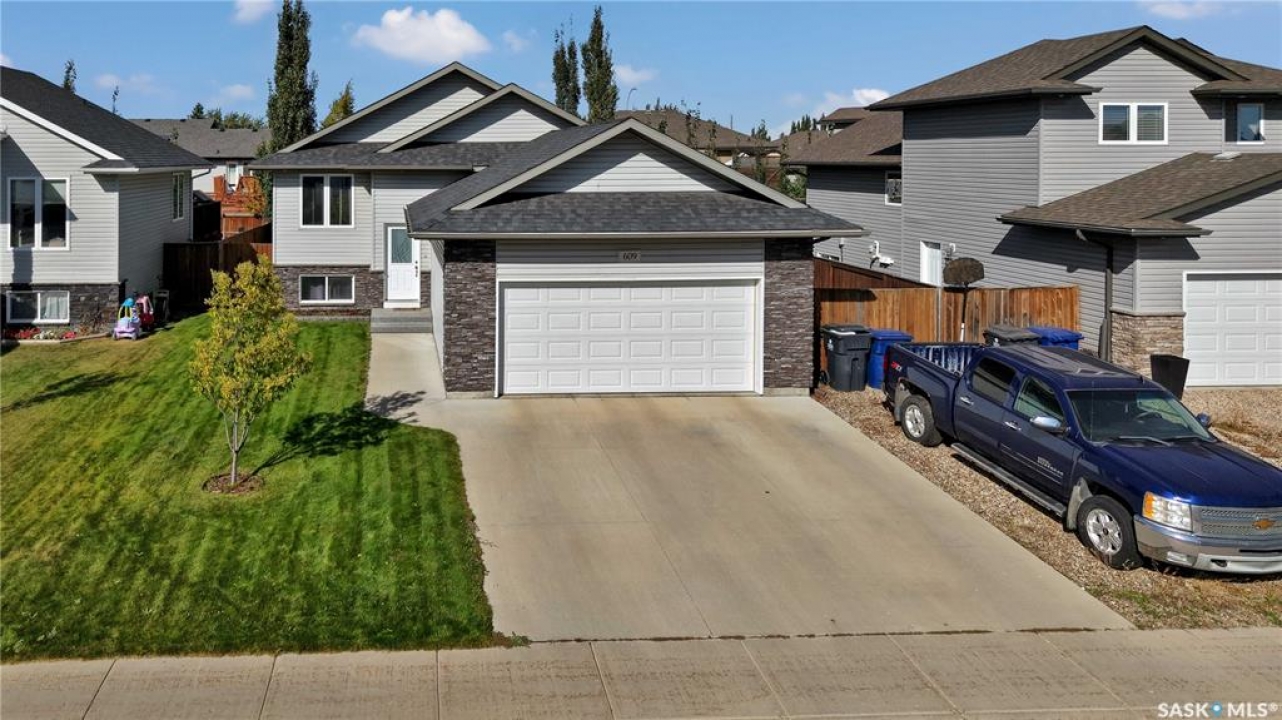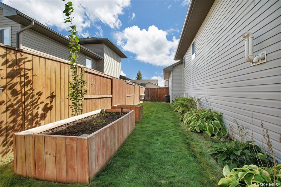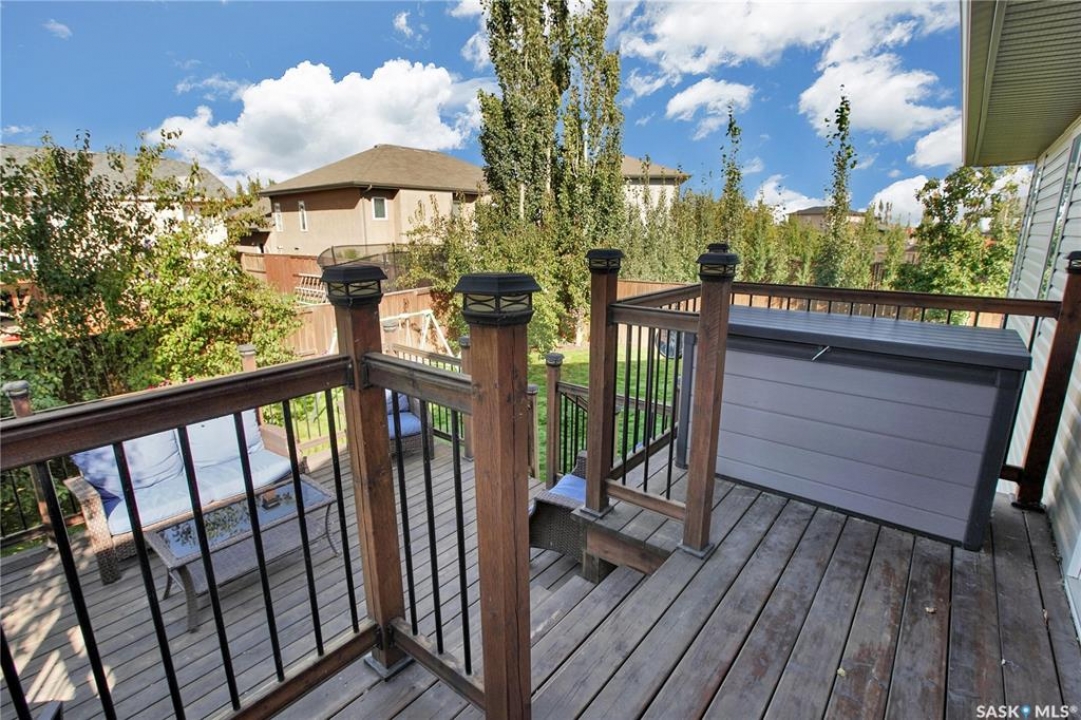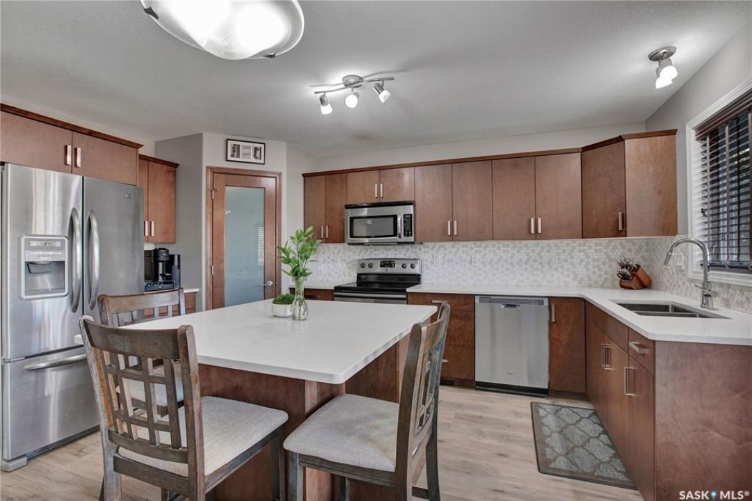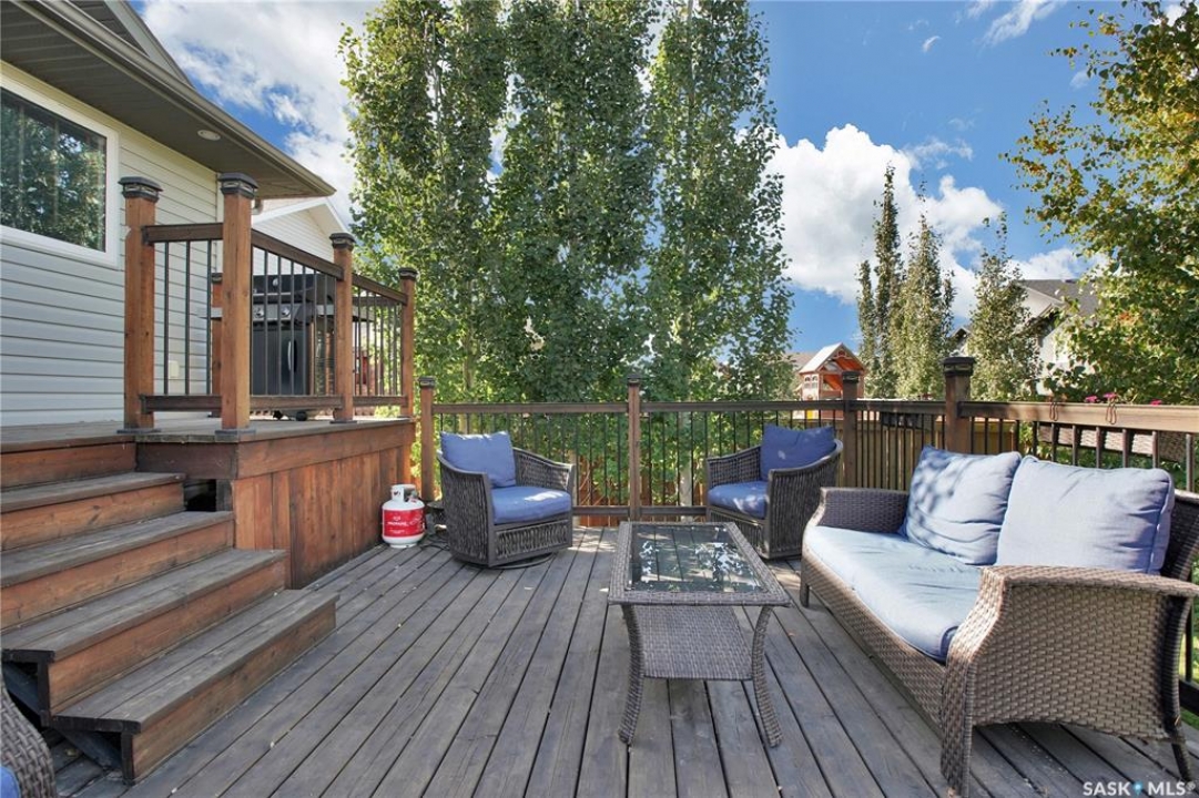 Modern, bright, and beautifully maintained bi level— this four-bedroom, three-bathroom home has space for everyone and style to spare. Step inside to an inviting main floor with large windows that flood the space with natural light. The kitchen features modern finishes, a custom backsplash, and views of your private backyard oasis. The lawn is so lush it's hard to tell where the grass ends and the carpet begins! Enjoy summer evenings on the two-tier deck surrounded by mature trees and raised garden boxes — it's a backyard you'll never want to leave. Downstairs, the fully finished basement is a fantastic hangout zone complete with a wet bar that could easily double as a kitchenette — perfect for movie nights, guests, or a potential in-law setup. (Note: the fourth bedroom does not have a closet.) there is plenty of room for a 5th bedroom if desired. With three full bathrooms, thoughtful storage, and stylish updates throughout, this home is move-in ready and checks all the boxes. Located in family-friendly Martensville, you'll love the nearby walking paths, schools (including French Immersion), and the brand-new Rec Centre — everything you need for an active, connected lifestyle.