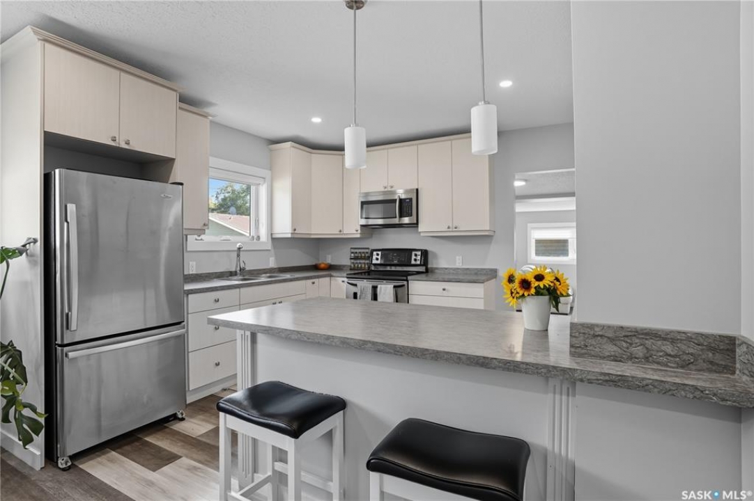 Looking for a nicely updated home in the south of Moose Jaw and close to the new school? This updated property offers a great location and plenty of updates throughout. Recent updates include a water heater (2025), air conditioner (2022), and PVC vinyl fencing (2022) enclosing a double wide lot, perfect for dog lovers. Inside, you will find updated kitchen cabinets and countertops, luxury vinyl plank flooring, nice carpet in the living room, bedrooms, family room, and den. The home also features PVC windows and doors, with a newer electrical panel and 100 amp service. Exterior updates include refreshed shingles and vinyl siding on the house, garage, and shed. The main floor offers a bright kitchen and dining area, a south-facing living room that fills with natural light, and two bedrooms. Downstairs, the developed basement includes a spacious family room, den, laundry area, and a 2-piece bath. Outside, enjoy the 20x24 garage and large 16x12 shed, great for storage or projects. If you have been looking for an updated home in South Hill near the new school, this is the one! Contact your REALTOR � to book a showing today!