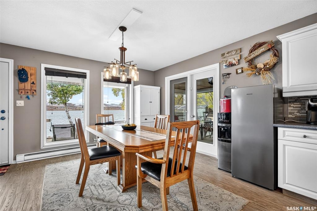 Experience the beauty of lakefront living in this charming 3-bedroom, 1-bath four-season home nestled along the shores of Buffalo Pound Lake. Thoughtfully maintained and designed for comfort, this inviting property offers breathtaking views and the perfect blend of indoor and outdoor living. Step inside to an open-concept living room and kitchen, where natural light and stunning lake views create a warm and welcoming atmosphere. The kitchen provides convenient access to the covered front deck, ideal for morning coffee or evening gatherings as you take in the peaceful lake scenery. A large screened deck extends your living space outdoors, offering a perfect spot to relax bug-free on summer nights, while the private back deck out back provides a quiet retreat surrounded by nature. Whether you're hosting family and friends or simply enjoying the tranquility, this property captures the essence of lake life. Enjoy the serenity of the water, the beauty of the surrounding landscape, and the comfort of a home that's ready for all seasons — a true retreat where every day feels like a getaway.