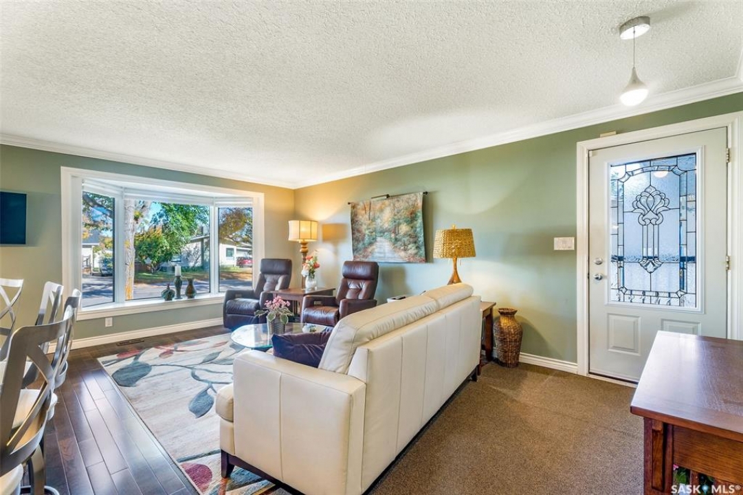 Remarkable 1,044 sqft bungalow located within walking distance to schools and parks! As you step inside you are greeted by gleaming dark oak hardwood flooring that flows throughout the main living areas and an open concept layout that creates a warm and inviting atmosphere. The spacious living room features a large bay window that fills the space with natural light and connects seamlessly to the dining area and kitchen. The modern kitchen is both stylish and functional and offers stainless steel appliances, white cabinetry, a beautiful tile backsplash and an island with bar seating that brings family and friends together. The main floor also includes 2 comfortable bedrooms, a convenient laundry area with direct access to the back deck and a beautifully finished 3 piece bathroom featuring a stand up shower with striking tile surround. The fully finished basement provides an expansive family room centered around a cozy gas fireplace, a 3rd bedroom with a walk-in closet, a 4-piece bathroom that has a beautiful tub surround, utility room and plenty of storage space. Notable features and updates include central air conditioning, an energy efficient furnace (2017), hot water heater (2017) and shingles (2017). The exterior is just as impressive with a fully fenced and thoughtfully landscaped yard with mature trees, a large deck and patio, perfect for outdoor enjoyment. The property also includes 2 sheds with beautifully finished exteriors that provide both charm and additional storage, along with a partially insulated single attached garage and parking pad. Act now and make this your next home!