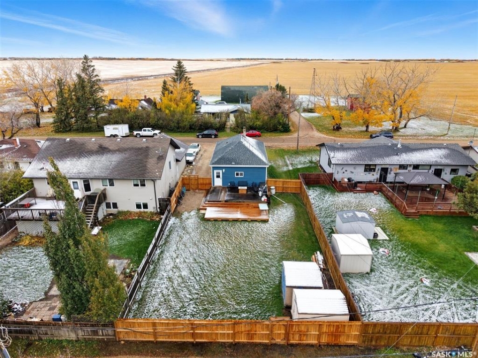 The very BEST of both worlds! Experience the peace of a friendly small town that is just a short commute to Saskatoon! This charming 3 bedroom,2 bathroom home offers a smart use of space, modern updates, and a great location just a short walk to the k-12 school and Aberdeen Recreation Complex! With just over 800 Sq ft, this home boasts a perfect blend of comfort and practicality! Main floor features :a spacious master bedroom, a bright ,eat-in kitchen, family room, updated 4pc bathroom and a versatile den(perfect for your home office, nursery, or playroom).Basement features:2 additional bedrooms,3pc bathroom,flex room that is perfect for hobby area or home gym,large utility room with loads of room for storage, and Laundry room. This home has seen a lot of updates and improvements,offering peace of mind and move in ready comfort! Enjoy the outdoor space complete with a newer deck located conveniently off of the kitchen which is fantastic for entertaining and family bbqs. The huge,fenced yard will delight garden enthusiasts with room to build your dream garage! The newly added 3 car driveway provides ample off street parking!Other notable improvements include:(2020)New wood basement foundation with weeping tile and sump pump/basement bath shower/Most Windows replaced (exception of 2 large front windows&smaller front window(2010)/back door/updated main floor bath(except tub) (2012) High efficient furnace,most main floor flooring,interior doors (2010)R50 insulation in attic, 50 gallon hot water heater. If you are looking for value and want to escape the city bustle, look no further! This one is for you!