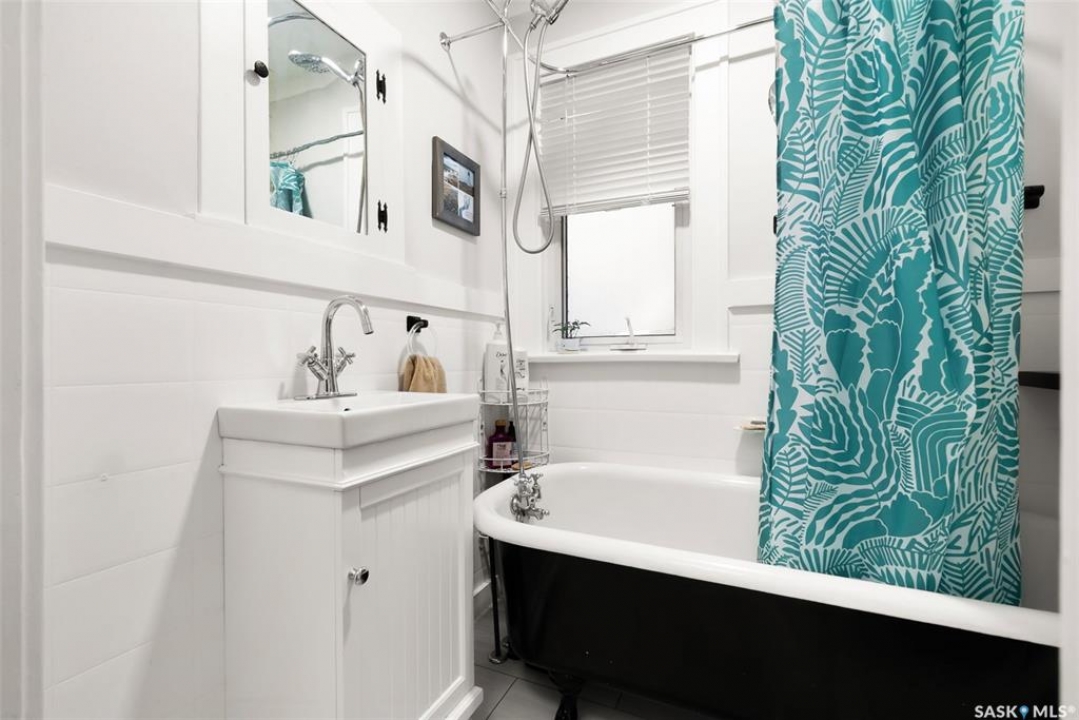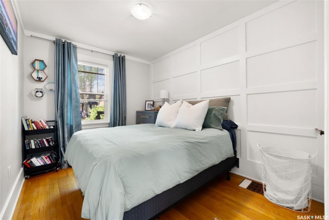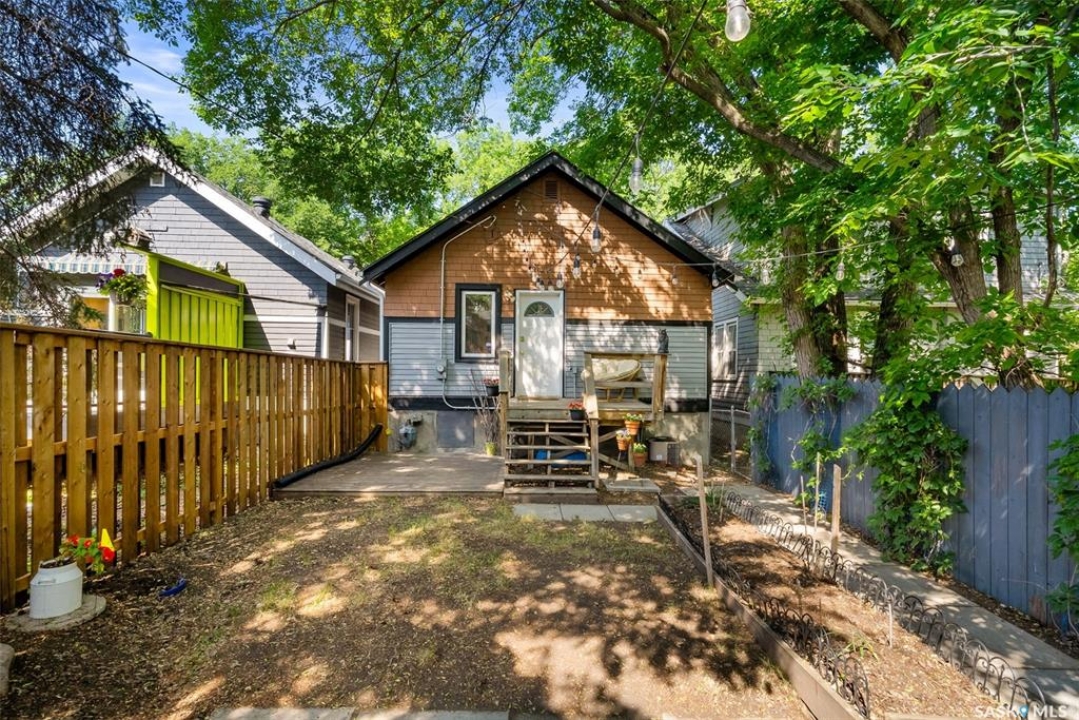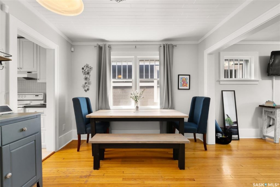 Welcome to 2061 Elphinstone Street—perfectly situated in the heart of Regina's sought-after Cathedral neighborhood. Just steps from 13th Avenue's trendy coffee shops, restaurants, and boutiques, and within walking distance to Mosaic Stadium, Brandt Centre, and Evraz Place, this home offers unbeatable access to local events and amenities. Inside, this inviting bungalow features a bright, sunlit sitting room, spacious living and dining areas, and original hardwood flooring that adds timeless character. Classic details like tall baseboards, crown molding, and plaster accents enhance the cozy atmosphere. The white kitchen offers a full appliance package and a unique foldaway pantry hatch—blending charm with functionality. The main floor includes two generously sized bedrooms and a beautifully updated 4-piece bathroom complete with vinyl plank flooring, a clawfoot tub, and modern vanity. Additional features include central A/C, a security system, and basement laundry. Enjoy the fully fenced and landscaped backyard with garden beds, patio space, single detached garage, and extra parking via the rear alley. Seller states upgrades include a full electrical replacement and new panel (2021), and half the windows replaced in 2023. Live the Cathedral lifestyle—walk to the farmers market, catch a concert, or relax with a book from a local Little Free Library. Don't miss your chance to own this charming home in one of Regina's most vibrant communities. Book your showing today!