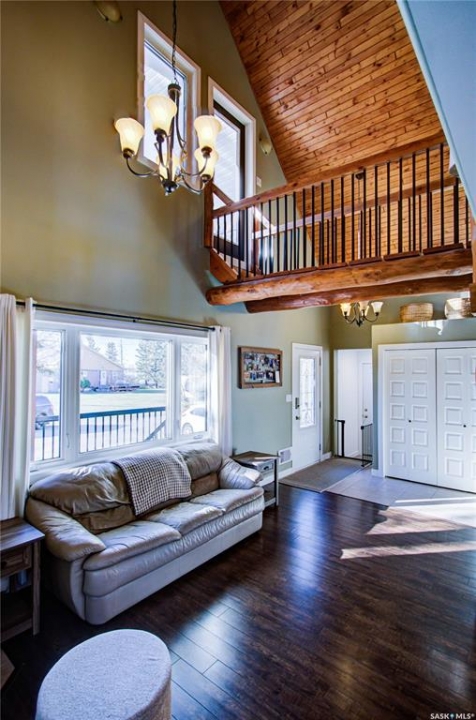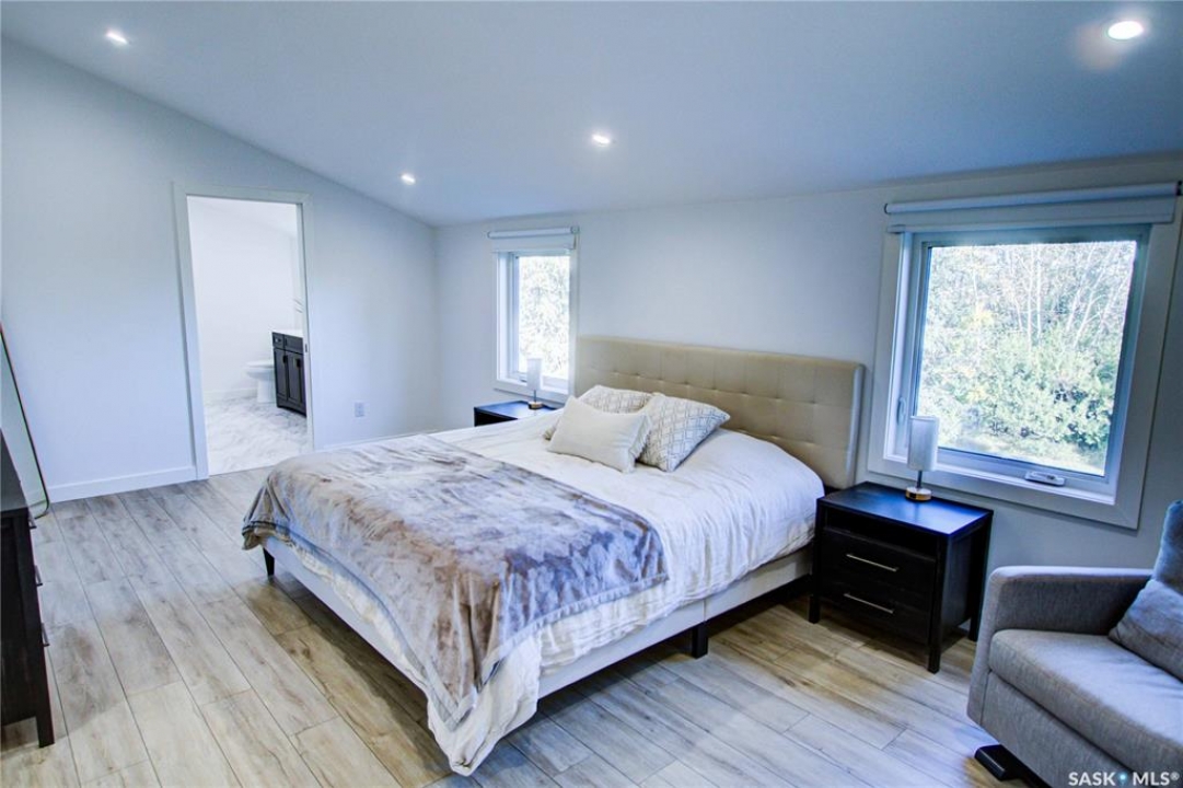 Check out this 5 Beds | 3 Baths + Roughed-in 4th Bath | 1,850+ Sq Ft | Oversized Heated Garage Welcome home to the quaint village of Beatty, a friendly farming community nestled along Hwy 3, just minutes from the city of Melfort and its schools, services, and amenities. This beautiful property offers the perfect blend of small-town charm and modern comfort, boasting over 1,850 sq ft of living space plus a fully finished basement. Originally built in 2012, this home was moved onto a new ICF basement in 2017 and extensively updated, with another major addition in 2022. The addition features an oversized primary bedroom with ensuite, a large laundry/craft room, an additional spacious bedroom, and a massive 2-car heated garage with 9' overhead door and plenty of extra storage. Step inside and be welcomed by stunning log beams and pillars, a vaulted open-concept layout, and a suspended walkway leading to a south-facing balcony. Enjoy family BBQs on the 300 sq ft deck off the kitchen overlooking a private backyard framed by mature trees and bush. The fully developed basement adds approximately 700 sq ft of extra living space and includes a roughed-in 4th bathroom. Additional highlights include: In-floor heat in basement and main bath -- South-facing balcony for natural light -- Quiet dead-end street with minimal traffic -- Village water, sewer & garbage service -- Great highway access to Melfort, Kinistino & St. Brieux -- Option to purchase adjacent .4-acre lot from the Village of Beatty This is a one-of-a-kind home with rustic character and modern upgrades—ideal for families looking for more space and tranquility without giving up convenience.