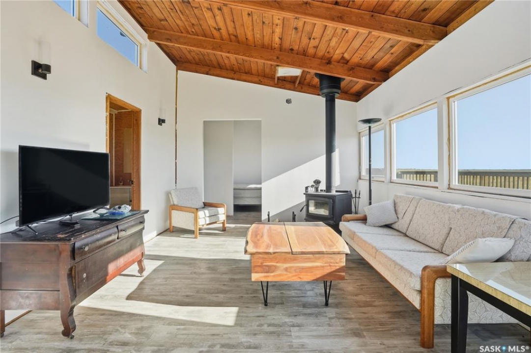 Located just one hour from Regina and a quick 18-minute drive to the town of Strasbourg, this half section (320 acres) of prime farmland sits in the RM of McKillop - just minutes from the stunning shores of Last Mountain Lake. The views here are truly incredible, offering wide-open prairie skies and rolling farmland as far as the eye can see. This property includes two cultivated quarter sections, plus 4 grain bins and a quonset, making it an excellent setup for active farming or investment. Adding to the appeal is an off-grid, 3-season cabin - the perfect hunting or getaway retreat. Set within a one-acre fenced yard, this rustic gem features spacious decks, a wood-burning stove, propane water heater, and solar power system for that self-sufficient lifestyle. Inside, the cabin offers all the comforts of home with a cozy kitchen to prep those hearty farm meals, a bright dining area surrounded by windows that flood the space with natural light, and a welcoming living room where the wood stove creates the perfect atmosphere for cooler evenings. You'll also find a full, updated bathroom, a primary bedroom, and a bonus den or guest room - perfect for friends or family staying the weekend. Whether you're looking to expand your farming operation, invest in quality Saskatchewan land, or enjoy a peaceful rural escape, this property has it all - and the cabin can easily be removed if you'd prefer to make the land completely yours. Experience the freedom of owning prairie farmland near the lake - where productivity meets peace and quiet.