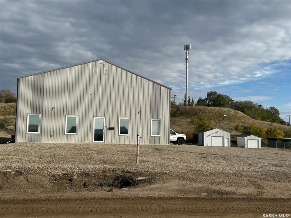 Exceptional opportunity to own or lease a well-maintained 4,200 sq. ft. commercial building situated on a 200' lot. This versatile property offers a blend of functional shop space, comfortable office areas, and cold storage facilities — ideal for a wide range of industrial, construction, or service-based businesses. 4,200 sq. ft. main building has plus mezzanine (Additional storage or workspace area overlooking the shop), enclosed offices suitable for administrative or management use, a boardroom, coffee room/kitchen as well as 2 washrooms; Large open-span shop space with high ceilings and 3 overhead doors for easy access. The yard space has a secured fenced compound as well as being heavily graveled and leveled in 2024. There are also 2 cold storage garages on the property