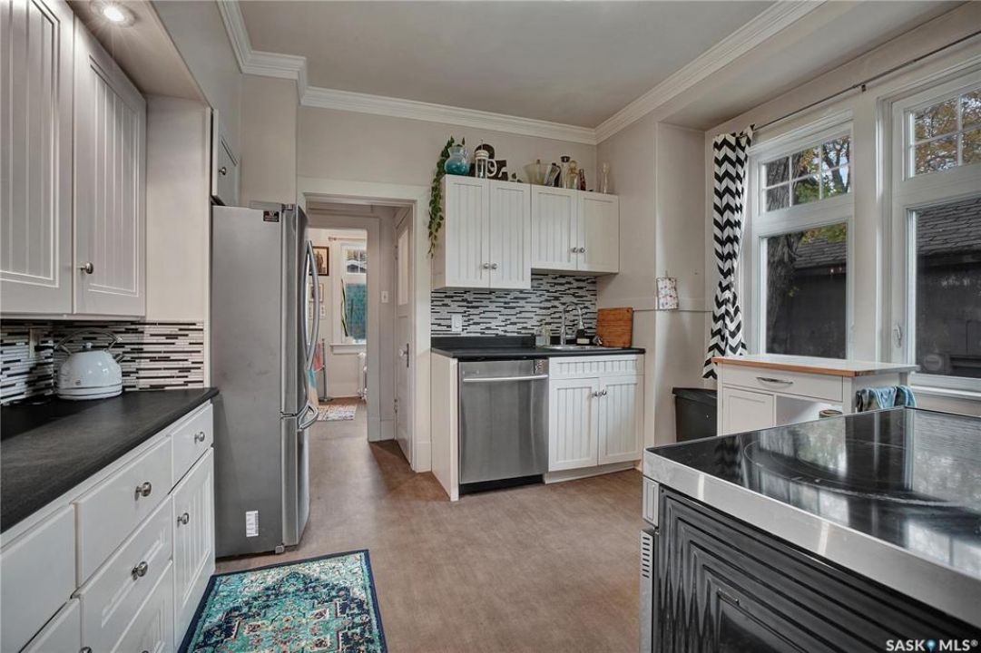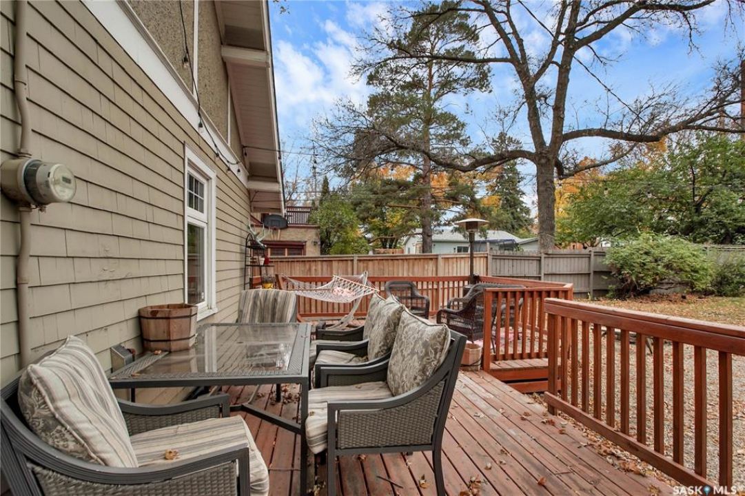 Welcome to 110 29th Street W — a charming character bungalow tucked away in the heart of Caswell Hill. This is one of those homes that immediately feels welcoming, with original hardwood floors, plenty of natural light, and just the right mix of vintage character and modern touches. Caswell Hill is loved for its tree-lined streets and central location — you'll have quick access to downtown, the Sask Polytech campus, and some of Saskatoon's best local shops and restaurants. Inside, you'll find a bright kitchen with stainless steel appliances and a cozy dining space that's perfect for casual dinners. Both bedrooms are a comfortable size, and the basement offers a large living area — ideal for movie nights or a home office — plus tons of extra storage. Outside, the large yard has mature trees, a spacious deck for entertaining, and a great firepit area for relaxing evenings. The 23' x 23' detached double garage with two single doors gives you plenty of room for vehicles and storage, and there's even an extra parking pad out front. If you've been looking for a character home in a great central location, this might be the one.