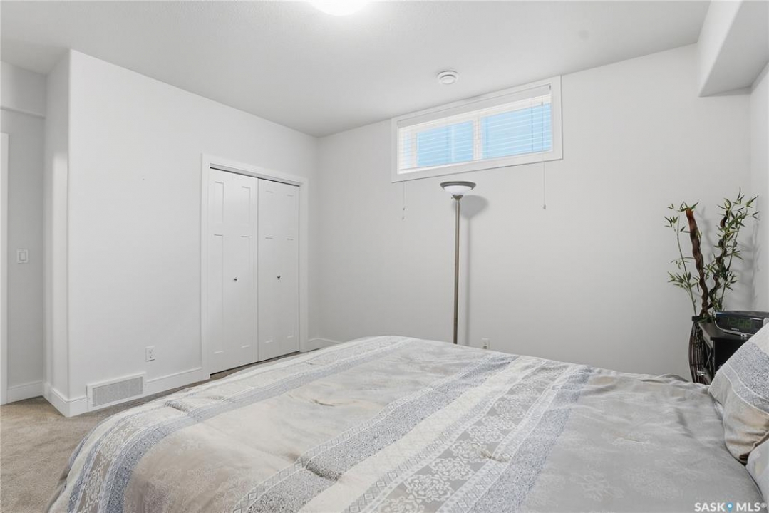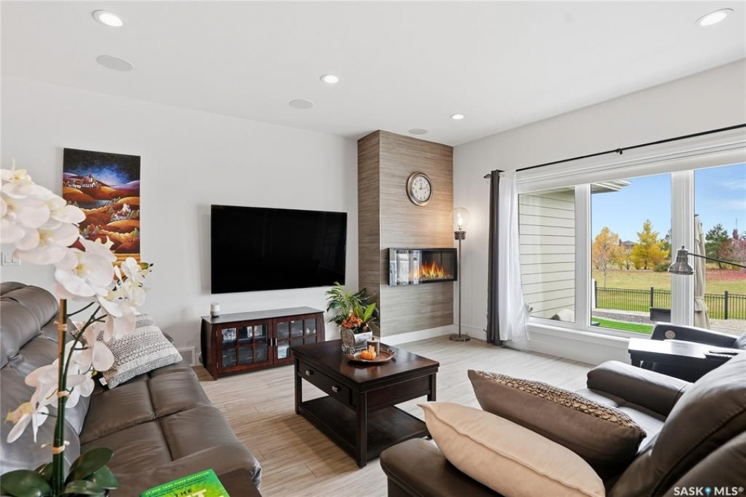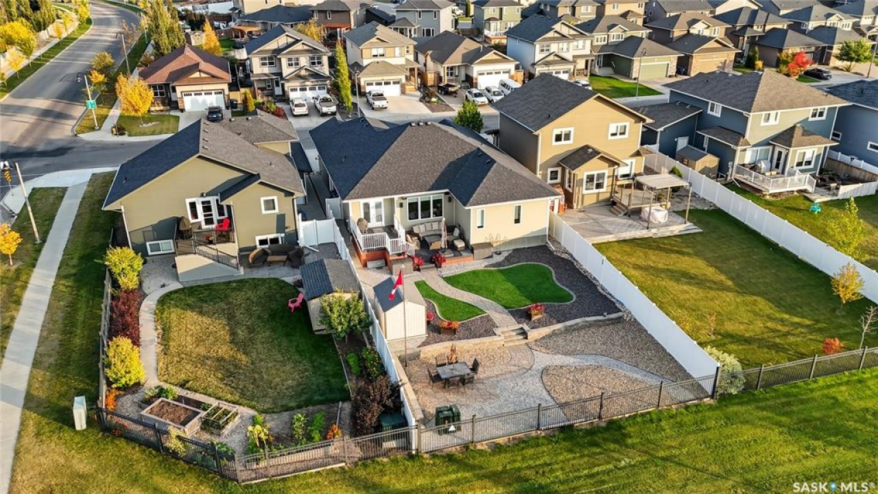 Wow! This home is truly a gem. This immaculate custom-built Fraser Homes bungalow (2014) offers 1730 ft. of fully developed living space, designed with functionality and luxury in mind. Featuring 6 bedrooms + a den, this home boasts high-end finishes, 9' ceilings, a sound system throughout, and multi-zone heating and cooling. The chef's kitchen includes a large island, custom maple cabinetry, stainless steel appliances, marble backsplash, and quartzite granite countertops. The primary suite features a spacious walk-in closet and ensuite with dual sinks and glass shower. All three bathrooms offer heated tile floors and Kohler fixtures. Enjoy maintenance-free landscaping with zero-scape turf, flagstone pathways, composite fencing, and a two-tier deck backing the park. Exterior upgrades include Trimlight LED event lighting (phone-controlled), polyaspartic-coated garage floors, and Hardie Board siding. With southwest exposure, three natural gas outlets, and a triple concrete drive, this home blends quality, comfort, and design in every detail.