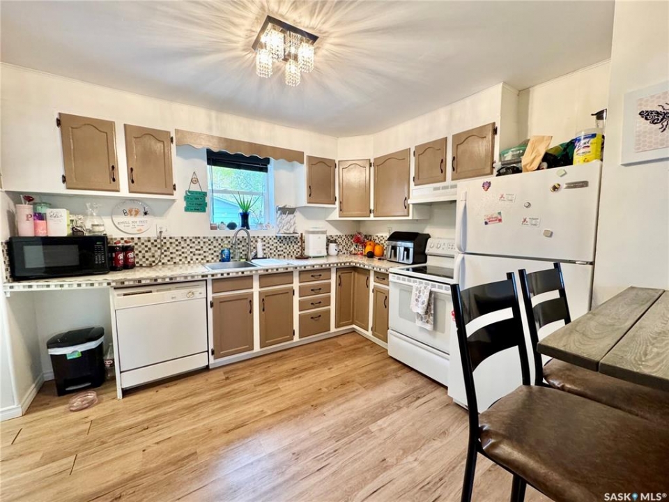The perfect place to start! 100% move in ready this 2 bedroom, 1 bathroom entry level home is situated within a quiet East side neighbourhood and is close to all amenities. The main level of the residence provides a spacious front living room with southern exposure, an L shaped kitchen with combined dining and an overhauled 4pc bathroom. The exterior of the property comes fully fenced and supplies a ground level patio area, huge front gravel driveway with a single detached garage off of the rear lane.