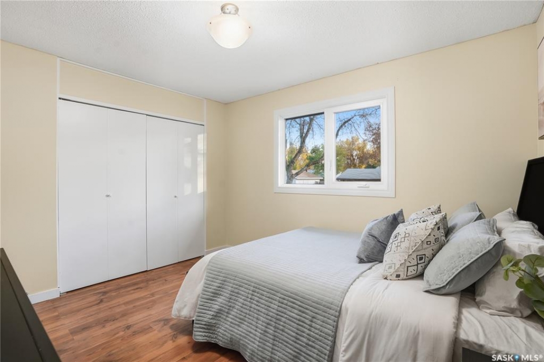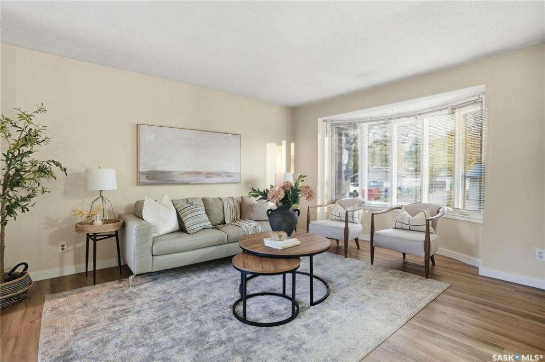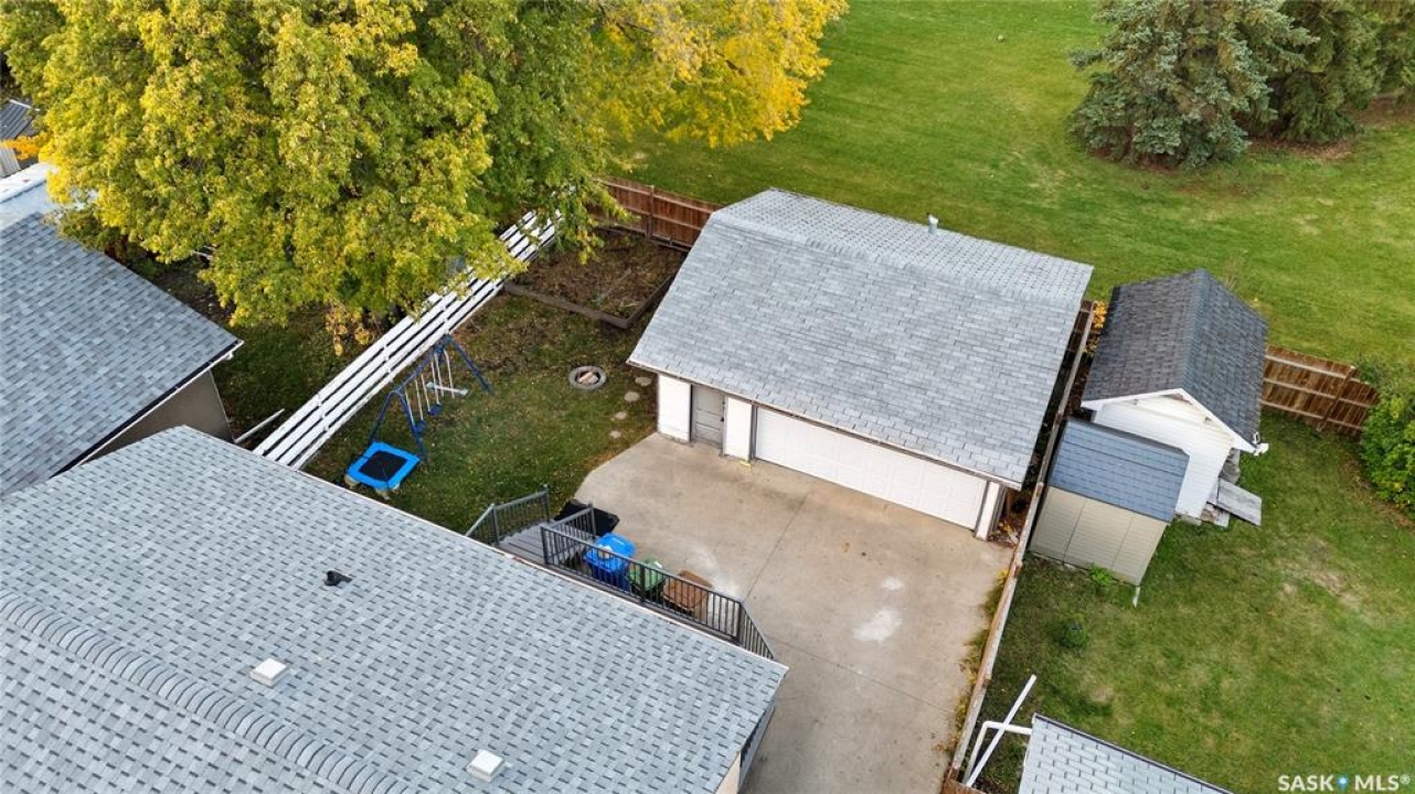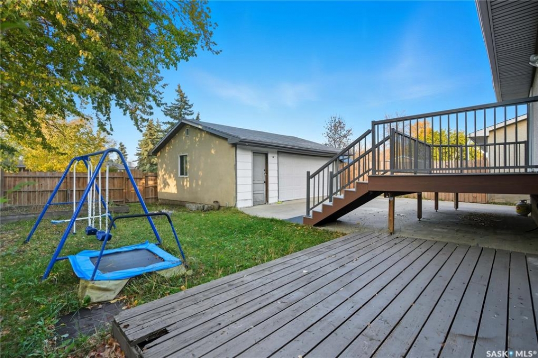 Excellent starter home, welcome home to 1722 7th Ave E — over 800 sq f this bilevel is move-in ready and full of natural light. This 2 + 1 bedroom home features a bright, south-facing living room, an updated kitchen, and a dining door that opens to a composite deck overlooking a large yard and adjacent green space — perfect for morning coffee or weekend relaxation. Lower level offers thoughtful family-ready space: a large recreation room, a third bedroom and a three-piece bath, plus brand-new carpet in the basement. Outside you'll find a double detached garage with a newer overhead door and plenty of fenced yard for kids and pets to run and play. Notable upgrades since 2021 include, flooring, electrical panel, composite deck, pvc windows, shingles replaced in 2025, new basement carpet Oct 2025, garage over head door. Comfortable, well-maintained and tucked backing onto green space — an excellent option for families or first-time buyers who want outdoor living with easy maintenance. Book your showing today to see this home in person. *Note some photos have been virtually staged*