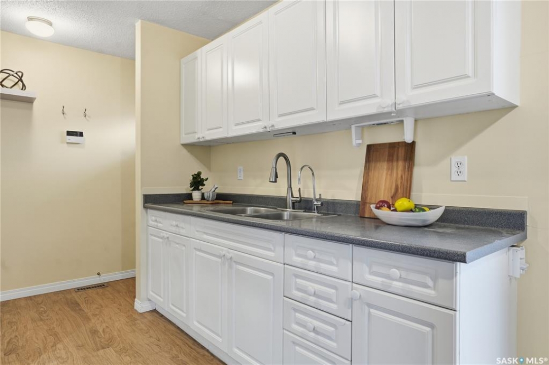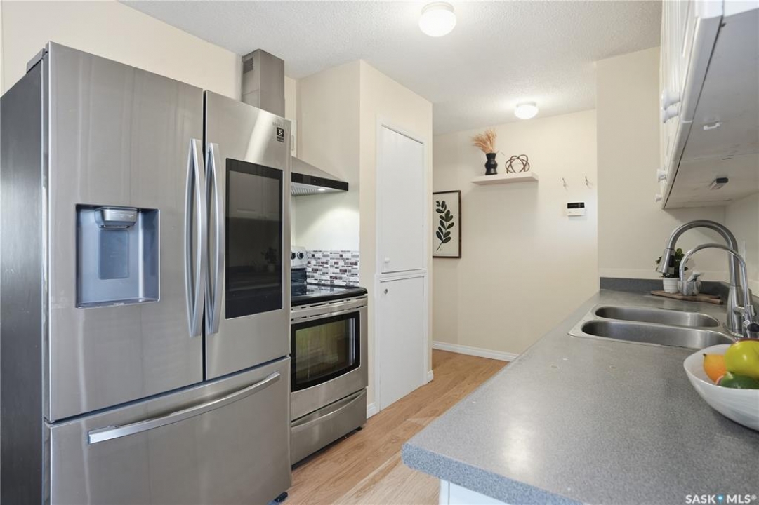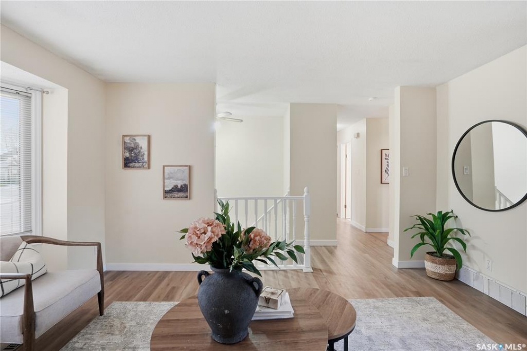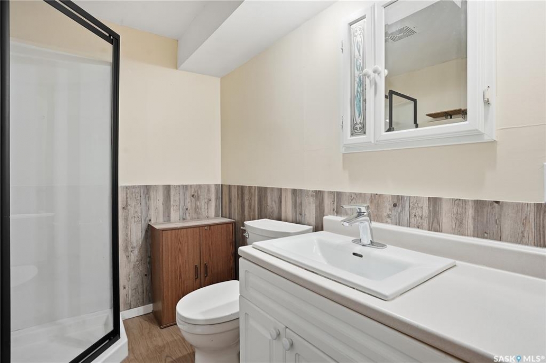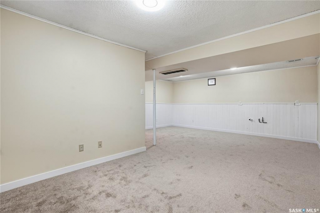 Excellent starter home, welcome home to 1722 7th Ave E — over 800 sq f this bilevel is move-in ready and full of natural light. This 2 + 1 bedroom home features a bright, south-facing living room, an updated kitchen, and a dining door that opens to a composite deck overlooking a large yard and adjacent green space — perfect for morning coffee or weekend relaxation. Lower level offers thoughtful family-ready space: a large recreation room, a third bedroom and a three-piece bath, plus brand-new carpet in the basement. Outside you'll find a double detached garage with a newer overhead door and plenty of fenced yard for kids and pets to run and play. Notable upgrades since 2021 include, flooring, electrical panel, composite deck, pvc windows, shingles replaced in 2025, new basement carpet Oct 2025, garage over head door. Comfortable, well-maintained and tucked backing onto green space — an excellent option for families or first-time buyers who want outdoor living with easy maintenance. Book your showing today to see this home in person. *Note some photos have been virtually staged*