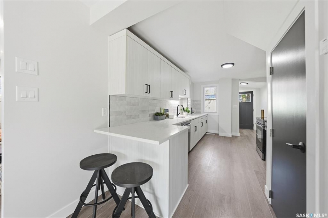 Charming 2-Storey Gem in the Heart of Caswell Hill – A True Must-See! Nestled in the highly sought-after Caswell Hill neighborhood, this stunning home backs onto serene green space with a dog park and Mayfair Pool and Waterside just steps away. Outdoor enthusiasts will love being only a short walk from parks, basketball, and tennis courts — making this location truly unbeatable. This home exudes fantastic curb appeal with brand-new siding, stylish board and batten accents, and gorgeous cedar finishings. Inside, you'll find newer windows, doors, soffit, fascia, eaves, and shingles — all contributing to its exceptional condition. A rare find in this area, this home offers the perfect combination of old charm and modern updates. At 1,302 sq. ft., this spacious 2-storey home boasts a developed basement with a family room, 3-piece bathroom, and laundry area. The home has been thoughtfully updated with a new upgraded furnace and water heater, ensuring peace of mind for years to come. The kitchen is a showstopper with new custom cabinets, quartz countertops, and a beautiful tile backsplash — a true chef's delight. Brand-new stainless steel appliances and a front-load washer/dryer complete the space, providing all the modern amenities you need. The large living room is perfect for entertaining, featuring a custom coffee bar and plenty of natural light. Upstairs, you'll find 3 cozy bedrooms and a beautifully renovated 4-piece bathroom. The interior has been completely renovated, combining the charm of its vintage details with the convenience of contemporary finishes. Outside, the private backyard is an entertainer's dream, featuring a concrete patio, a walkway to the oversized heated double detached garage (24x22), and a large shed for all your storage needs. The firepit area adds the perfect touch for those cool evenings spent outdoors. This home doesn't come up every day and has everything you need to live comfortably and in style, this home is a must-see!