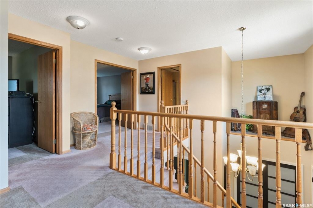 Welcome to one of Saskatoons finest condominium developments- Heritage Estates. This 1795 sq.ft, two story townhouse has had numerous upgrades including a stunning kitchen complete with leather looking countertops and island with gorgeous countertop. During the renovations they also added in a built in hutch in dining nook area. There is a gas FP in living room that compliments both dining and living room area. Garden doors off nook to rear interlocking brick patio and grassed area with the pool and clubhouse access nearby. The home offers 2 bedrooms plus a den that overlooks the main floor front entry (potentially could be a 3rd bedroom)on the 2nd floor. The Master bedroom offers 3 closets as well as a 4 piece ensuite consisting of double sinks in vanity, toilet plus a large soaker tub. The 2nd bedrooms is also a good size with double closet. The main floor also offers a 2 piece bath/laundry combination room. This home has had numerous upgrades including the triple pane LowE argon PVC windows and a upgraded water heater. The double attached garage is finished and offers direct entry (inside dimensions are 23' deep by 20' wide). The lower level has approx 9' high ceilings and is open for your own personal development. Condo fees are set at $578/month (Professionally managed) which includes common insurance & maintenance, snow removal for driveway and sidewalk and roadway within complex, lawn care, garbage & reserve fund. This development has recently had all roofs within the redone. Not only will you appreciate the luxury living space, you can immerse yourself into the community offered within this long standing condo complex. They have a variety of weekly events with a Thursday Happy hour, pickle ball, coffee gatherings and plenty of card games. You will be able to enjoy the outdoor pool, and recreation center and tennis courts that also serve as pickle ball courts. Taxes for 2025 $4111. For more information on this outstanding home contact your agent to view.