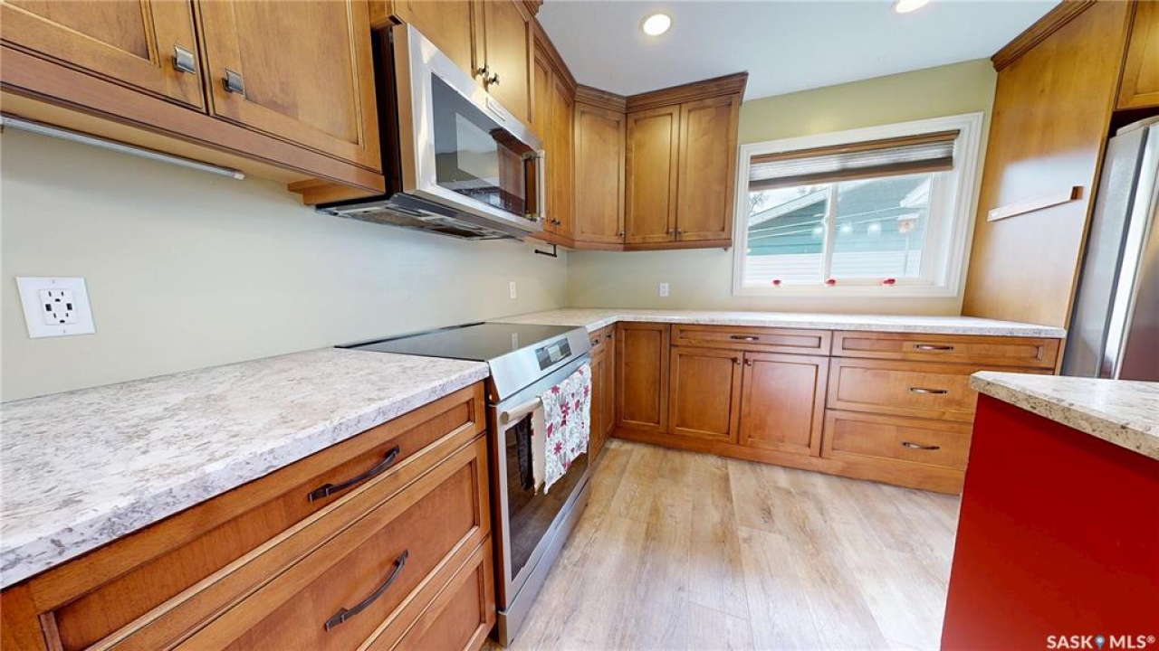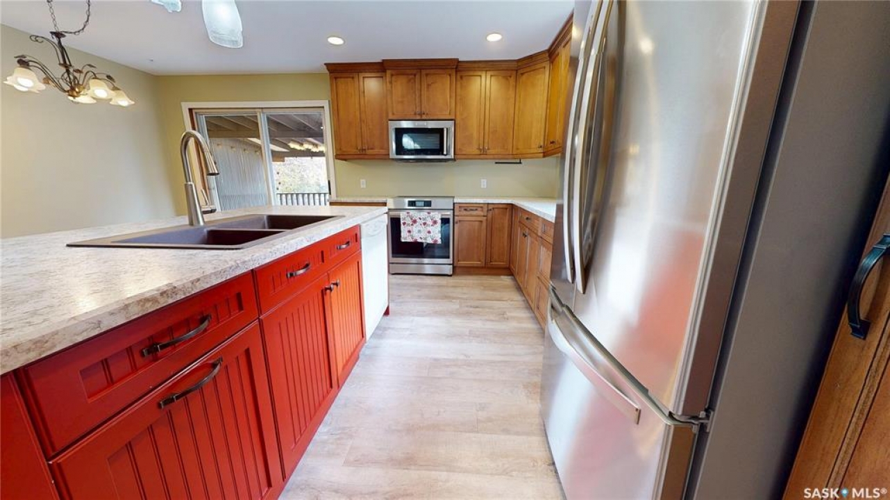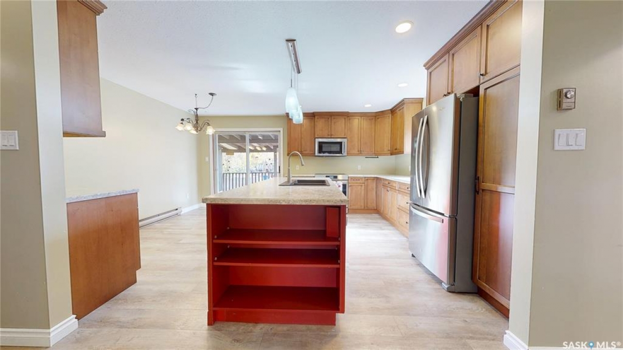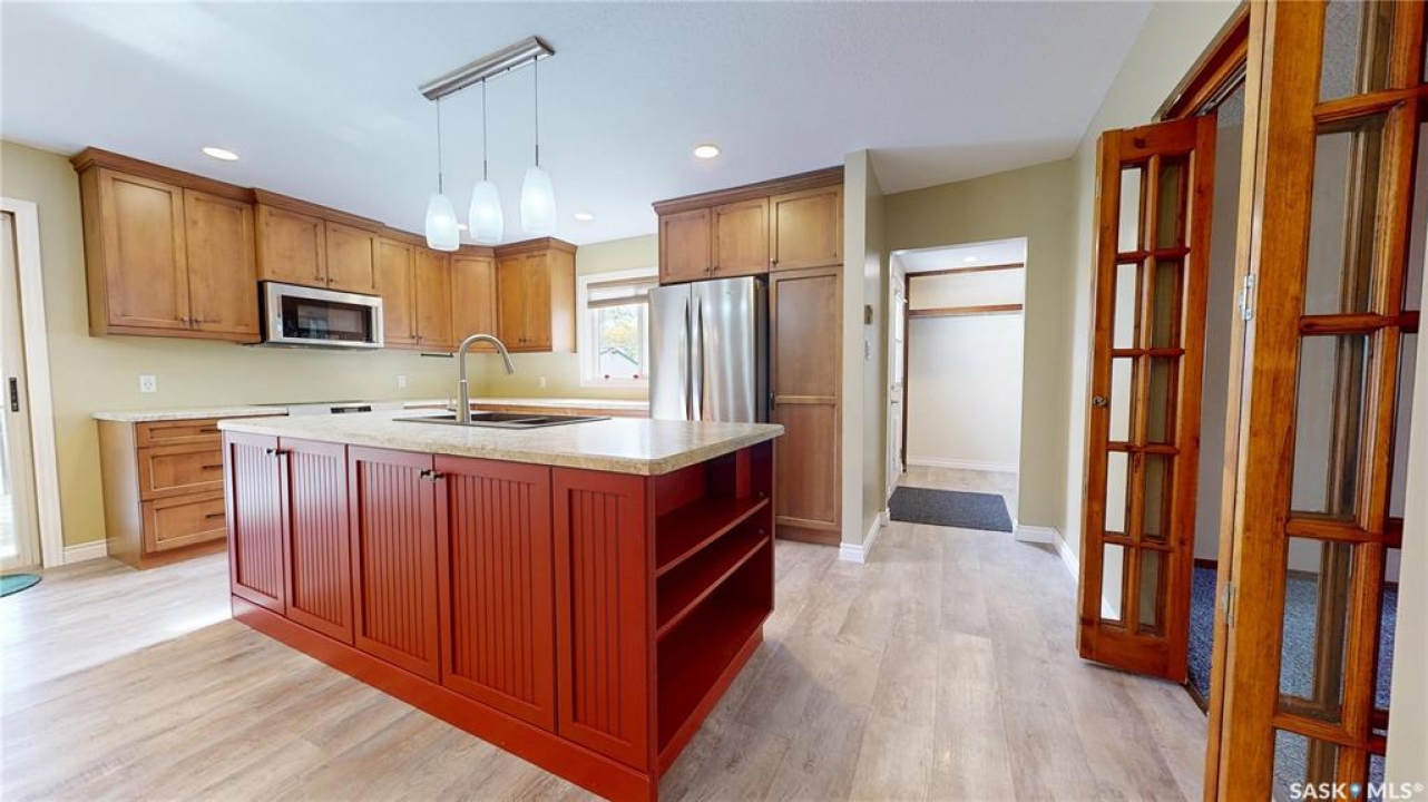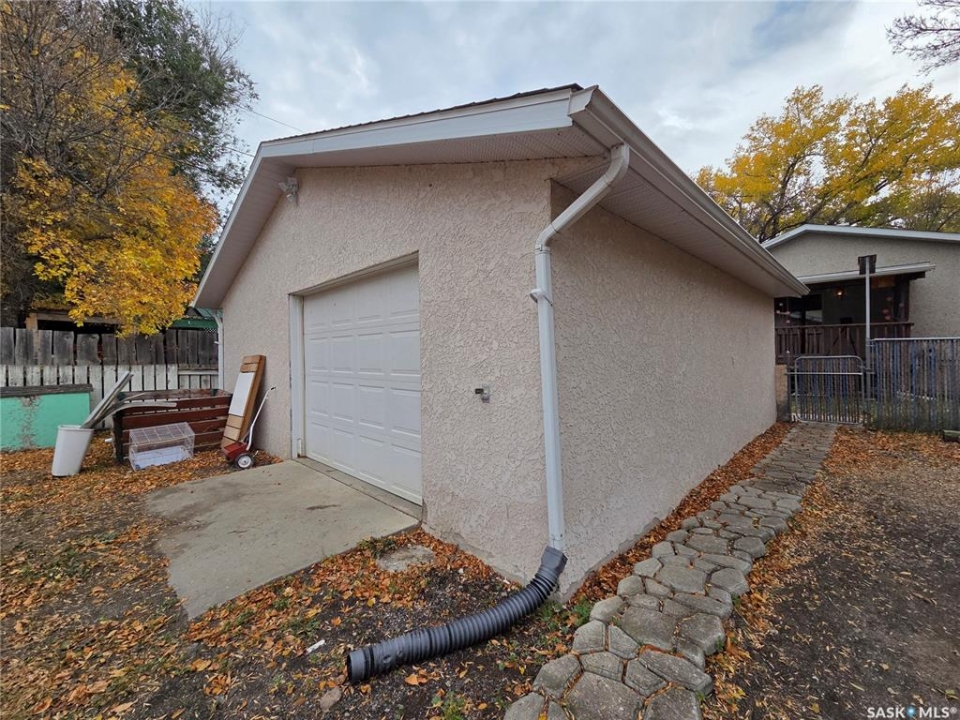 Priced to sell and available for quick possession, this home is an easy walk to Maple Creek's core shopping. This 2-bed 2-bath home has everything you need on one level. From the front entry you find a nice-sized living room and an adjacent den area that can be multi-functional as an office or easily converted into a 3rd bedroom. The rear of the home showcases a beautifully updated kitchen with a central island, sleek pot lighting, and modern appliances, complemented by a built-in display hutch. The dining area has glass doors leading out to the covered back deck, creating a feeling of spaciousness and would be a perfect spot for hosting friends and family. The Master bedroom easily can accommodate a king bed and has 3 pc ensuite. The 2nd bedroom is at the front of the home and beside the main 4 pc bath. The back entry porch has laundry with plenty of storage and high end side by side front load washer and dryer. The partial basement offers mechanical, good storage, and is large enough for development. This property also offers a double size detached garage with one side fully insulated, perfect for storage or use as a work shop/mancave. Exterior is stucco for minimal maintenance. Front c/c driveway, fenced back yard and extra gravel parking for more vehicles or RV. This home is a true gem at an affordable price. Don't miss your chance—call today and make it yours!