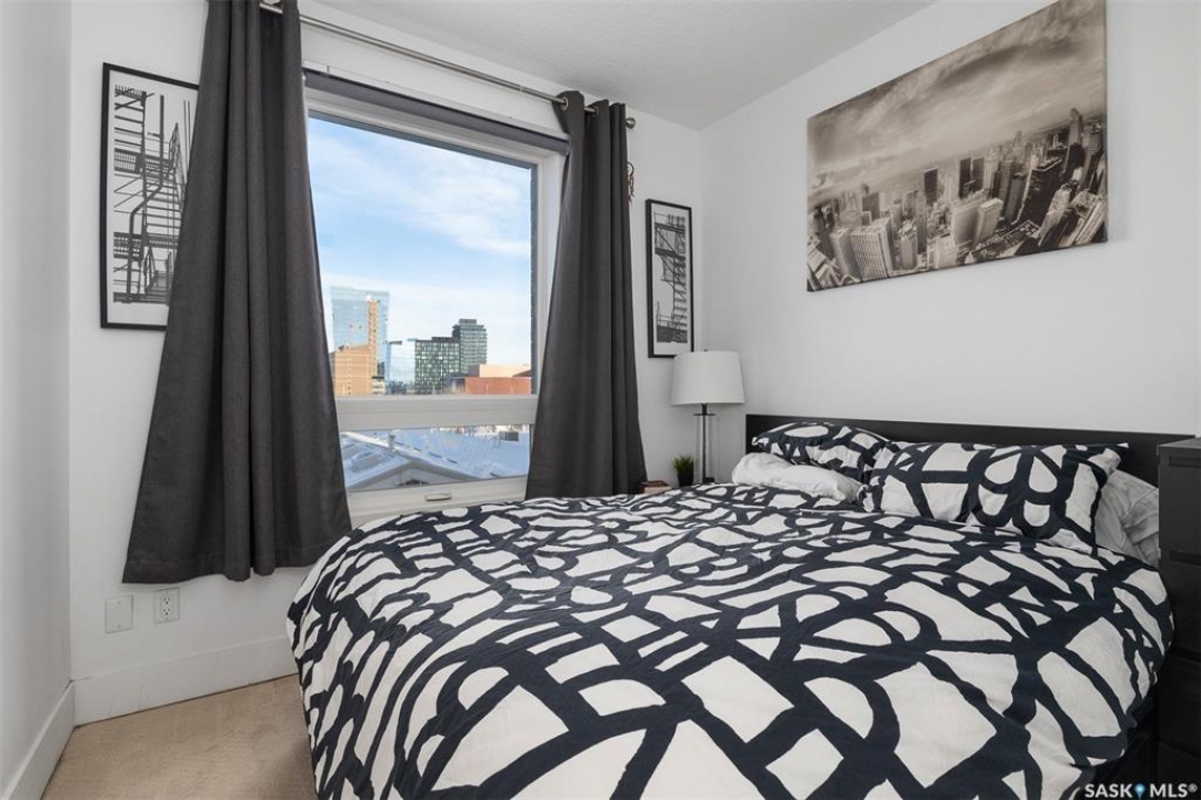 Vibrant Riversdale is calling you home!!! This corner unit with a stunning Downtown View from its LARGE BALCONY is just STEPS from the Riverbank, 20TH St, AND Downtown! This unit features a spacious bedroom, 1 bathroom, and a den/office. The kitchen is beautifully finished with high-quality cabinetry, quartz countertops, a stainless steel backsplash, and all appliances, including in-suite laundry. Riversdale is an exciting and vibrant neighbourhood, and this development is in the heart of it all. Homequarter, Guide Salon, and Local Barre are right in the complex, to name a few, with the action of 20th street at your fingertips. The unit also features heated underground parking, underground storage, and separate bicycle storage. Call your favourite realtor for a private viewing today!! Quick Possession Available!!