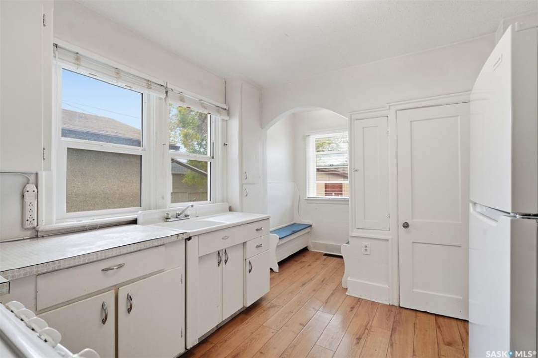 Step into this inviting 1930-built character home located in the heart of City Park, great location near walking trails along the riverbank, City Hospital, and Kinsmen Park. With 836 square feet of living space, this cozy bungalow offers 2 bedrooms and 2 bathrooms, blending classic charm with everyday convenience. Inside, you'll find beautiful hardwood floors in the front entrance and living room, along with plenty of natural light throughout. The kitchen features a charming built-in breakfast nook — a perfect spot for morning coffee with a good book! The main floor includes a bright 4-piece bathroom, while the basement offers additional space and flexibility. Outside, parking is conveniently located at the back of the property. Enjoy being less than a 15-minute walk to the river and just across the bridge from the University of Saskatchewan. You're also close to some of Saskatoon's best restaurants, coffee shops, and breweries — the ideal City Park lifestyle. Call your REALTOR � today to book a private viewing.