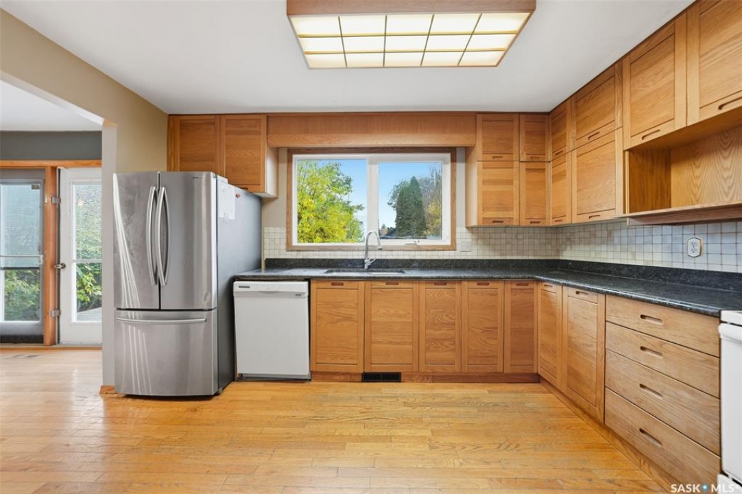Welcome to West College Park! This spacious 1,564 sq. ft. two-storey home is a rare find having four bedrooms upstairs, three bathrooms throughout, and a single attached garage. Located on a quiet, mature street surrounded by beautiful trees, this home presents an incredible opportunity for someone ready to bring their vision to life. The main floor is bright and inviting, featuring large picture windows in the living and dining areas that flood the space with natural light. The kitchen overlooks the private park-like backyard, offering plenty of potential to create your dream culinary space. Upstairs, you'll find four well-sized bedrooms, perfect for growing families or those needing extra office or hobby space. Several big-ticket items have already been updated, including some newer windows and shingles replaced in 2018, giving you a great head start. This home offers great potential for buyers eager to personalize and update to their own taste, with a little vision and cosmetic updating, it's a wonderful opportunity to create lasting value in a well-established neighborhood. Outside, the large, tree-filled backyard provides privacy and space for kids, pets, and summer entertaining. Conveniently located near schools, parks, the University of Saskatchewan, and all amenities, this home combines location, space, and potential—a rare find in today's market. Bring your ideas and make this West College Park gem your own!