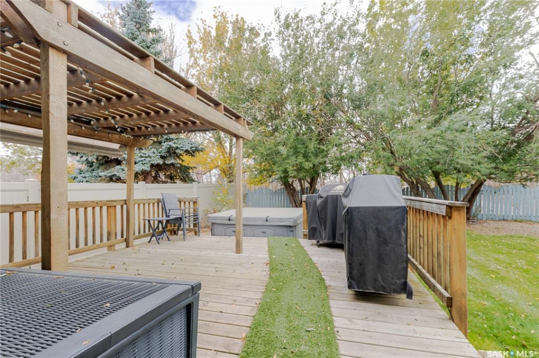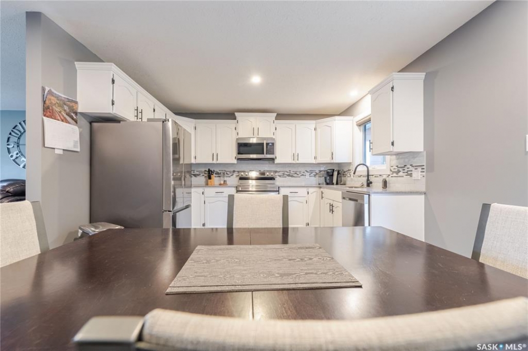 Welcome to your perfect family home in one of Moose Jaw's most sought-after neighborhoods! Beautifully updated and meticulously maintained, this residence combines modern upgrades with warm, inviting charm—perfectly designed for family living. From the moment you step inside, you'll be right at home. Main Living Spaces: A bright and welcoming living room flows seamlessly into the open-concept kitchen and dining area. The kitchen features granite countertops, abundant cabinetry, a convenient pantry, and a thoughtful layout that makes cooking effortless. A garden door opens to a spacious deck with a pergola—ideal for summer barbecues, morning coffee, or simply enjoying the outdoors. Backyard Retreat: The fully fenced, beautifully landscaped yard is ready for family fun, pets, and outdoor entertaining. Bedrooms & Bathrooms: The main floor offers two generously sized bedrooms plus a large primary suite with a private two-piece ensuite. A recently renovated family bathroom with dual sinks and mirrors makes busy mornings a breeze. Garage & Parking: The double attached garage is insulated and boarded, providing year-round convenience and even space for gatherings or hobby projects. Lower Level: Downstairs, you'll find two additional rooms and a full three-piece bathroom—perfect for kids, guests, or a home office. A spacious family room offers endless possibilities for movie nights, game days, or a play area. A block away from Sunningdale school, steps from the bus route, and moments away from two of Moose Jaw's main arteries, this home truly has it all: space, style, and functionality for every stage of family life. Don't miss your chance to make it yours—book your private showing today!