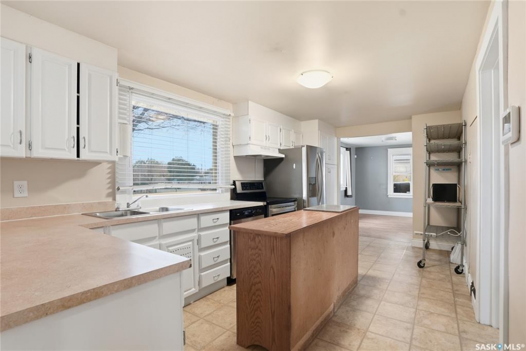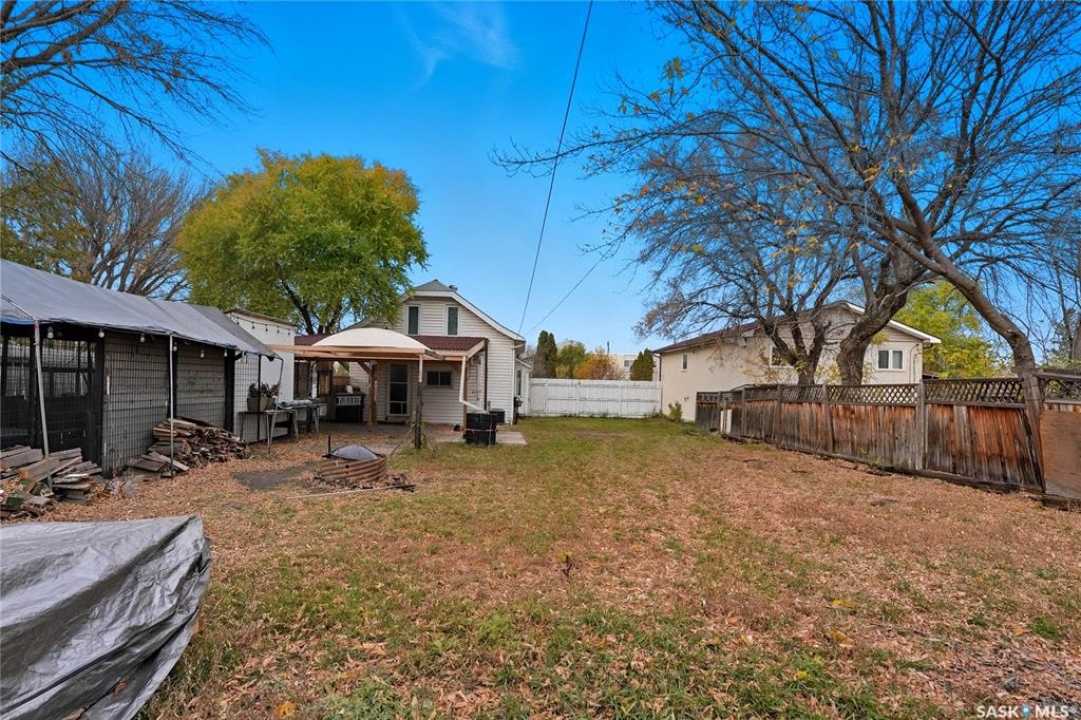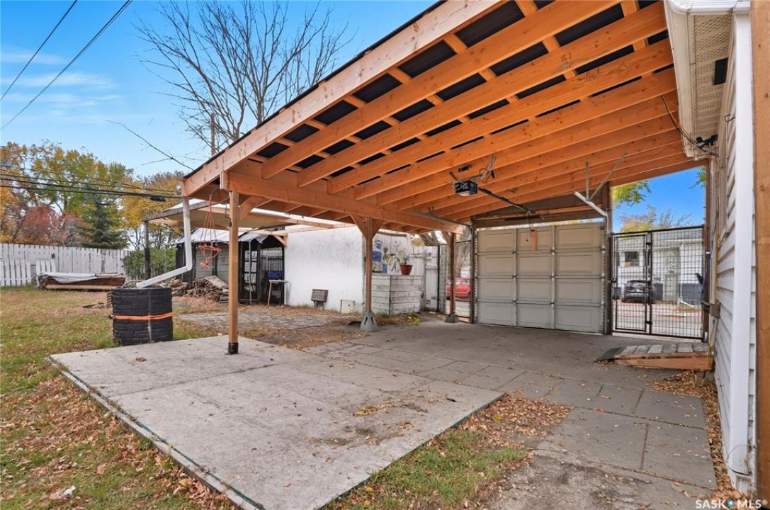This well-maintained 3-bedroom, 2-bathroom one and 1/2 storey home offers a great mix of updates, comfort, and potential. The kitchen features stainless steel appliances, large island and you'll enjoy peace of mind with the new central air installed, furnace and ducts clean in 2025 and a 100 amp electrical panel. The main floor offers bright living spaces and has potential for a main floor laundry setup, offering added convenience and future flexibility. All three bedrooms are a comfortable size, and the two bathrooms provide practicality for families, guests, or shared living. Carport has a garage door opener for easy access to secure parking close to back door. Newer fence panels are sitting in a pile in back yard and is included for future owner to install. Large back yard with shed and even the BBQ is included. Located in a central area close to schools, amenities, and transit, this property is ideal for first-time buyers, investors, or anyone looking for value and opportunity in Saskatoon. Don't miss your chance to make it yours!
