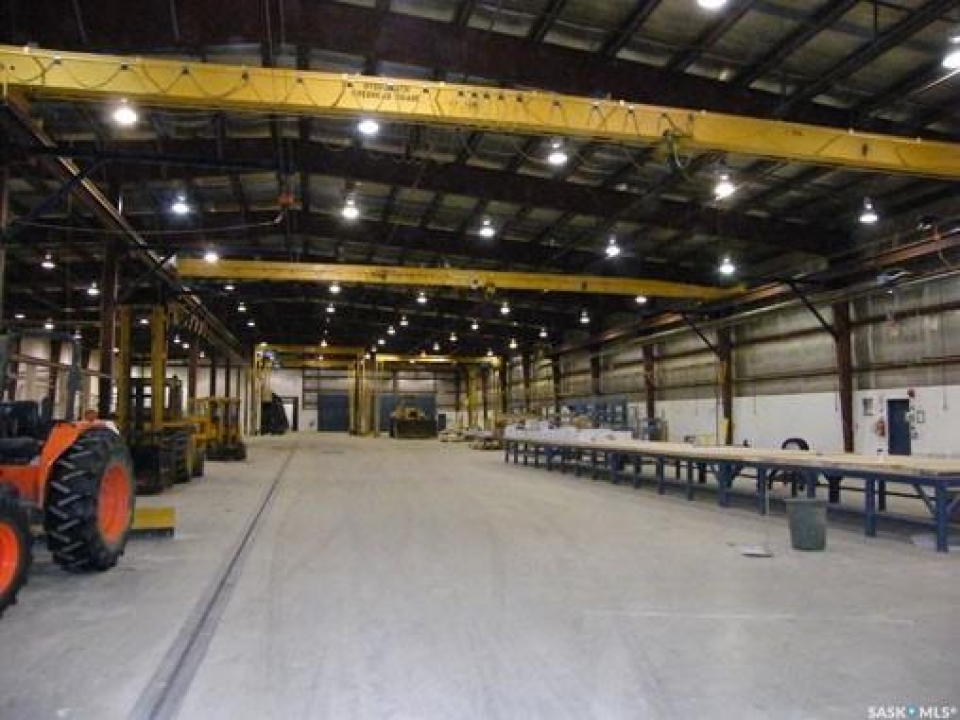 INDUSTRIAL BUILDING AND PROPERTY. The Main Industrial building is 91,300 sq. ft. single-story building with an additional 6,000 sq. ft. mezzanine with offices. The foundation and flooring are reinforced concrete slab. Pre-engineered steel structure with insulated metal cladding and metal roof. Radiant heat & full sprinkler system. With overhead doors ranging from 14 x 14 to 18 x 18 in size. Included are 1-20-ton crane, 2-10-ton cranes, 4-5-ton cranes. Second building is 3,920 sq. ft. with 2 overhead doors. Reinforced concrete floor. Pre-engineered steel structure with insulated metal cladding & metal roof. Radiant heating. Third building is 3,750 sq. ft. single-story wood frame building with metal siding. Overhead door. Irregular shaped lot of approx. 12 acres with 1,026.5 ft. of frontage (with fenced compound & security) along Canola Ave. Parsons Industrial Park North Battleford, SK. This property has a tenant with a full triple net lease to 2030. Also available is listing A2070374.