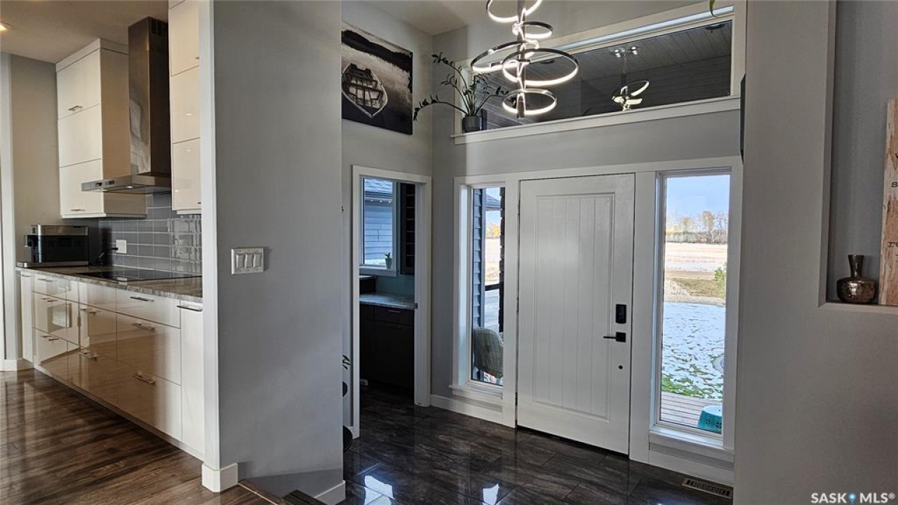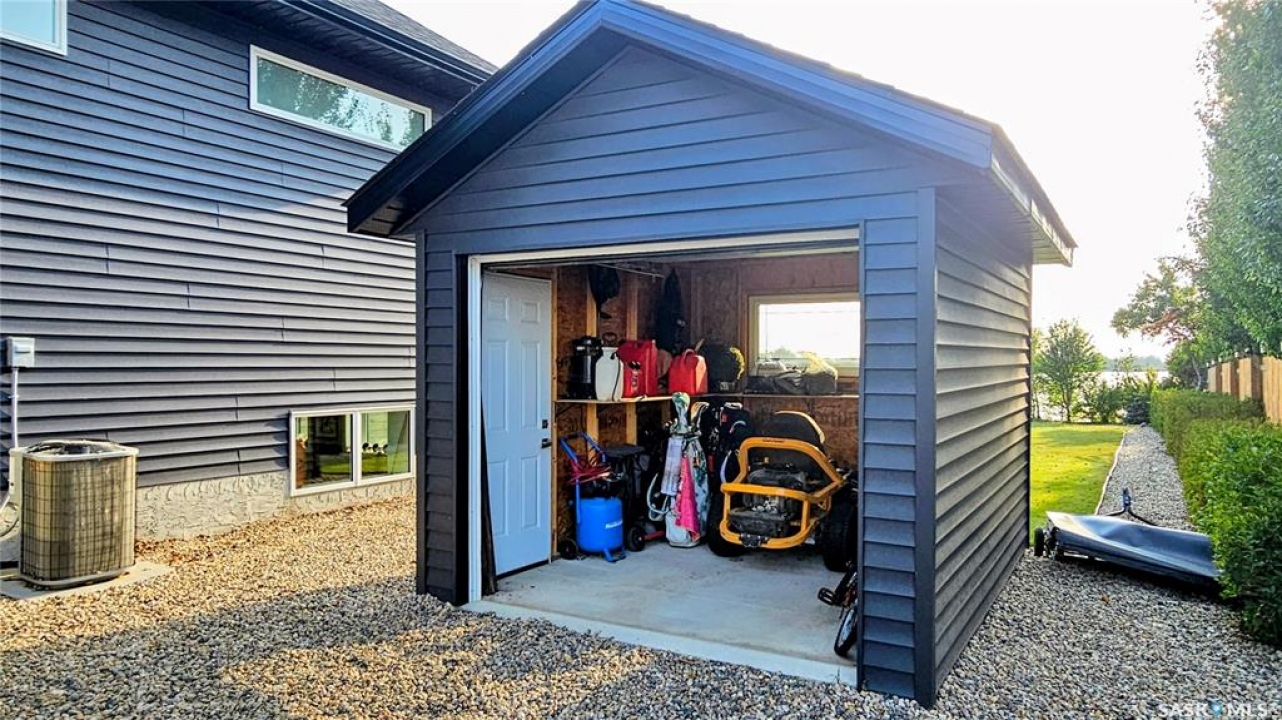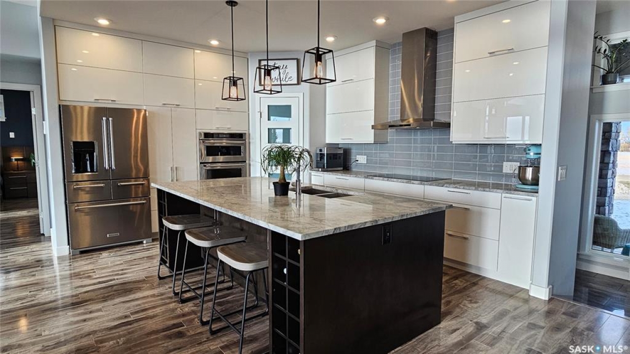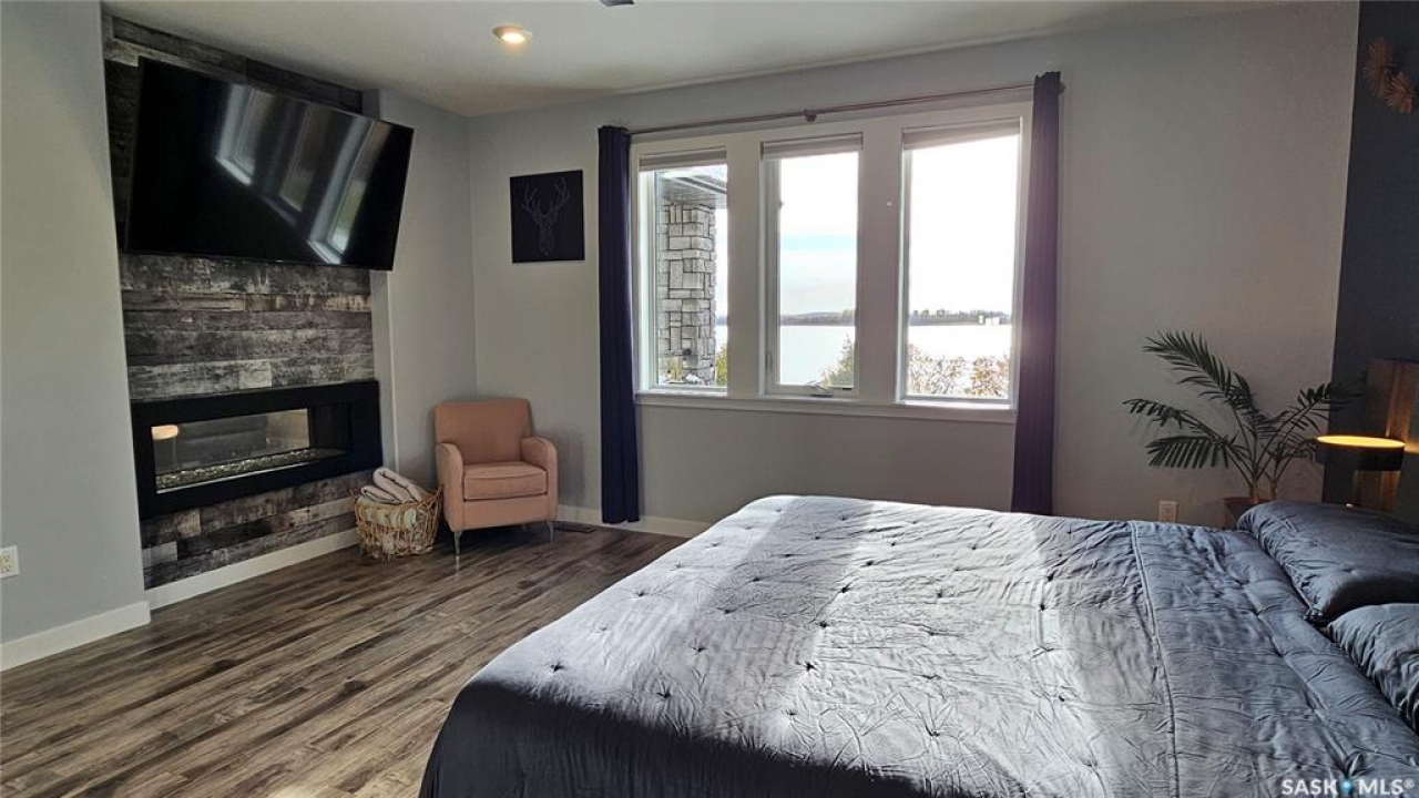 Welcome to this exceptional 1,882 sq. ft. raised bungalow, built in 2016 and perfectly positioned on the waterfront at Humboldt Lake. This high-end 5-bedroom, 3-bathroom home showcases exceptional craftsmanship, timeless finishes, and modern comfort throughout. The main floor offers an inviting open-concept layout featuring custom cabinetry, granite countertops, and premium KitchenAid appliances centered around a stunning oversized island—ideal for family living and entertaining alike. With three bedrooms on the main level, there's ample space for families or guests. The primary bedroom is a true retreat, featuring a beautiful en-suite, complete with heated tile floors, a free-standing tub, and a luxurious three-head walk-in shower. The fully finished lower level is designed for entertaining, featuring a custom wet bar with island, bar fridge, and built-in ice maker. The home is Ethernet wired throughout and includes Starlink internet, Gemstone exterior lighting, central vac with dustpan kicks, and a large heated garage. Step outside to enjoy a beautifully landscaped yard with underground sprinklers, a two-tier deck with enclosed storage, stone patio and firepit, natural gas BBQ and fire table hookups, and a 20' Koenders dock ready for lakeside living. The adjacent municipal greenspace ensures lasting privacy and unobstructed views—no future neighbours. This property truly offers it all—luxury, privacy, and the perfect lakefront lifestyle. A must-see!