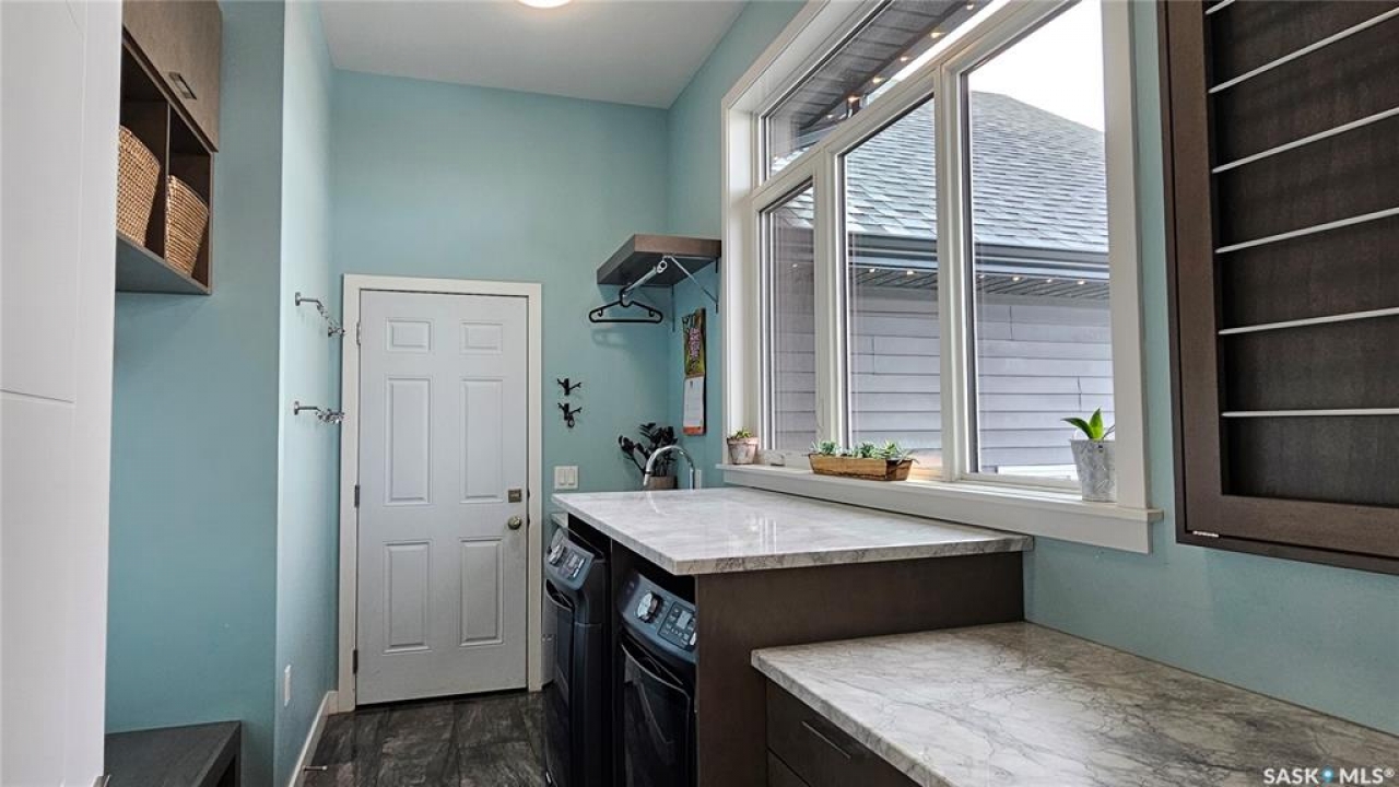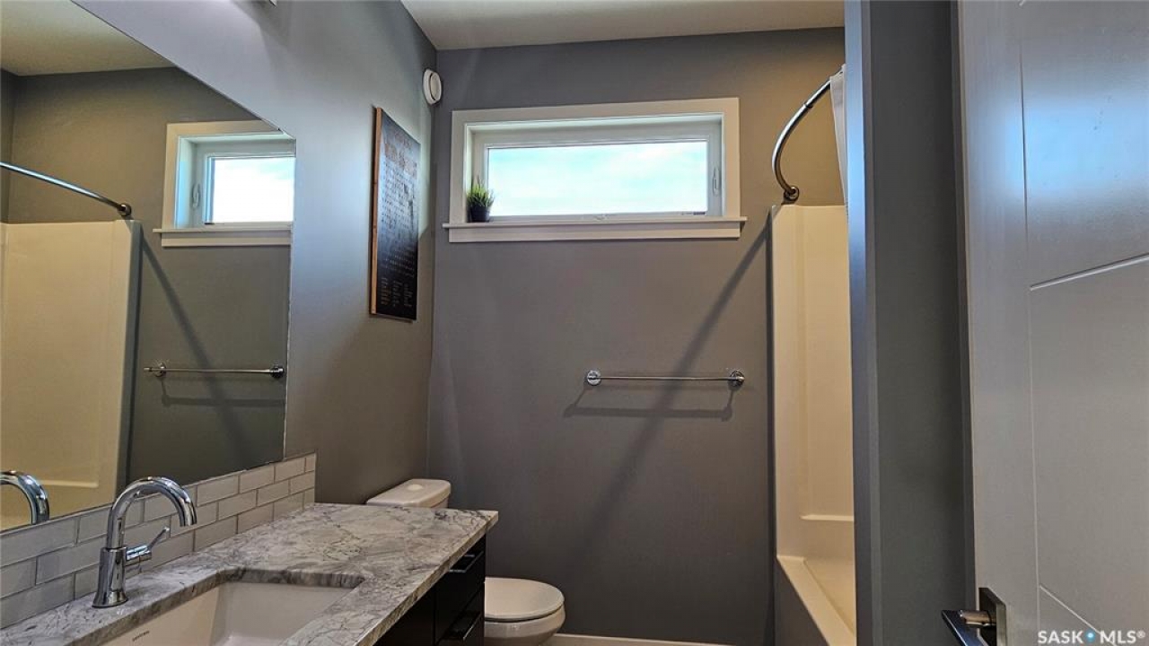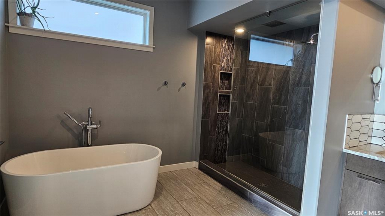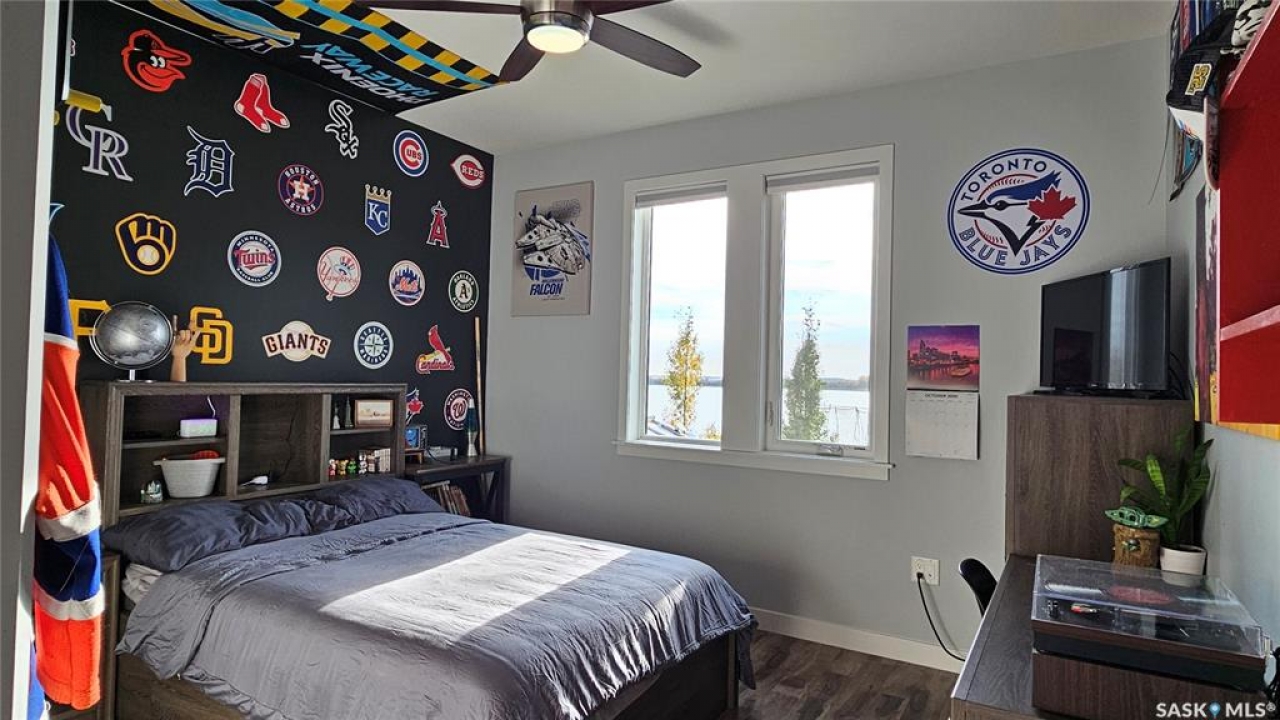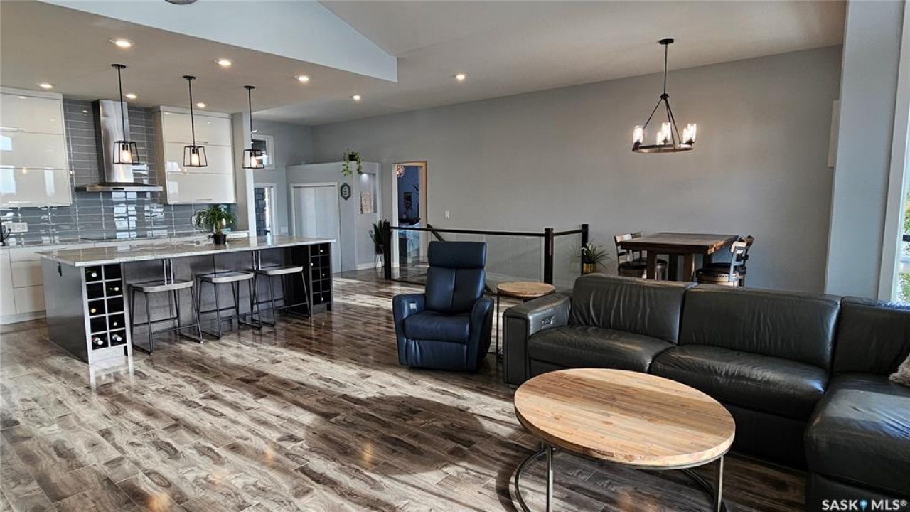Welcome to this exceptional 1,882 sq. ft. raised bungalow, built in 2016 and perfectly positioned on the waterfront at Humboldt Lake. This high-end 5-bedroom, 3-bathroom home showcases exceptional craftsmanship, timeless finishes, and modern comfort throughout. The main floor offers an inviting open-concept layout featuring custom cabinetry, granite countertops, and premium KitchenAid appliances centered around a stunning oversized island—ideal for family living and entertaining alike. With three bedrooms on the main level, there's ample space for families or guests. The primary bedroom is a true retreat, featuring a beautiful en-suite, complete with heated tile floors, a free-standing tub, and a luxurious three-head walk-in shower. The fully finished lower level is designed for entertaining, featuring a custom wet bar with island, bar fridge, and built-in ice maker. The home is Ethernet wired throughout and includes Starlink internet, Gemstone exterior lighting, central vac with dustpan kicks, and a large heated garage. Step outside to enjoy a beautifully landscaped yard with underground sprinklers, a two-tier deck with enclosed storage, stone patio and firepit, natural gas BBQ and fire table hookups, and a 20' Koenders dock ready for lakeside living. The adjacent municipal greenspace ensures lasting privacy and unobstructed views—no future neighbours. This property truly offers it all—luxury, privacy, and the perfect lakefront lifestyle. A must-see!