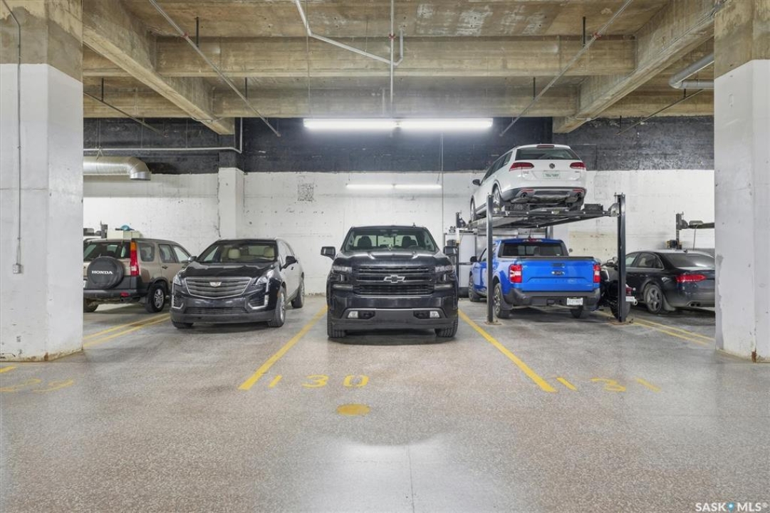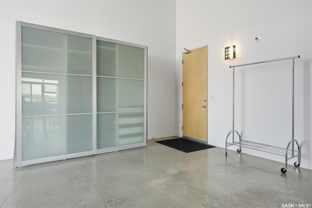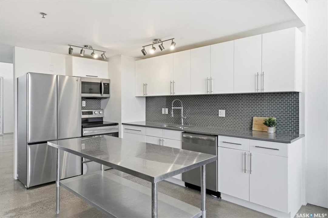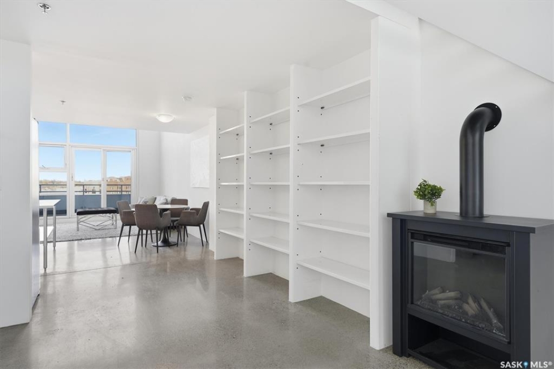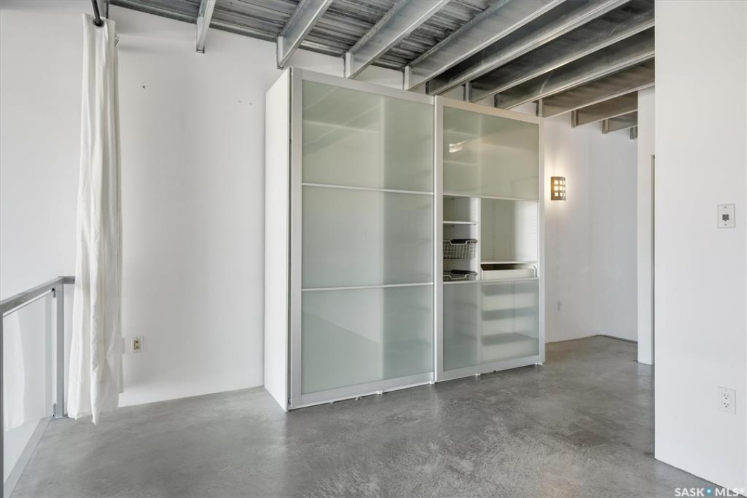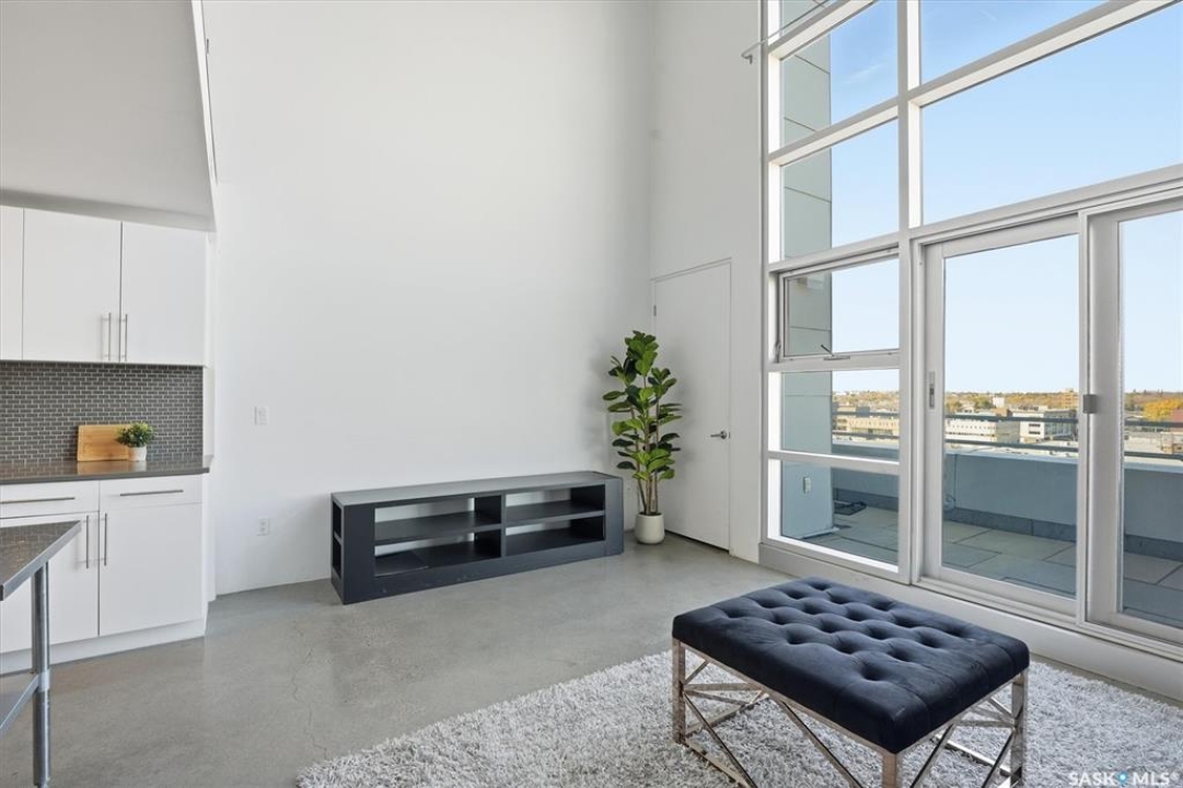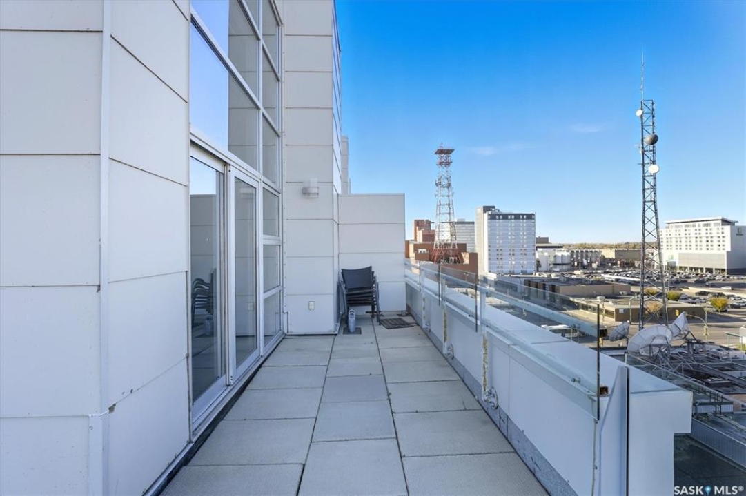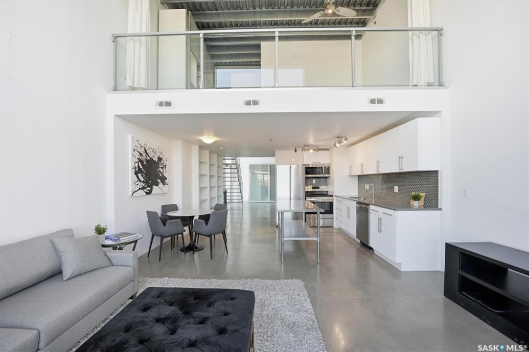 Top floor CORNER unit with massive wrap around balcony overlooking the city sky line! Welcome to the 2nd Avenue LOFTS where modern downtown living meets comfort and architectural character. This spacious 1,075 sq. ft. loft-style condo offers an open-concept layout with soaring ceilings, large windows, and a wraparound balcony that provides sweeping views of downtown Saskatoon. The highlight of this home is the large wraparound balcony overlooking Saskatoon's new central library and the proposed new rink and event venue — the perfect spot to enjoy your morning coffee while taking in the energy and excitement of Saskatoon's downtown revitalization. Located on the exclusive fifth floor—the only level equipped with central air conditioning—this unit ensures year-round comfort. The interior features polished concrete floors, a bright and functional kitchen, and a generous bedroom suite with a four-piece bath. This units updated kitchen includes brand new stainless steel kitchen appliances. A tandem underground parking for two vehicles is included for convenience and security. The installing of a vehicle lift is permitted as well (with board approval). The 2nd Avenue Lofts building offers residents access to excellent amenities, including a fully equipped gym, a recreation area with ping pong tables, a modern meeting room, and one of the best roof top patio areas (located on 3rd level) in the city. Situated in the heart of the Central Business District, you'll be steps away from restaurants, shopping, and the river valley trails. A unique opportunity to own one of the most desirable units in this sought-after building.