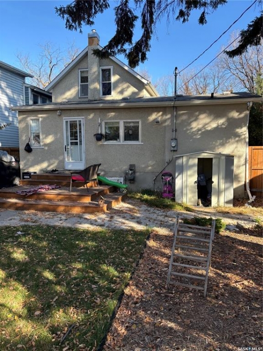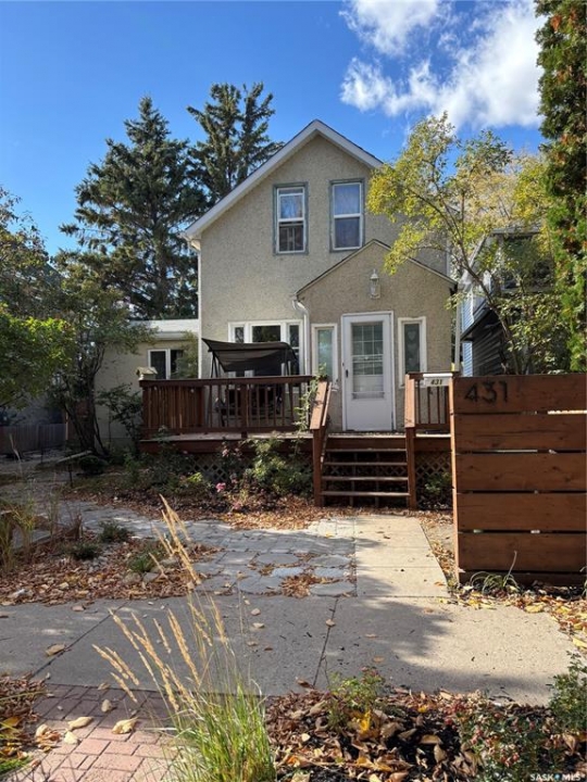 Nice Riversdale location, close to services, downtown and river. This well maintained 1350 sq. ft home has had a lot of improvements over the years. Walk up to a newer deck, large porch entrance, into the open living dining area complete with all new oak hardwood flooring. Large Primary Bedroom addition with large 4 piece bath. Large Kitchen/Dining includes all appliances. Upstairs to 2 smaller bedrooms and 3 piece bath. Downstairs to a warm high basement has been re dug, enlarged with a new steel beam and concrete, electrical as well. Includes a family room, extra bedroom and utility room as well as cold storage. Large cared for fenced yard has a lot of mature landscaping with a variety of shrubs and fruit trees and a paving stone patio. Single car garage with alley access, concrete floor and rear driveway, remote door and insulated. Note: Photos show the home vacant and occupied. Neighbouring homes are friendly, mostly owner occupied. Call for private viewing.