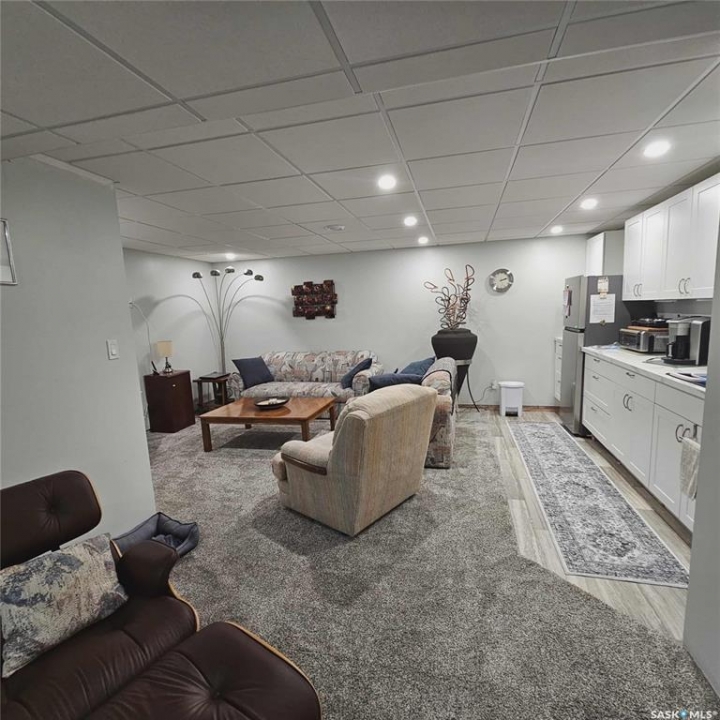 Updated, 1352 sq. ft. bungalow condo with attached double garage in Gardiner Heights — located in the highly sought-after, gated community at Huntington Place. Thoughtfully updated, this home offers flexible living for multi-generational families or young adults. The developed (2024) basement suite features a bedroom with walk-in closet and egress window, living room, kitchenette, dining area, 3-piece bath with walk-in shower, private laundry (washer/dryer not included), den/playroom and two independent storage rooms. Plush higher-density carpet with extra-thick underlay keeps floors warm and comfortable. Mechanical updates include an upgraded electrical panel with sub-panel and a utility room (off the den) housing the furnace (2025), water heater & softener and shelving. Freshly plainted main floor with updated electrical outlets, lighting and ceiling fans. The living room is warm and inviting with a gas fireplace. A generous dining area with flex space flows to an eat-in kitchen with counter seating, newer stainless-steel appliances (fridge, dishwasher, microwave included), and a Lefton sink and backsplash. The primary suite easily fits a split-king bed and offers a luxurious ensuite with double-sink vanity, linen/storage tower, separate toilet/spa tub area and a true walk-in closet. A second well-sized bedroom and the updated main bath complete this level. The rear entry includes a flexible area, closet, laundry room with LG wash tower, built-in pantries & room for a freezer. Outdoor living with maintenance-free side yard with vinyl fencing and front/rear gates, upper and lower decks for entertaining, and a gas hookup for BBQ. Huntington Place residents enjoy a private walking path along the rear of the property with a keyed gate connecting to the city walking path/park. This home combines modern finishes, practical upgrades and versatile living spaces — a pleasure to show. Schedule your private viewing today.