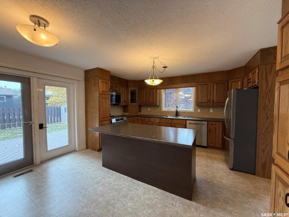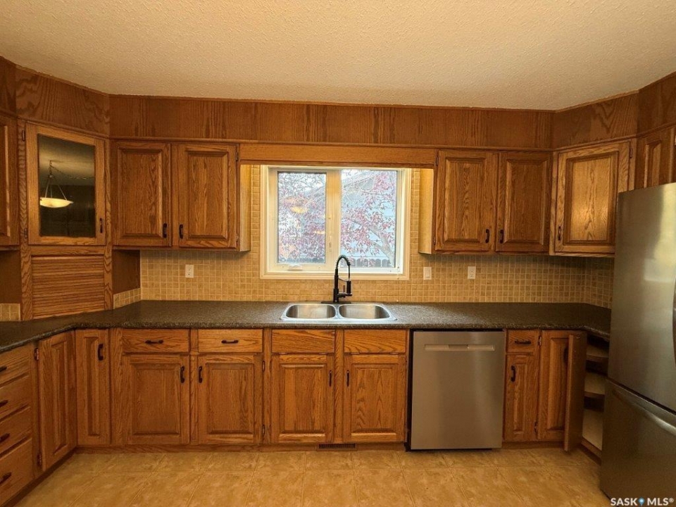 Spacious 6-Bedroom Family Home with Double Attached Heated Garage. Welcome to this well-maintained 1,476 sqft family home offering 6 bedrooms and 3 bathrooms — perfect for a growing family or anyone looking for extra space. The front entry opens into a bright living room with space for a dining table. The large kitchen features plenty of cabinetry, an island, built-in desk area, and appliances that were updated two years ago. French doors off the kitchen lead to the backyard, providing an easy flow for indoor-outdoor living. A formal dining room is located just off the kitchen and could easily serve as a second living or family room. Down the hall are three bedrooms, including the primary suite which features a 4-piece ensuite. A 4-piece main bathroom completes the main level. The lower level offers an expansive family room, complete with a sectional providing a great space for relaxing or entertaining. You'll also find three spacious bedrooms, a 3-piece bathroom, laundry room with built-in shelving, a utility room, and a dedicated storage room. The exterior has been thoughtfully cared for, with most windows updated and both the front step and back deck built with maintenance-free materials. The fully fenced backyard offers a safe and private outdoor space for family and pets to enjoy. Additional updates include shingles replaced just two years ago. This home offers plenty of storage throughout and a double attached heated garage for comfort and convenience. Don't miss your chance to view this wonderful family home — call today to book your tour!