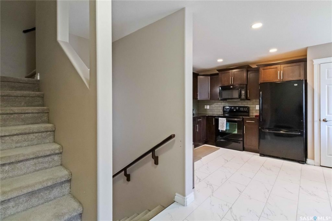 Welcome home to this beautiful, well-kept townhouse in the desirable neighborhood, Stonebridge! This beautiful property offers the best of both worlds, with comfort, space and functionality for you and your family. The main floor features a spacious family room with 12' ceilings, large windows that offer plenty of natural light leading to the balcony. The second level offers an open concept kitchen, with ample storage, and a bathroom with the washer and dryer. Upstairs offers a master bedroom with 2 walk-in closets and an ensuite bathroom. The other 2 generous bedrooms offer lots of space and share a 4 piece bathroom. And the basement offers an additional potential bedroom or living room with a 4th bathroom! With a double attached garage, central air and close proximity to schools, parks, shopping and leisure, this one is a must see! Contact your local Saskatoon REALTOR � today to schedule your private showing!