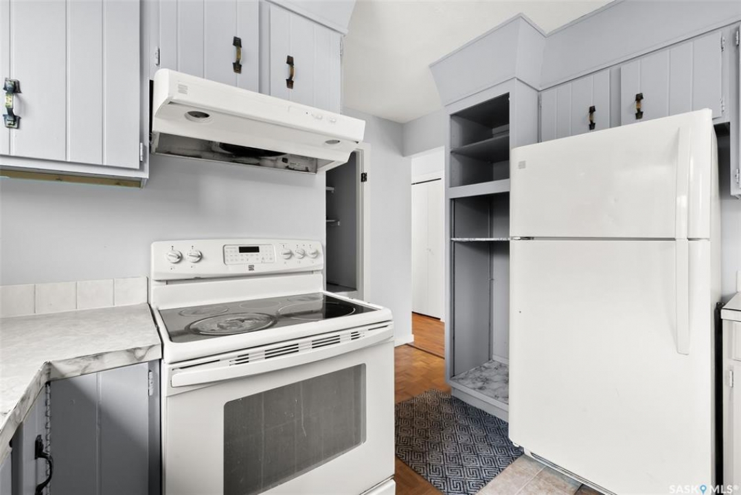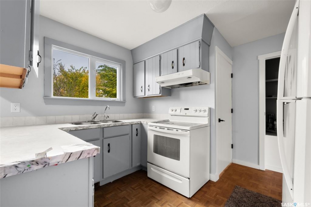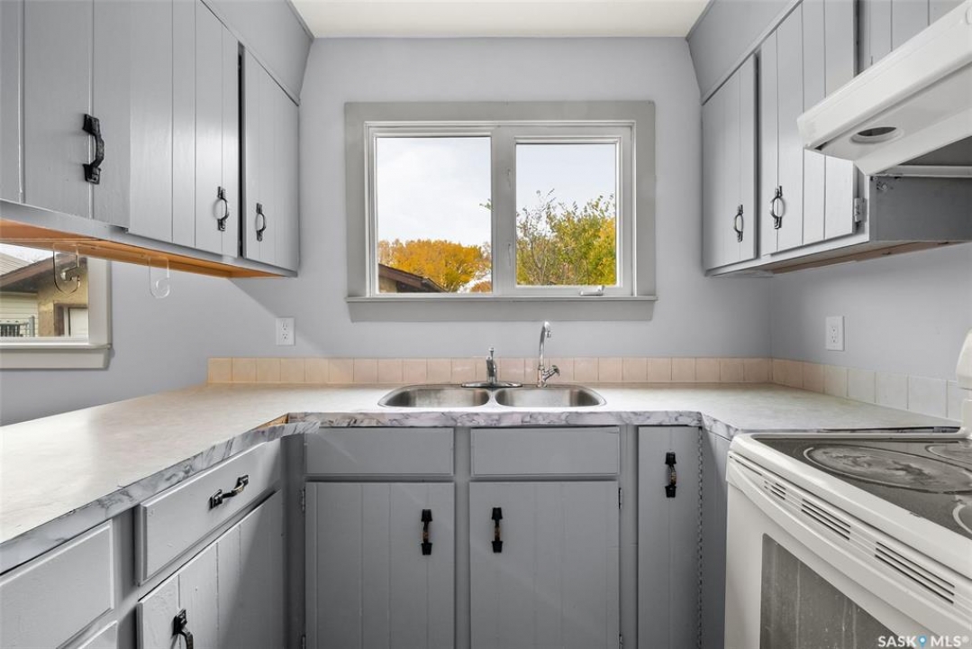 Welcome to 1307 Fleet Street in Regina's Glencairn Village—an opportunity-filled bungalow with a smart layout, mature lot, and tons of upside. The main floor welcomes you with a bright living room framed by a large picture window, an eat-in U-shaped kitchen, and three comfortable bedrooms including a convenient 2-piece ensuite off the primary, plus a full 4-piece bath. Downstairs adds excellent flexibility: a long rec room for movie nights or play space, a den/home office, a 2-piece bath, and a large laundry/utility room with great storage. A key highlight is the separate rear entry to the basement, creating privacy for guests or extended family and strong income potential for future suite development (buyer to confirm local requirements and permits). Outside, you'll appreciate the fenced yard with patio and mature trees, plus a double detached garage and an extended driveway for ample off-street parking. The location is close to neighbourhood parks, schools, transit, and east-end amenities, with quick access to Arcola Avenue and Ring Road for commuting. This home needs some TLC—think cosmetic updates and personal touches—but the fundamentals are here: classic bungalow design, full basement with its own entrance, generous lot, and garage. Whether you're a first-time buyer, multigenerational household, or an investor seeking a value-add project, this is a compelling canvas to make your own.