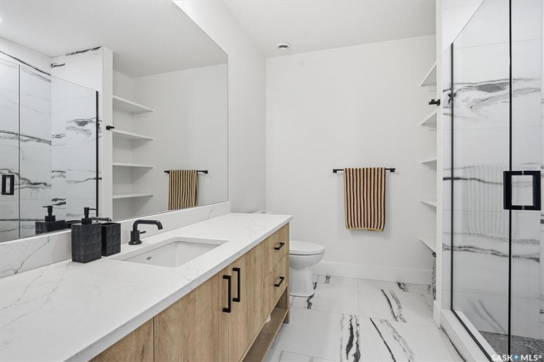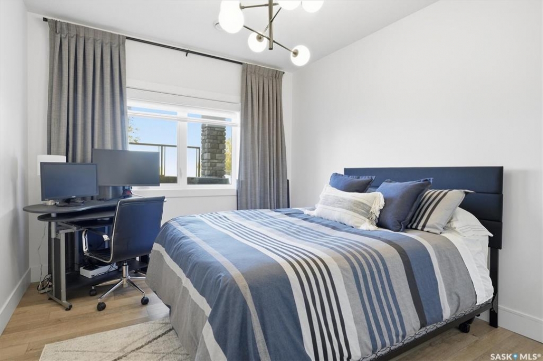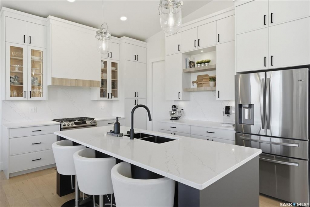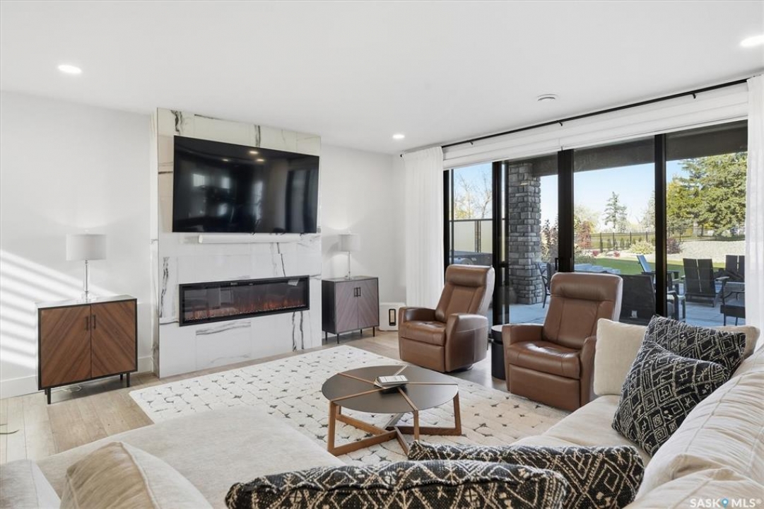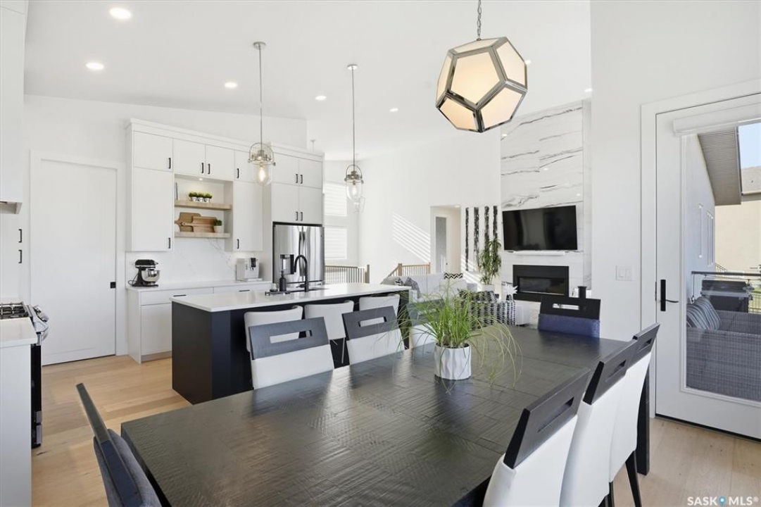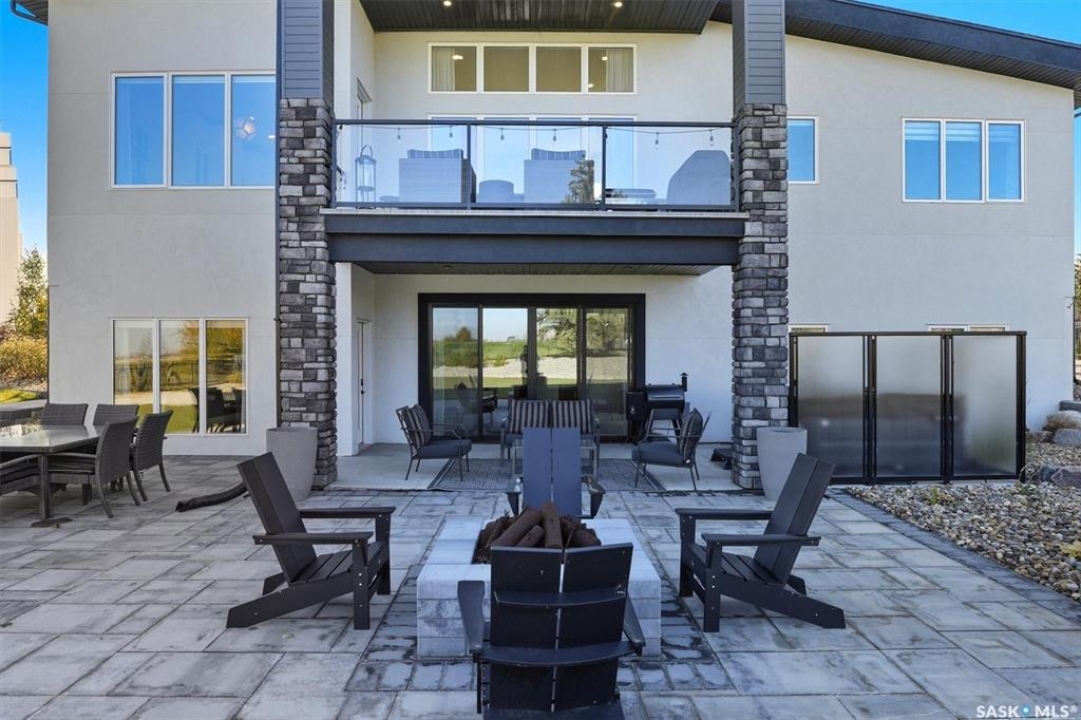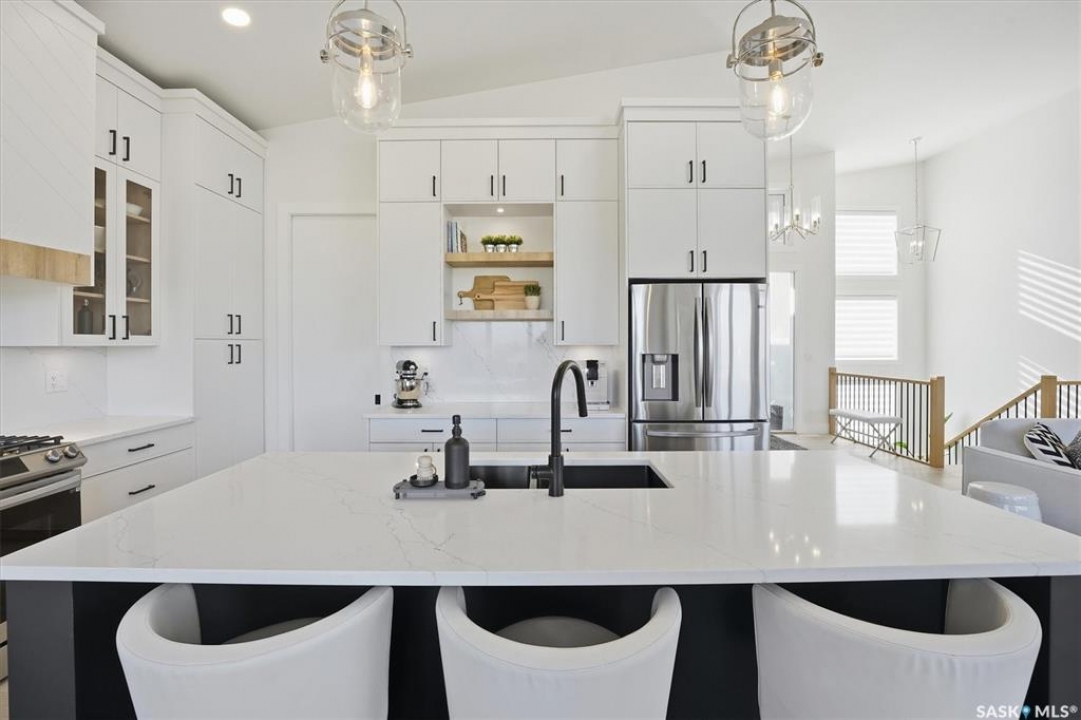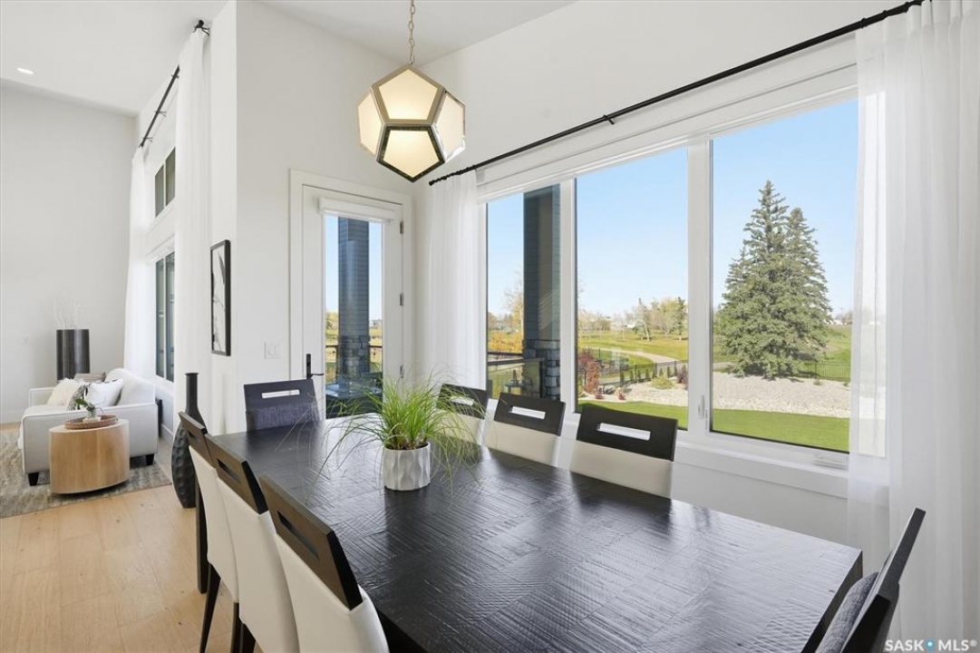 Absolute Stunner! Designer custom D&S Homes walkout bungalow, crafted with precision and showcasing an award-winning floor plan. Offering 1,694 sq' on main plus a fully dev walkout basement, this 4-bed, 3 bath home is set on an expansive 17,000 sq ft lot backing the Greenbryre Golf Course — with no neighbouring homes in sight, only serene views of the course, a landscaped side buffer and open prairie fields. The entry opens into a breathtaking, light-filled great room with ultra-high soaring ceilings and a dramatic feature fireplace. The open-concept living, kitchen, and dining area is an entertainer's dream, wrapped in oversized windows overlooking the course. The chef's kitchen features soft-toned lacquer cabinetry with double-height uppers, quartz counters, full-height quartz backsplash, 5-burner gas range, walk thru pantry, a coffee bar, and a massive central island. The connected dining area is spacious enough for large gatherings and opens to a private covered deck for seamless indoor-outdoor entertaining.The main floor also includes a large boot room, a bright office, outfitted laundry room, and a luxurious primary suite complete with a fully tiled spa-style ensuite, walk-in shower, dual vanity, and walk-in. A striking custom staircase leads to the fully dev walkout level, which mirrors the quality of the main floor. This level offers a sprawling family room with a 2nd fireplace, floor to ceiling windows overlooking the show-stopping backyard, a wet bar with wine storage and seating area, and a dramatic full height glass-walled gym. 2 large bedrooms and a full bathroom complete this level. Additional highlights: • Professionally landscaped grounds • Heated double garage • Zoned in-floor boiler plus forced-air furnace • Instant hot water • Central air • Wired for a hot tub • Underground sprinklers, oversized concrete drive A tasteful masterpiece in design and function — this Greenbryre walkout is spectacular in every detail.