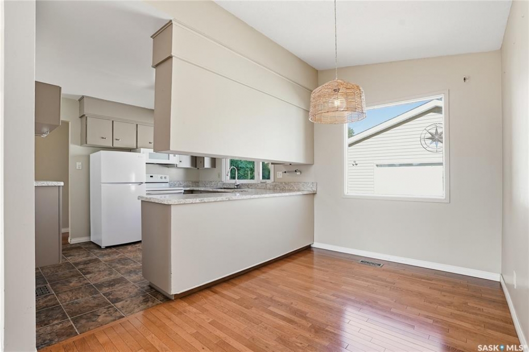 Welcome home to this mid-century modern 4-level split that radiates pride of ownership throughout! This exceptionally well-kept home features a bright living room with an abundance of natural light, a functional kitchen with ample cabinetry, and an inviting dining area on the main floor. The second level offers three generous bedrooms with beautiful hardwood flooring and a 4-piece bathroom. The third level includes a cozy family room, an additional den that could be used as a bedroom, and a renovated 3-piece bathroom. The basement completes the home with a versatile games room — perfect for a home gym, kids' play space, or extra family hangout area. Enjoy the private, fully fenced yard and a large double detached garage for plenty of storage or workspace. Additional features include central air conditioning for year-round comfort.
