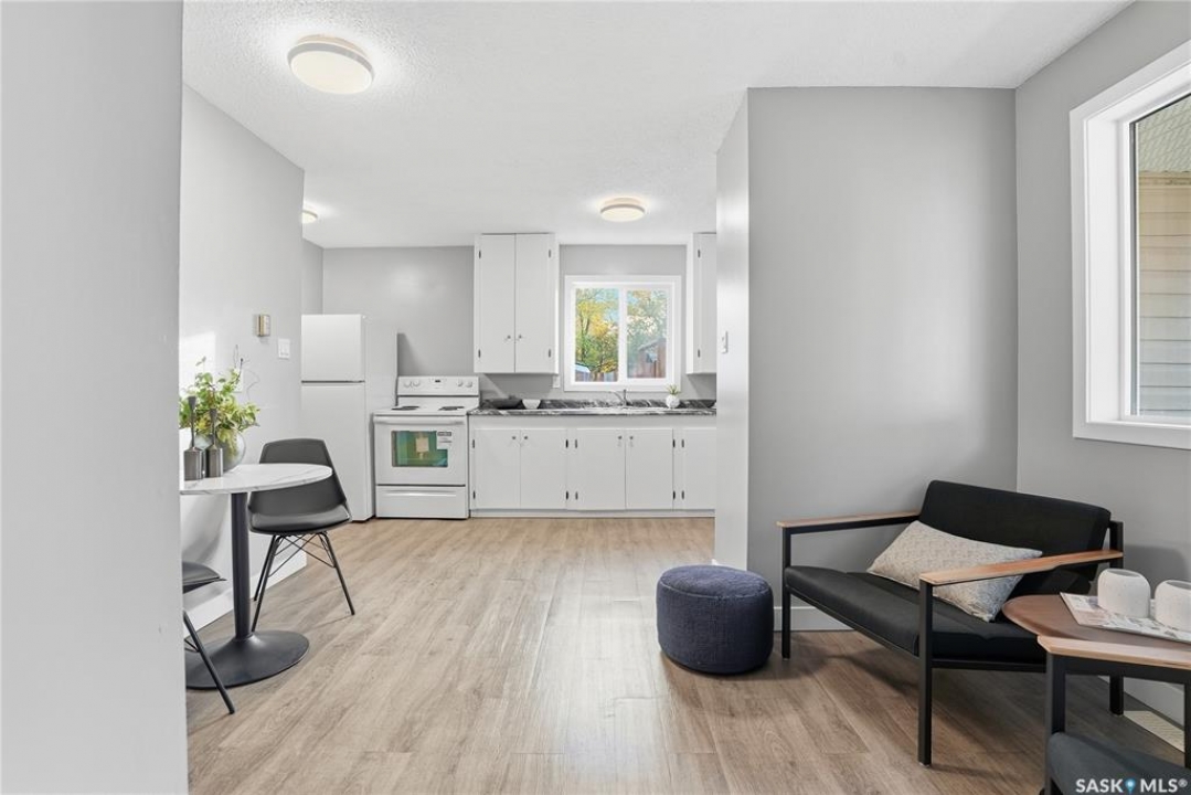 Great opportunity for first time home buyers and investors! As a first-time home buyer, you can live in the front unit and rent the 1-bedroom + den suite in the back or as an investor you can rent them both! The property has been owned and managed for 40 years by the sellers. In 2015, there was a complete exterior upgrade with siding, shingles, some windows, and concrete walkways. Interior has been freshly painted and has been maintained regularly over the years, move-in ready condition. The front suite is 600 sq. ft and the back is 450 sq. ft with basement storage access from the exterior of the home, including shelving for seasonal belongings. Perfect location for Saskatchewan Polytechnic students, located near many amenities and downtown. Public Open Houses: Saturday and Sunday October 18th and 19th from 1-2:30pm. Don't delay, book your showing today!