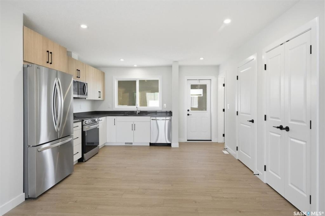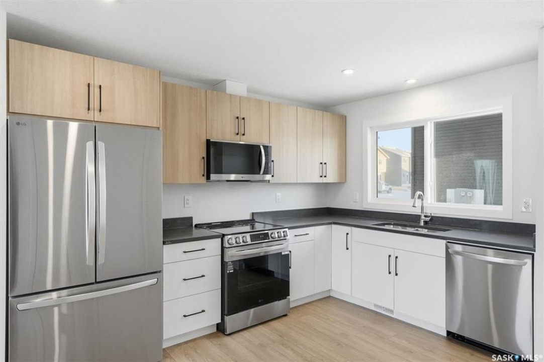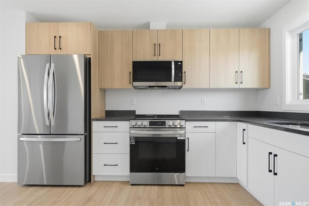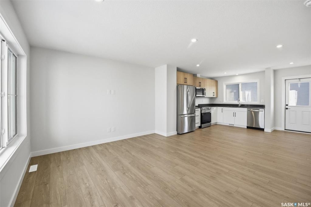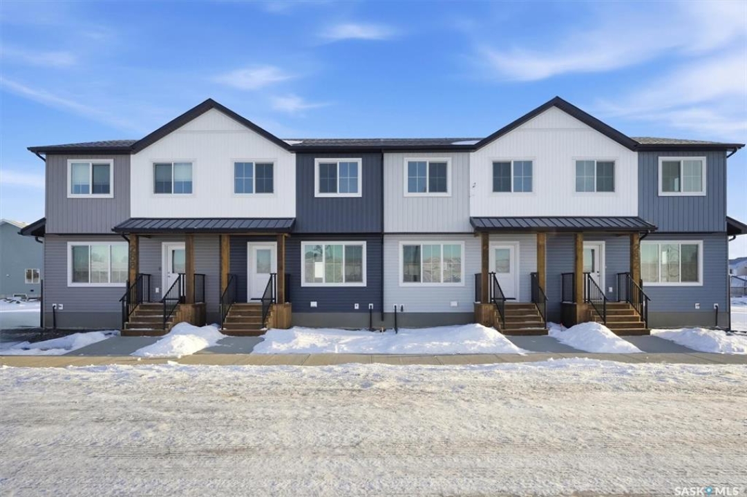 Discover exceptional townhome living in Saskatoon's sought-after Brighton neighbourhood on Asokan Bend. This premium 4-plex, built by North Ridge Development Corporation, offers a great opportunity at an affordable price. The 'Jardin', is an 1120 sq ft townhome that includes 3 bedrooms, 1.5 baths, a kitchen and laundry appliance package, and features your very own private rear vinyl fenced yard! This townhome comes fully landscaped with front yard sod and walkway, low maintenance artificial turf (rear), a concrete patio, front porch, and an off street parking pad. Brighton's family-friendly community provides the perfect balance of urban convenience and suburban tranquility, with easy access to Saskatoon's amenities, parks, schools, and shopping centers. Ideal for first-time buyers, young professionals, or downsizers seeking quality construction and modern design in Saskatoon's fastest-growing east side neighbourhood. Saskatchewan Home Warranty Coverage, GST/PST included in purchase price with applicable rebates to builder. This home is now complete and ready for you!